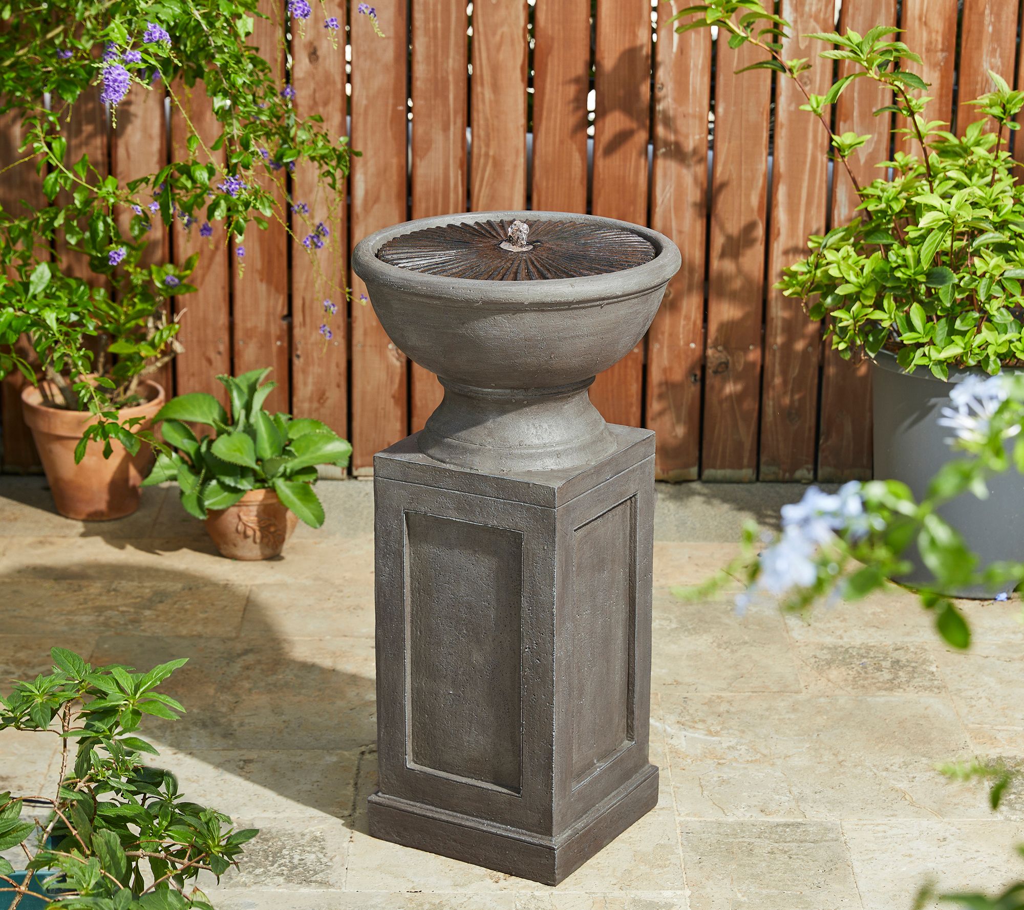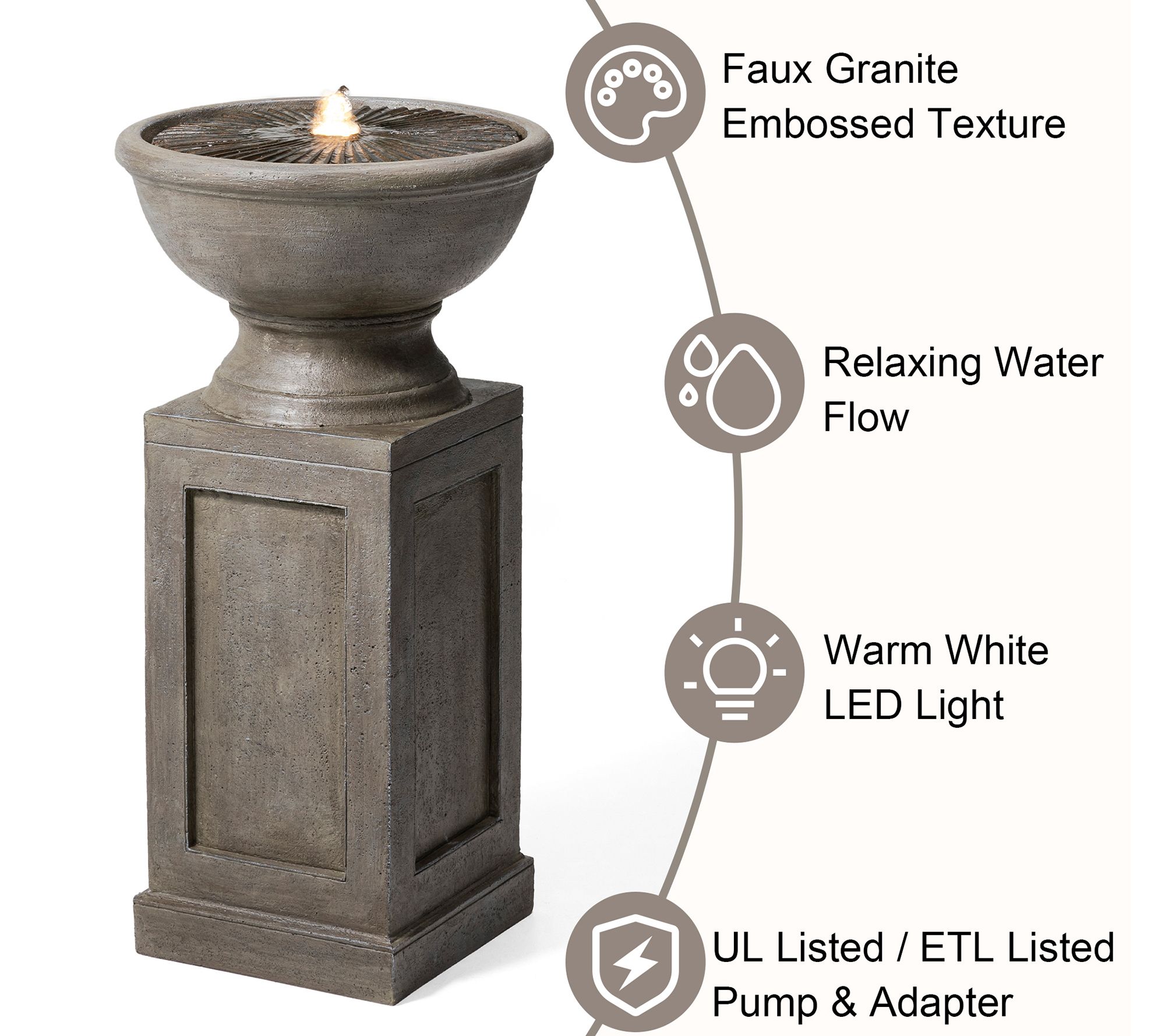 Create a tranquil outdoor oasis with this faux granite fountain that lets you relax to the soothing sound of cascading water and the peaceful glow of its soft LED light. From Glitzhome.