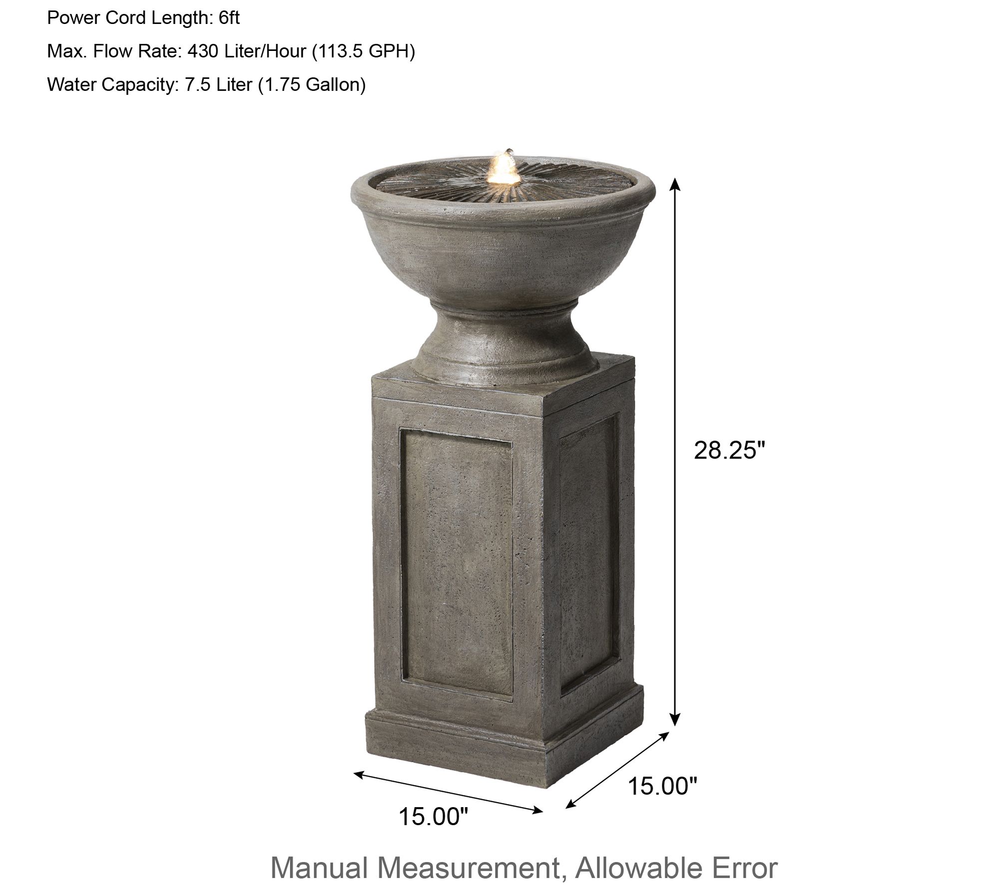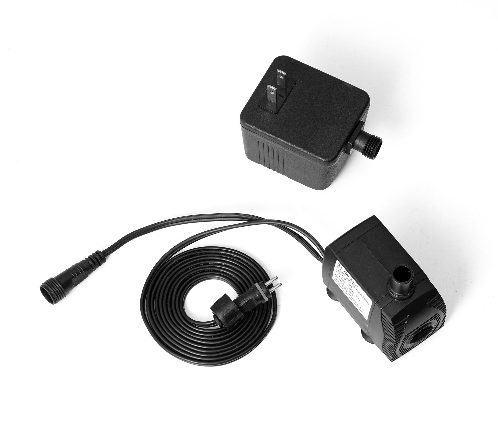 • Includes pump, adapter, plug, power cord, and fountain