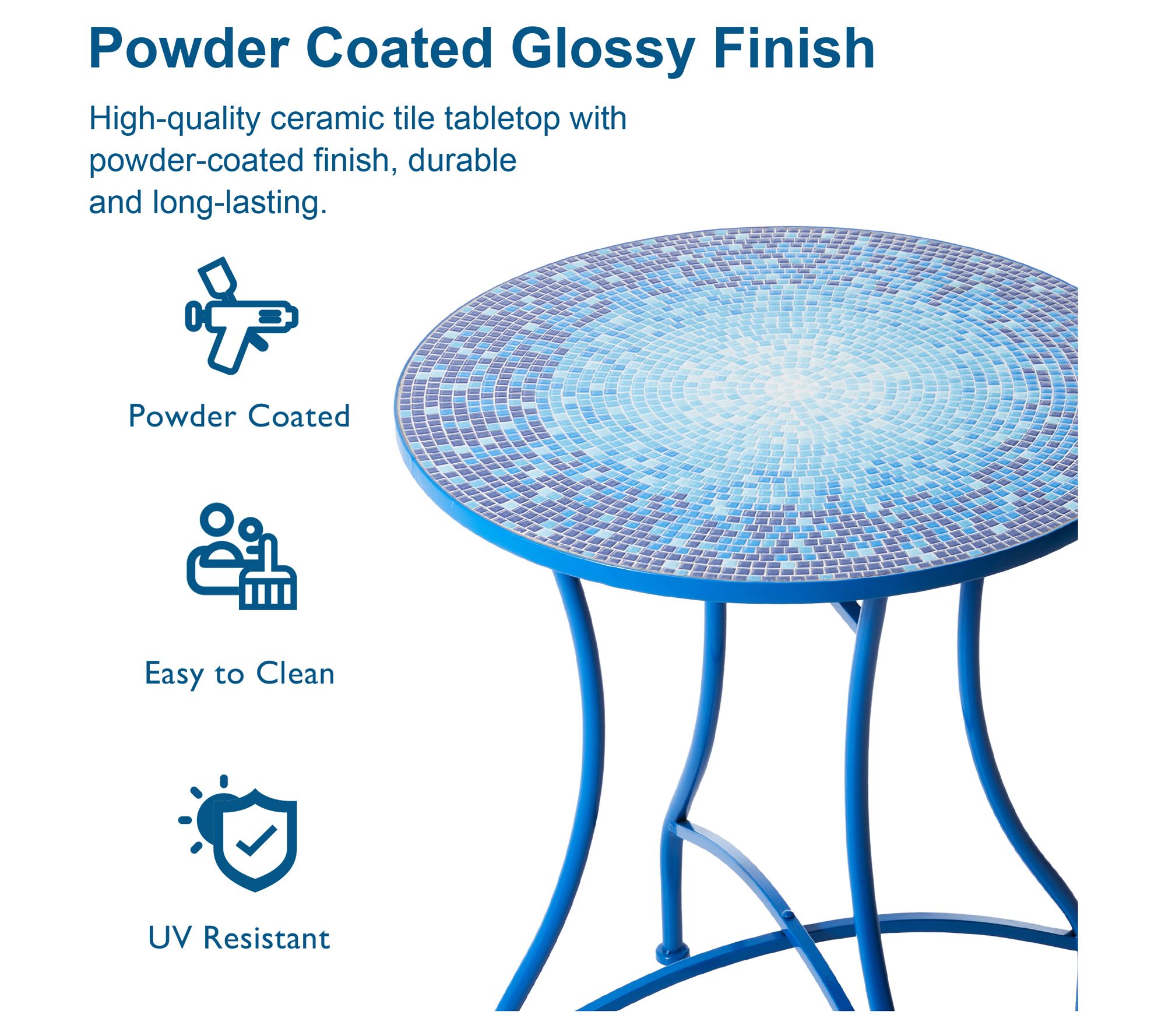 Perfect for cozying up with a morning coffee or evening tea, this versatile ceramic tile table will enhance your garden or patio with its elegant and unique design. The iron frame and exquisite ceramic tile tabletop transform any outdoor space into a delightful and relaxing environment. From Glitzhome.