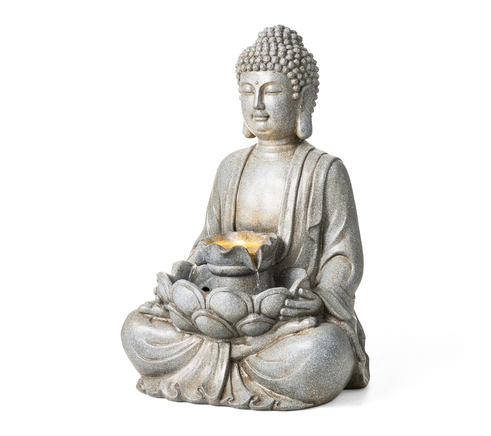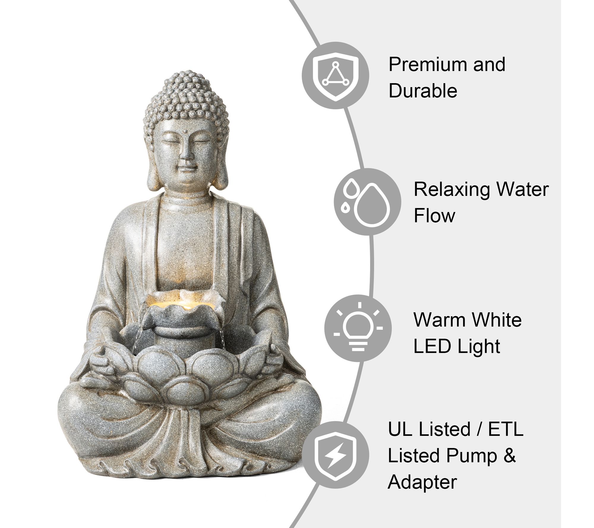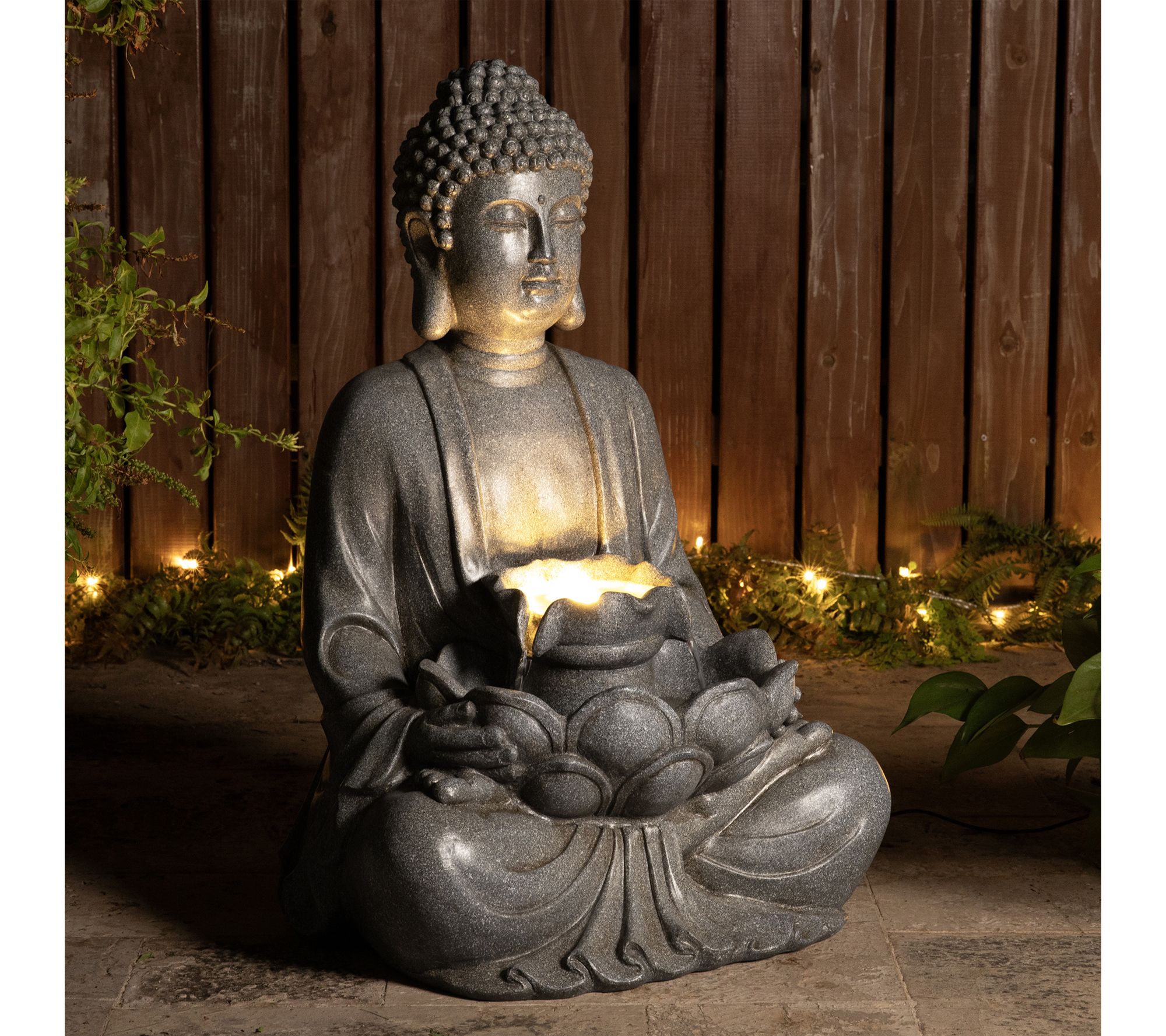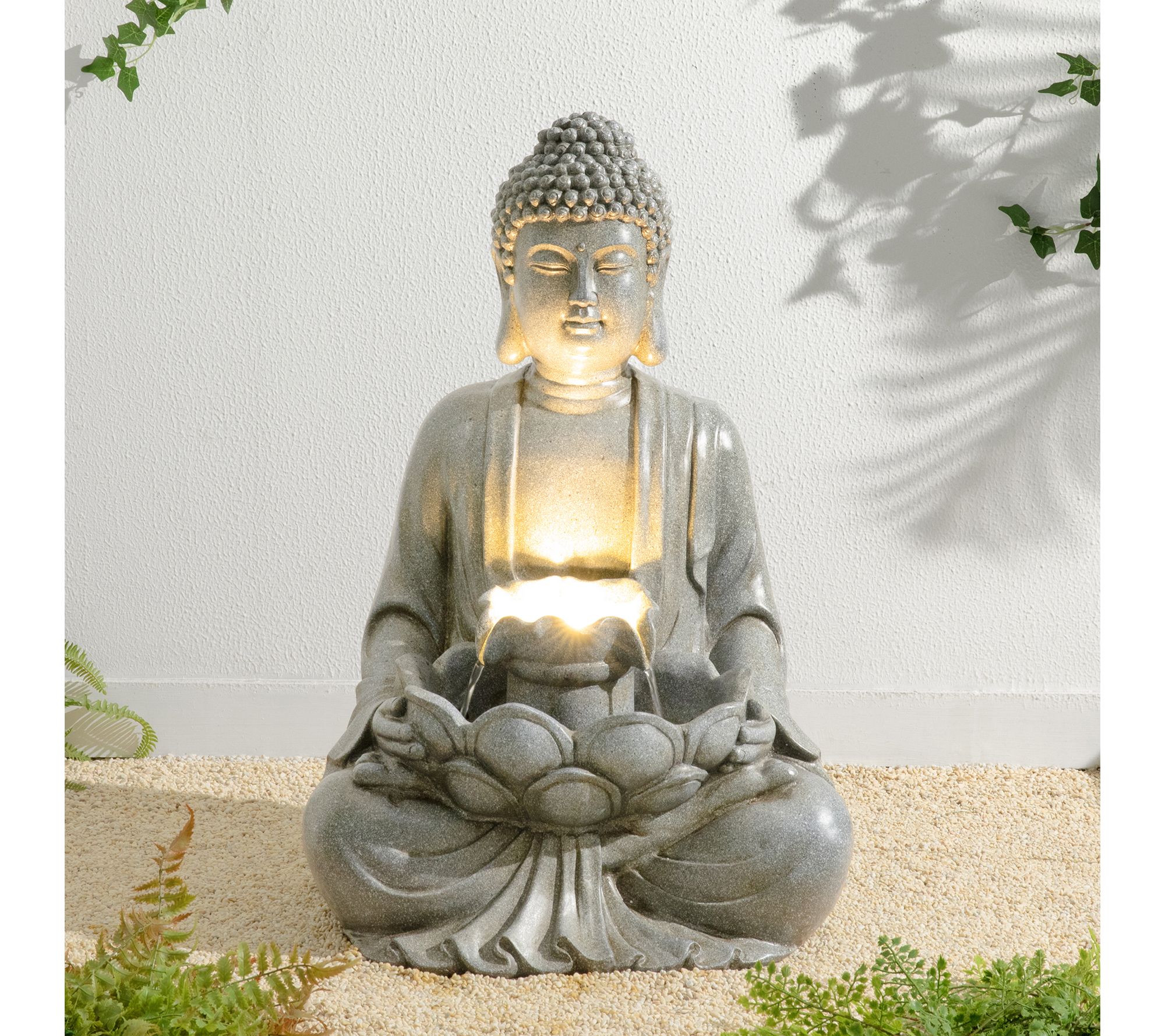 Bring a sense of calm and artistry to your outdoor oasis with this Zen-style meditating Buddha statue fountain. The gentle sound of cascading water combines with radiant LED illumination, transforming patios, porches, or garden corners into tranquil retreats for relaxation and reflection. From Glitzhome.