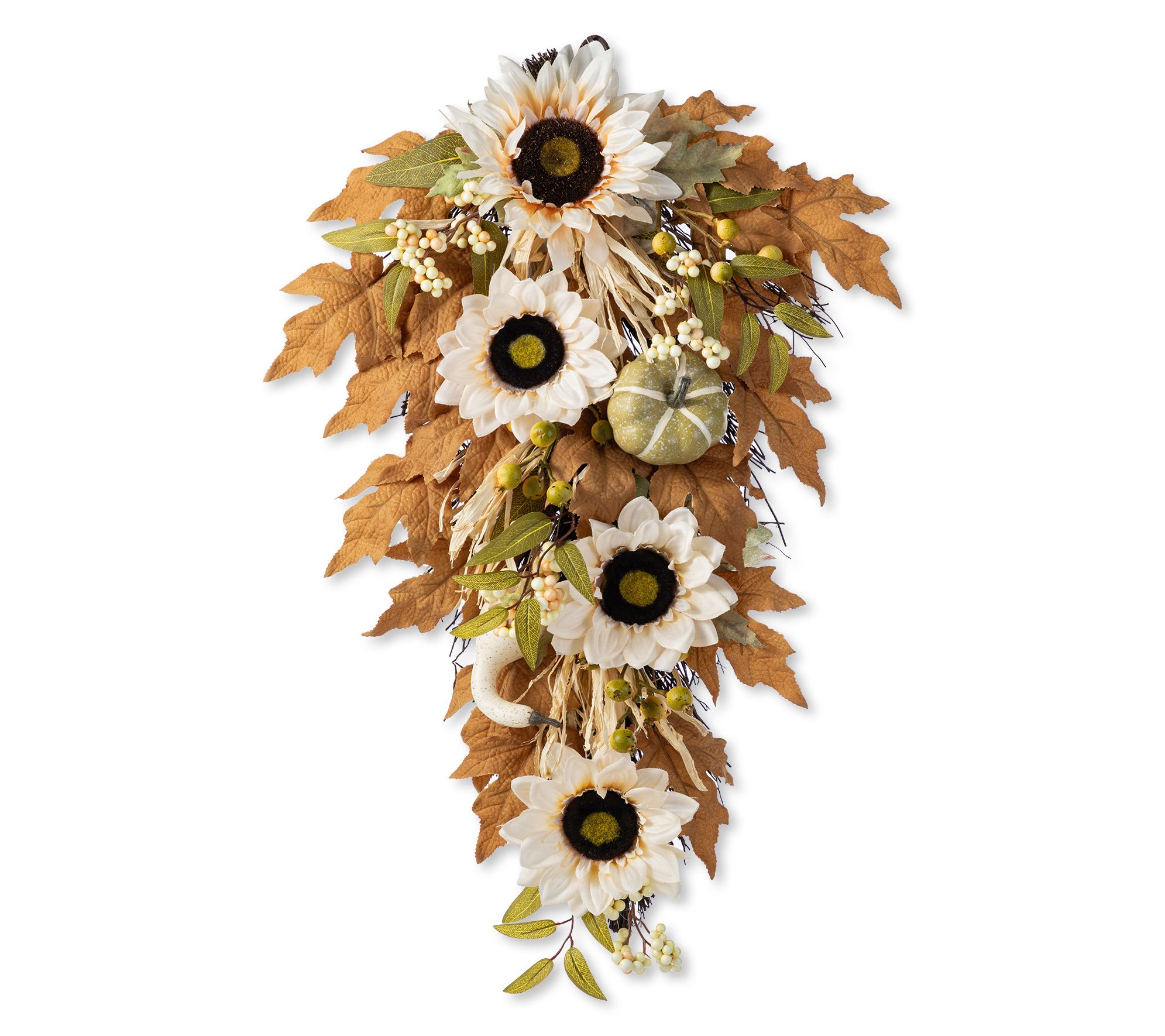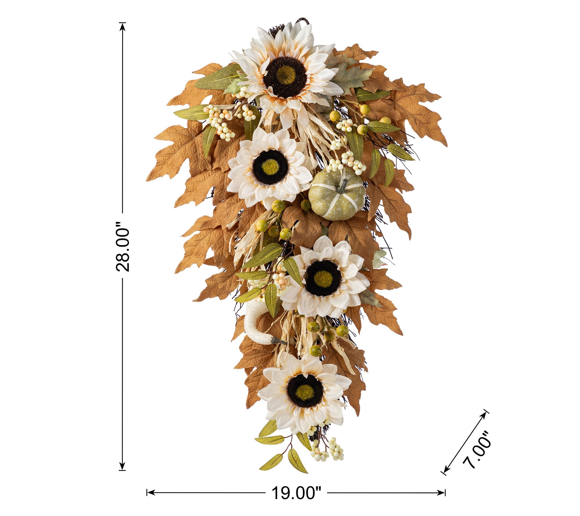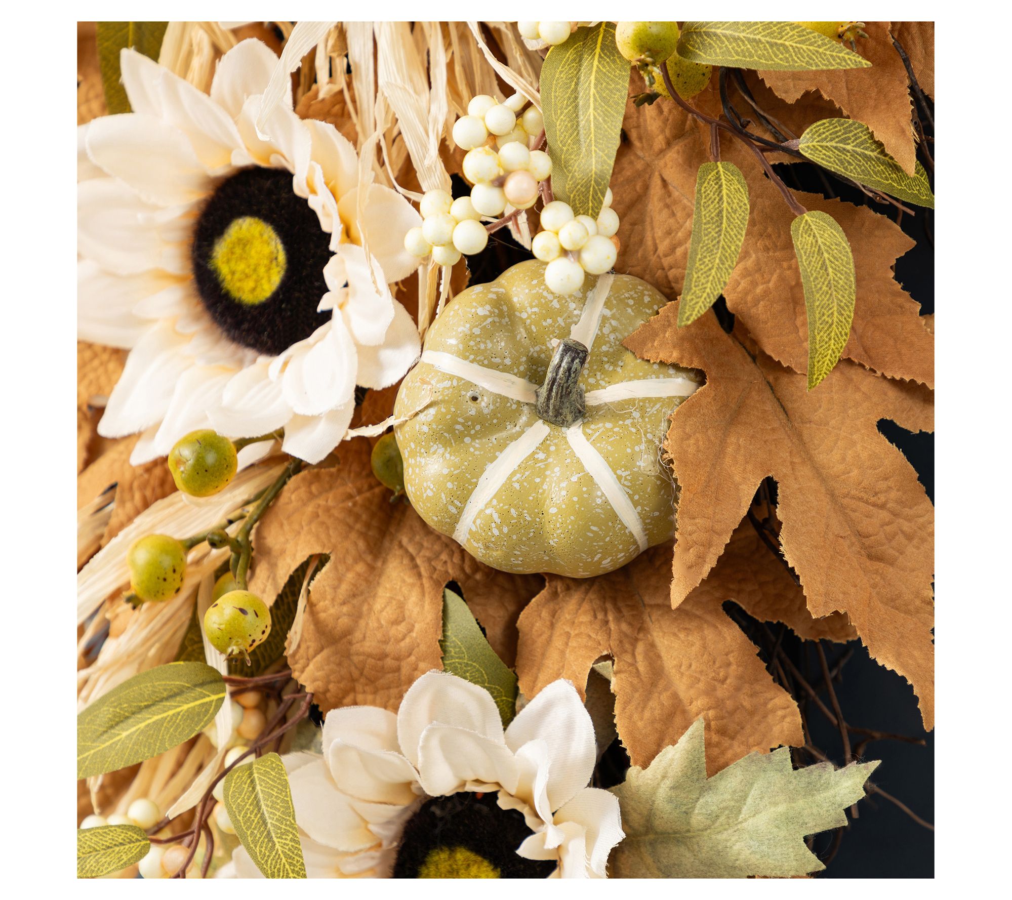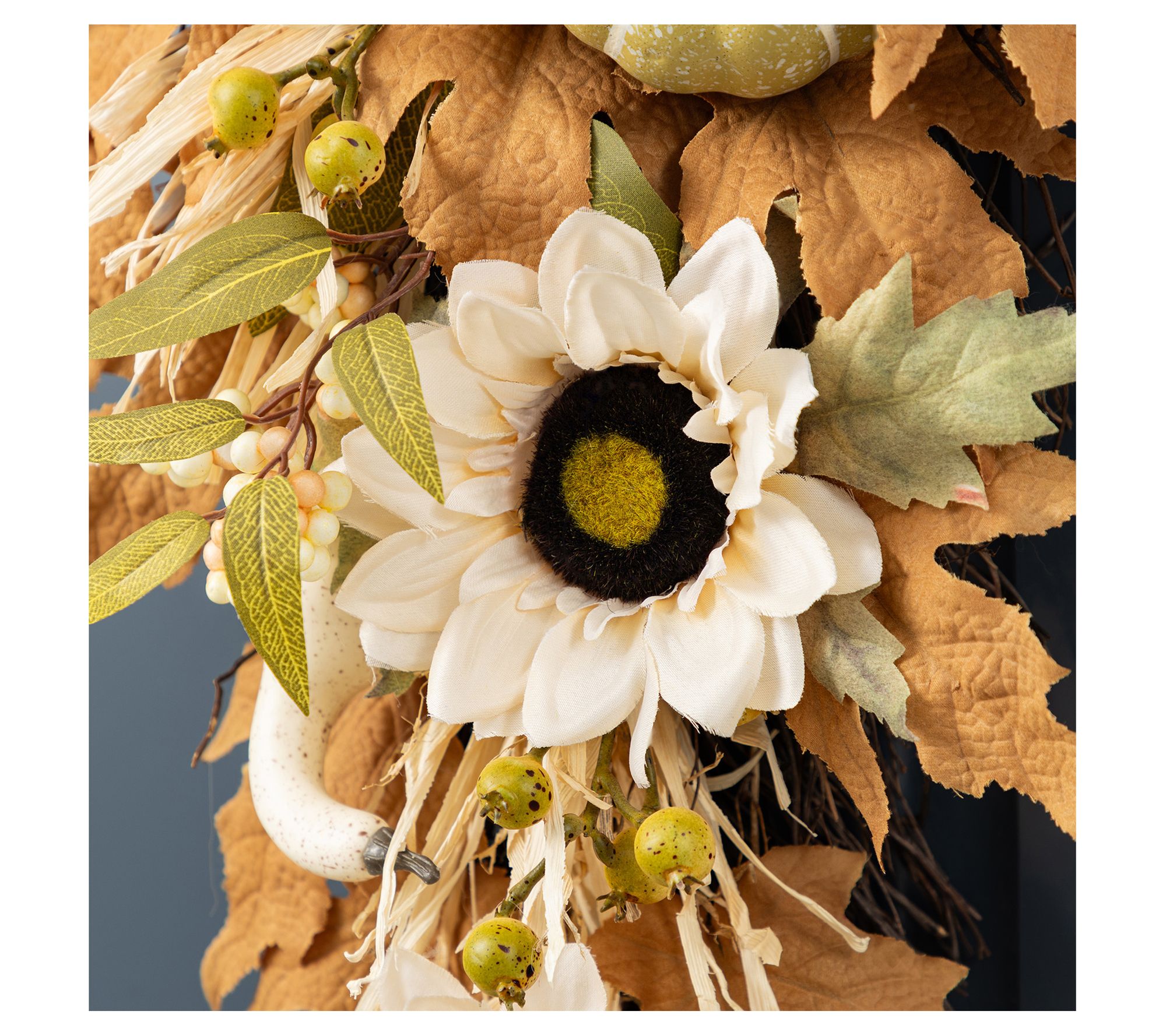 • Features mix of neutral-toned sunflowers, pumpkins, berries, and leaves