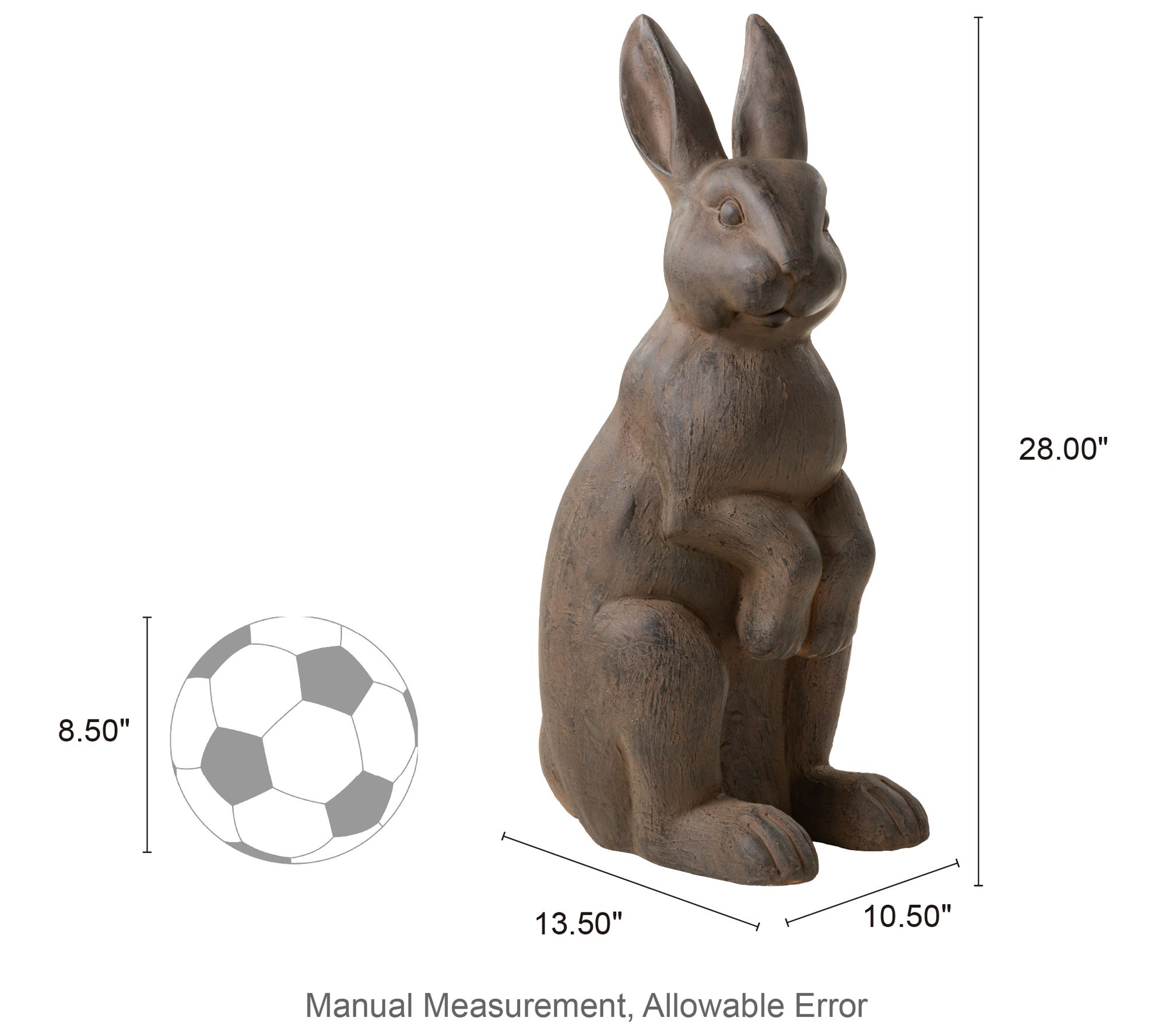 • Elegant oversized standing rabbit design with handmade distressed bronze details