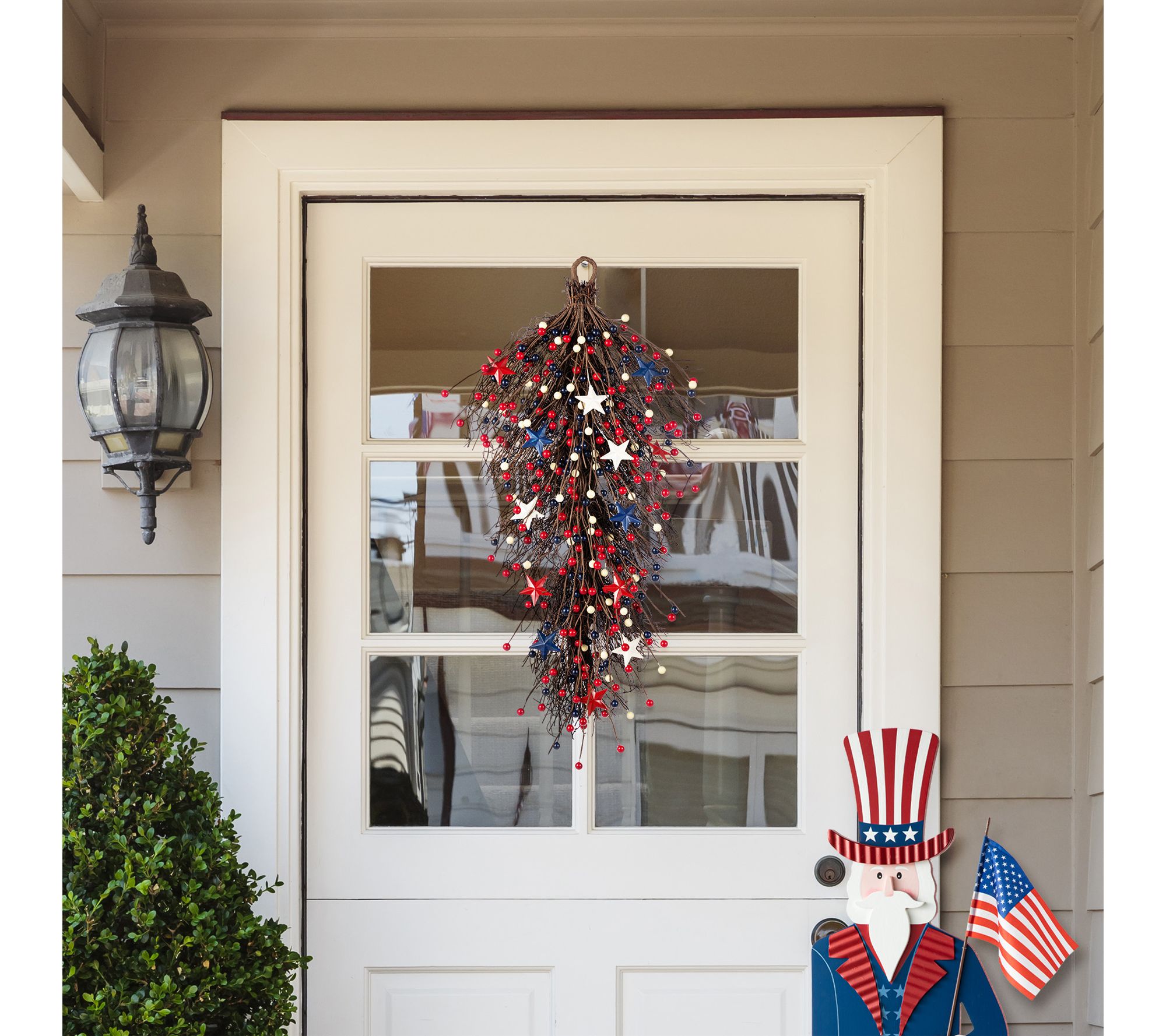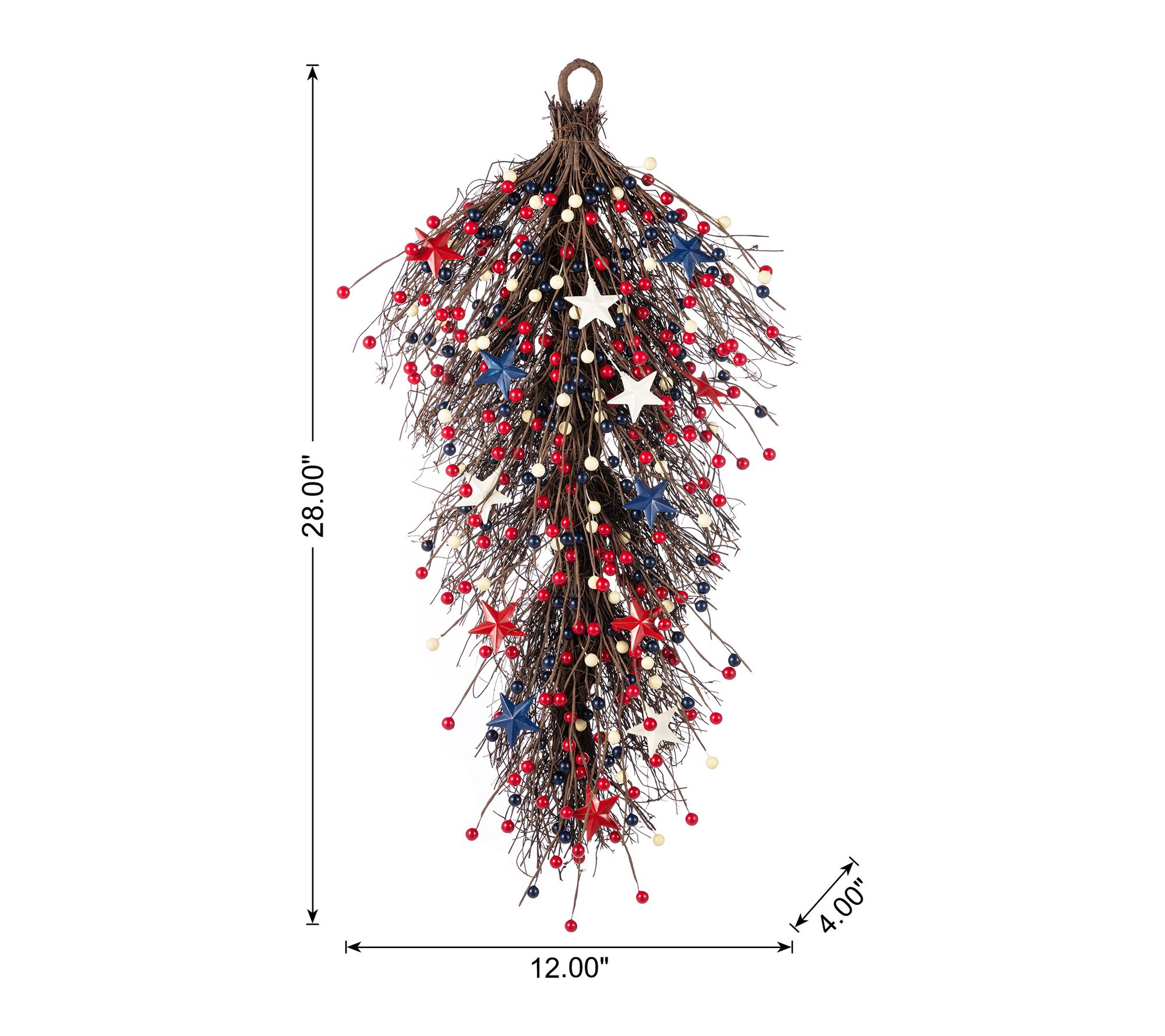 Glitzhome 28''H Patriotic Americana Stars BerryTeardrop