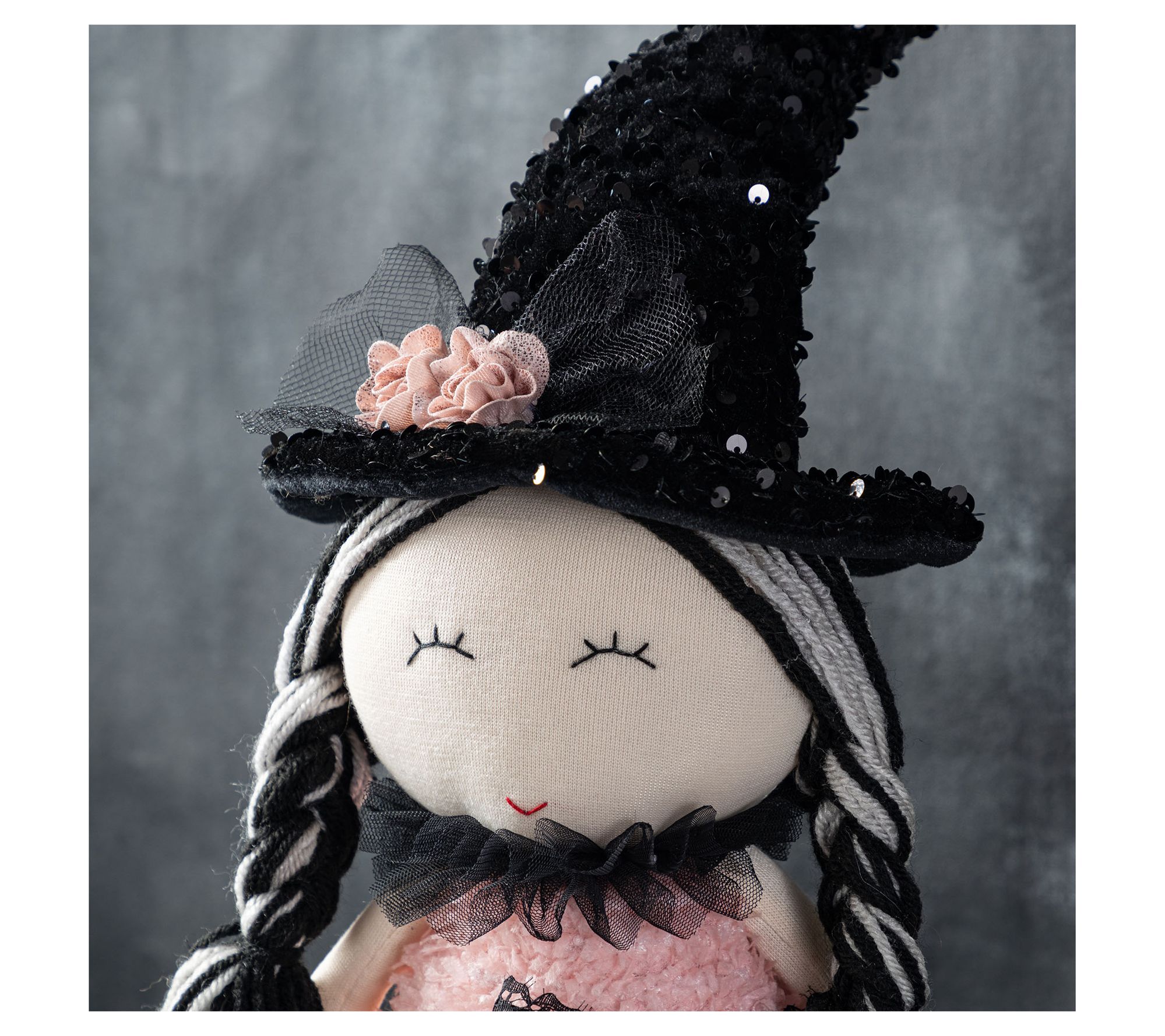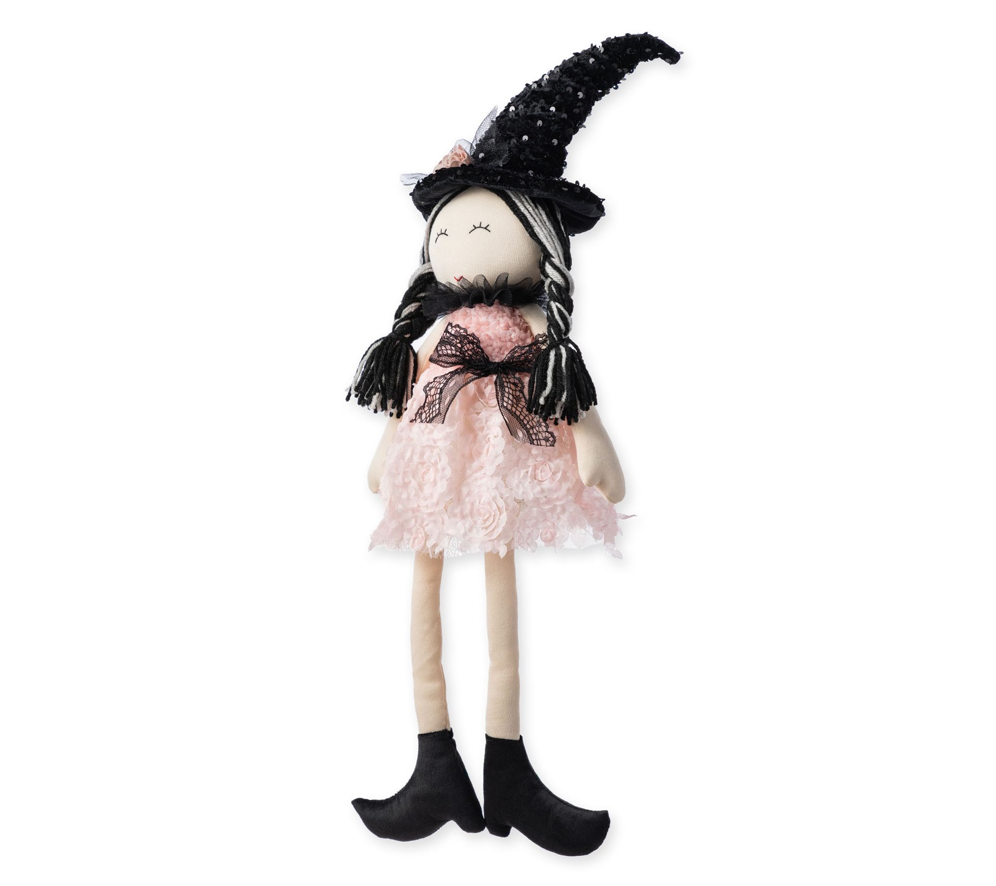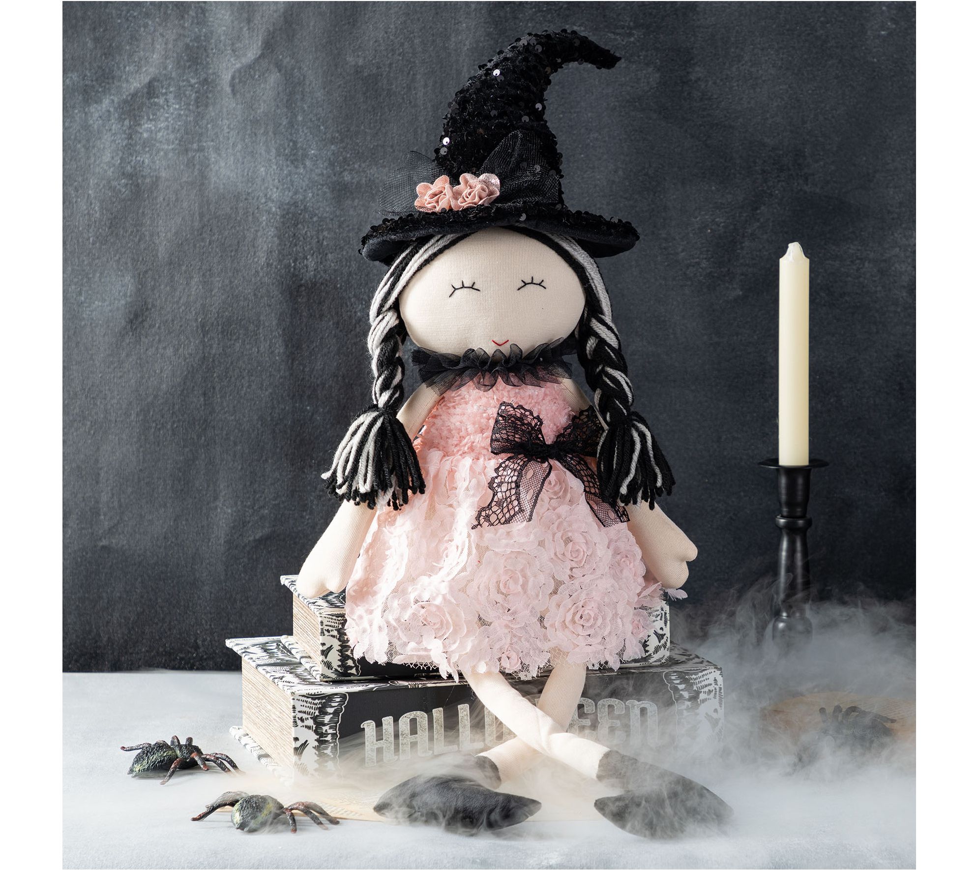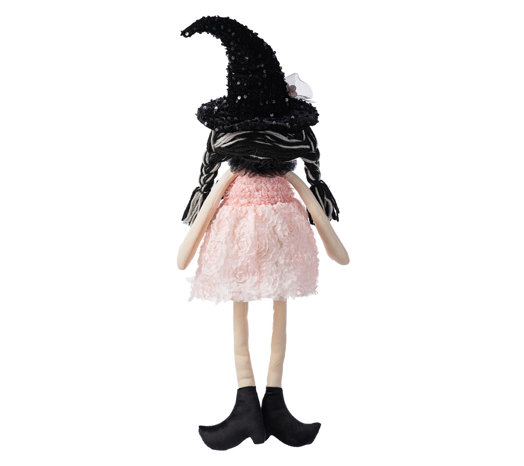 Infuse your space with playful Halloween spirit as this dressed-up witch watches over the festivities from any mantel or shelf. Outfitted in a pink dress and classic hat, she brings whimsical flair to your decor and easily brightens up nooks, side tables, or entryways. Her soft, stuffed design is inviting and fun, making her just the right companion for a seasonal display. From Glitzhome.