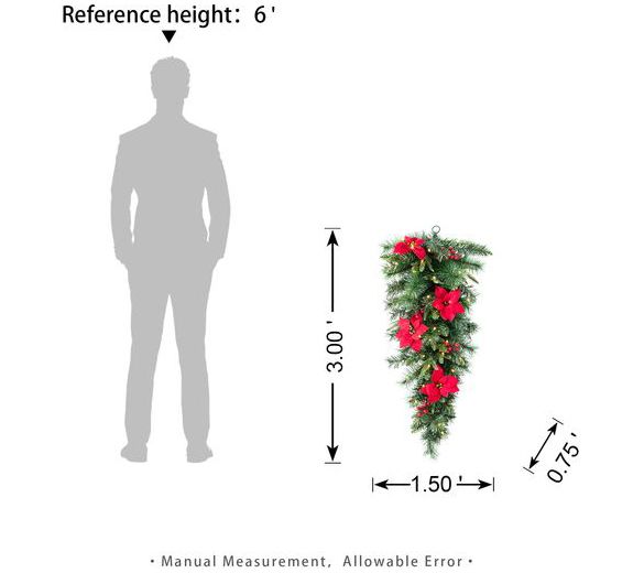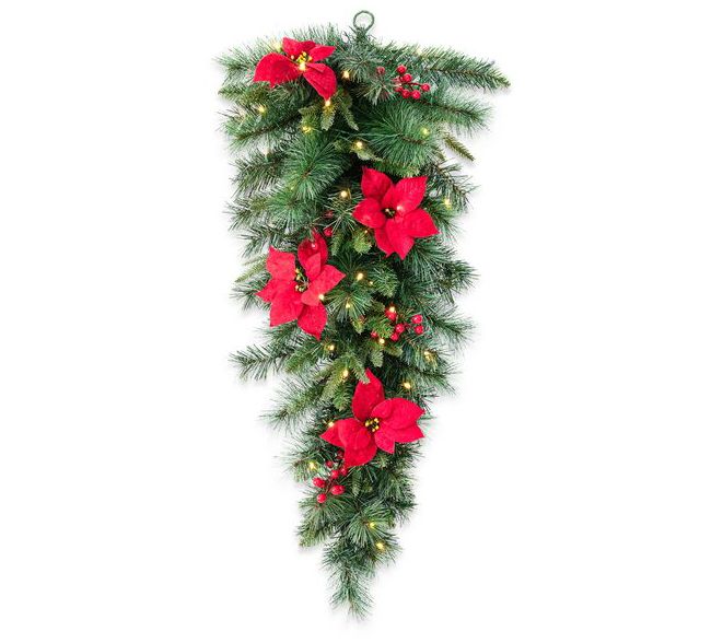 Glitzhome 3' Pre-Lit Pine Poinsettia Christmas Teardrop Swag