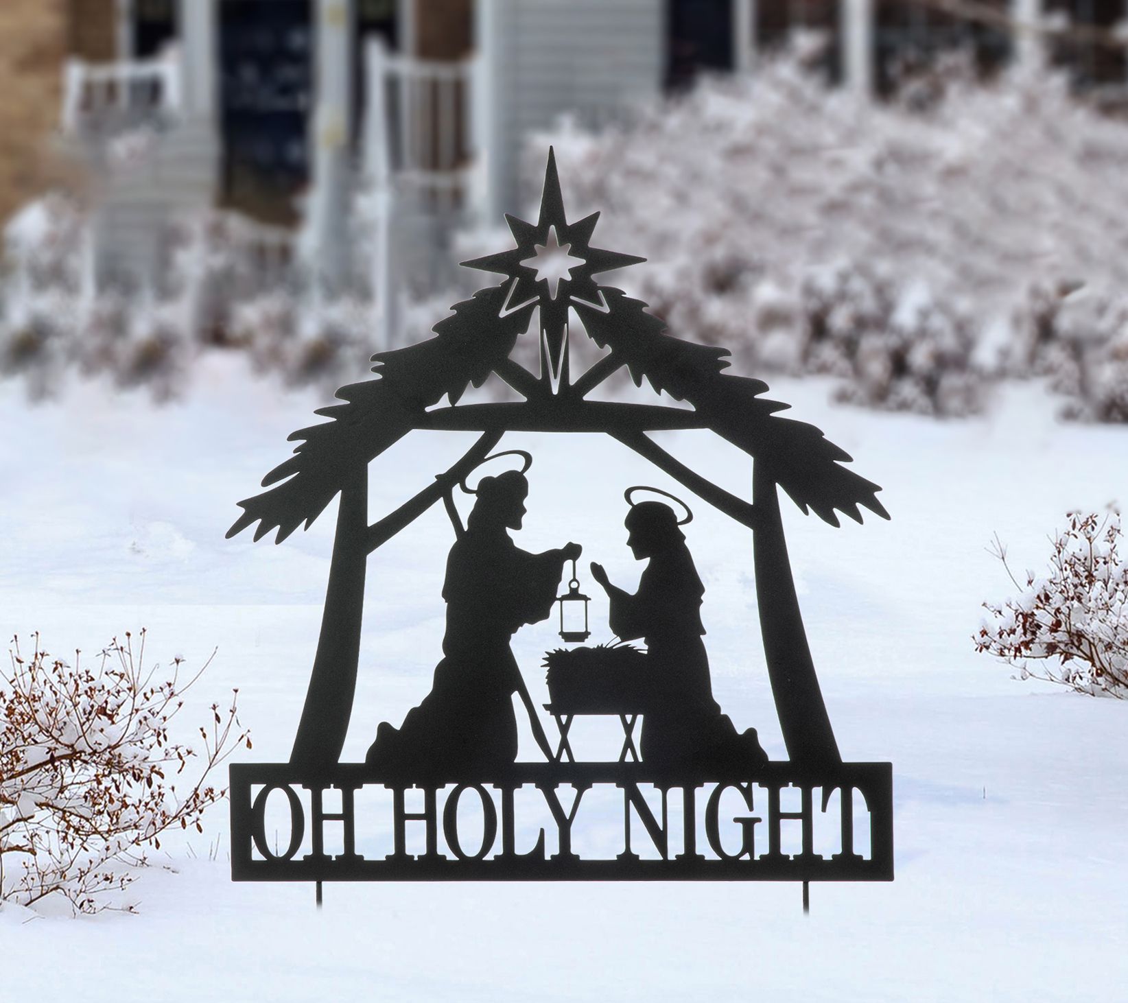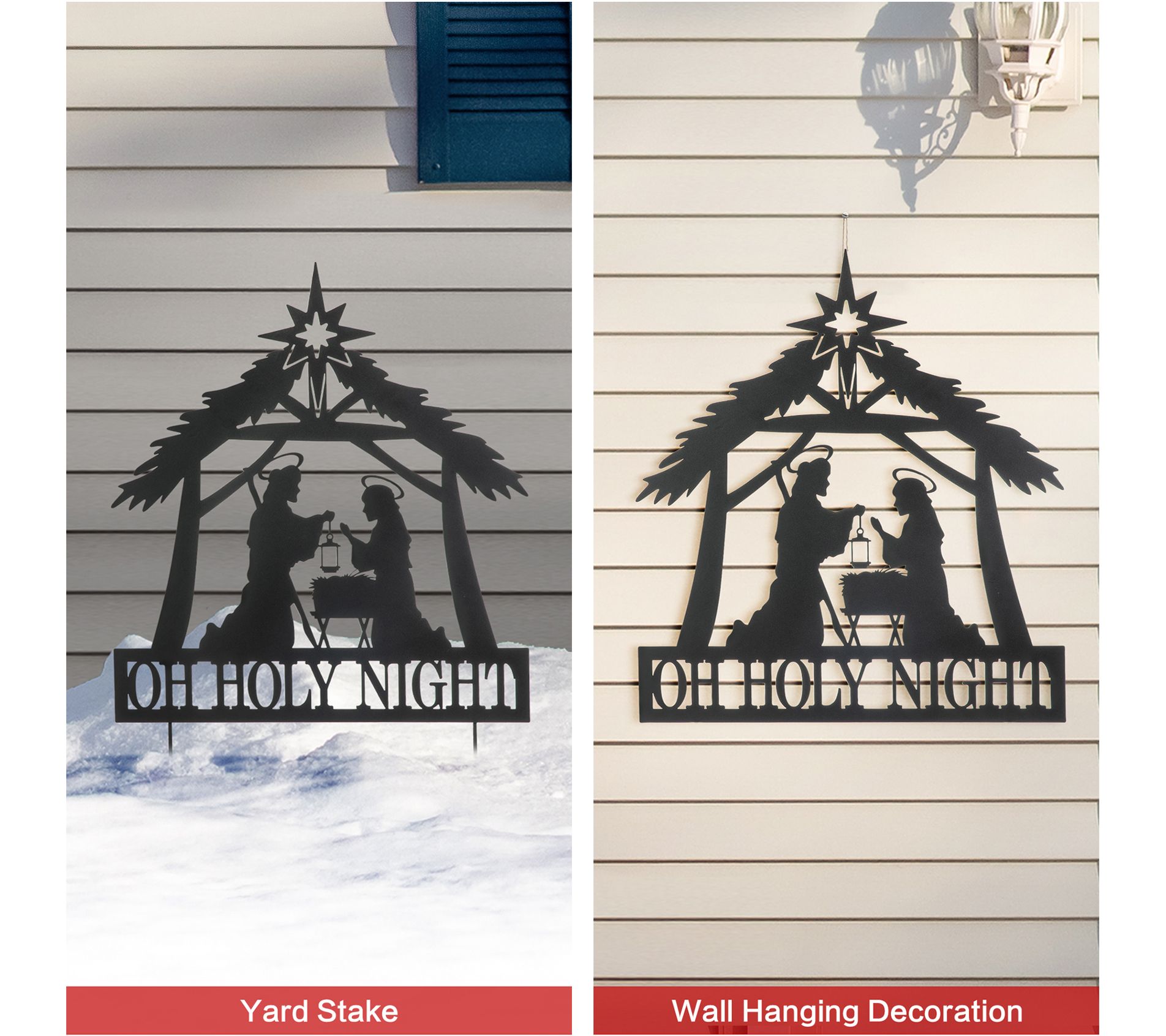 Celebrate the season with this garden stake, a timeless addition to your holiday decor. This meticulously crafted metal silhouette brings the sacred story of Jesus' birth to life in your lawn or doorway, offering a unique blend of solemnity and warmth. Whether used as a yard stake or wall decor, its versatile design and easy assembly make it a cherished piece for years to come. From Glitzhome.