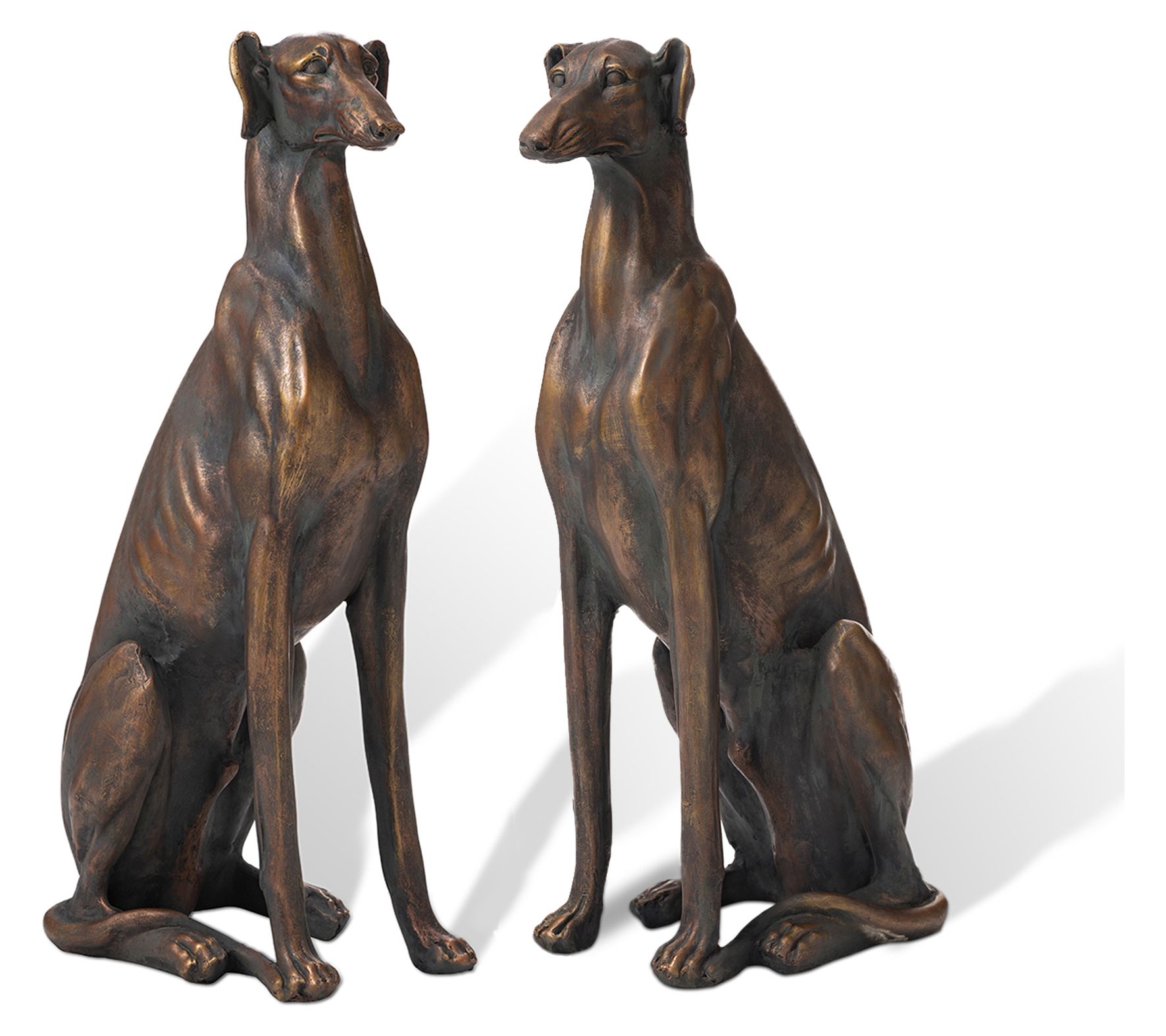 Glitzhome 30" Sitting Greyhound Garden StatuesS/2