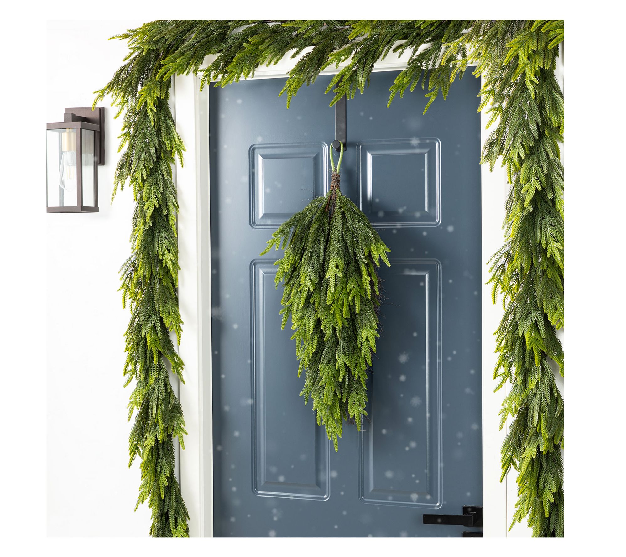 • Includes Christmas greenery teardrop swag