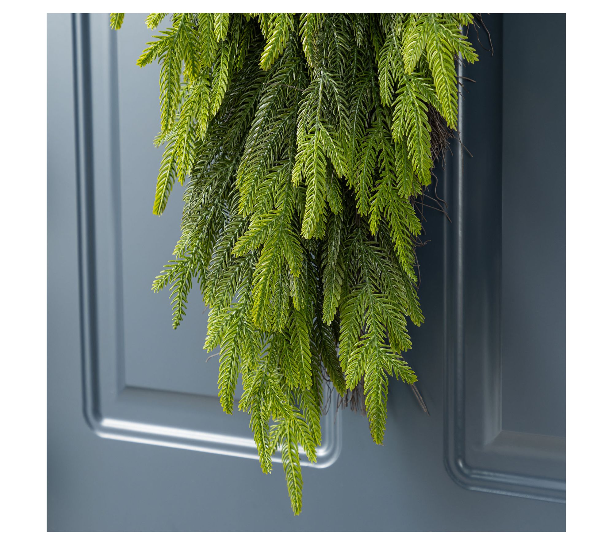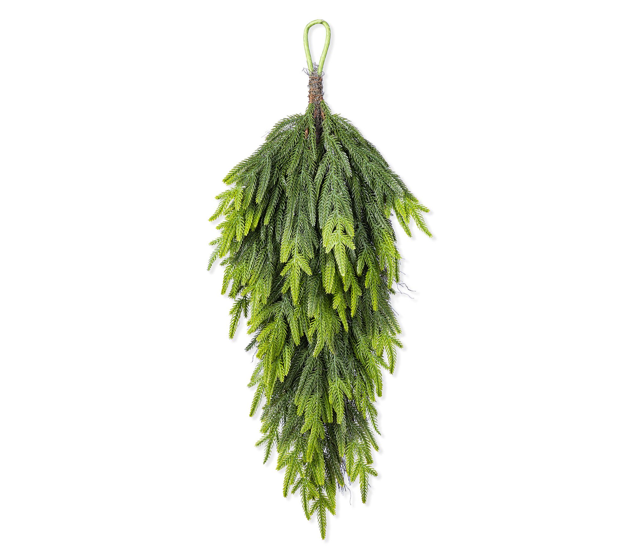 Picture this: a charming teardrop swag cascading gracefully over your front door, welcoming guests into your winter wonderland. Its verdant pine-inspired greenery promises to elevate your holiday decor -- offering a lush, lifelike appearance that elegantly greets each festive visitor. Effortlessly versatile, it harmonizes with all your seasonal favorites and requires minimal upkeep. Ready to hang, your new centerpiece shines through any holiday scene. From Glitzhome.