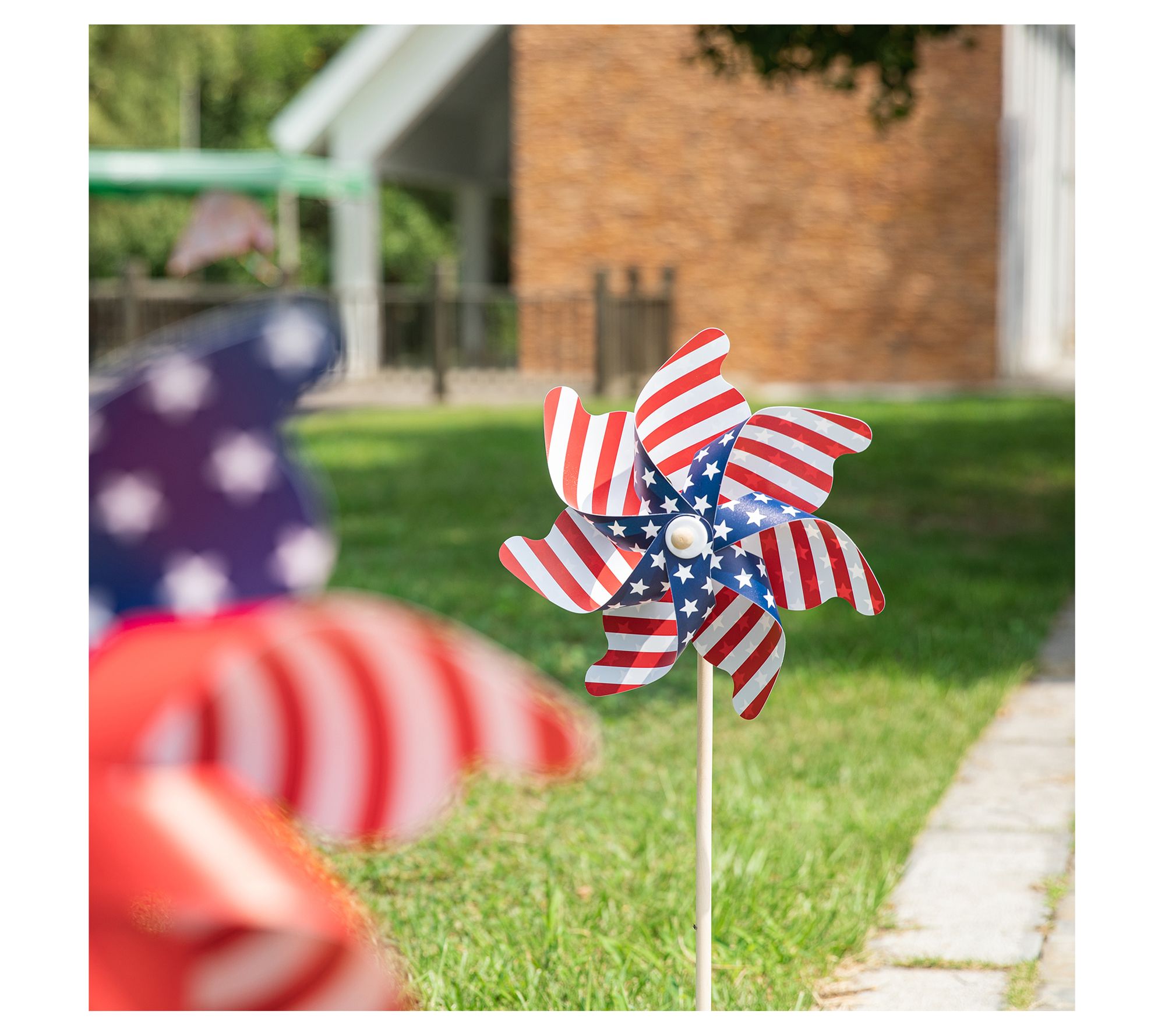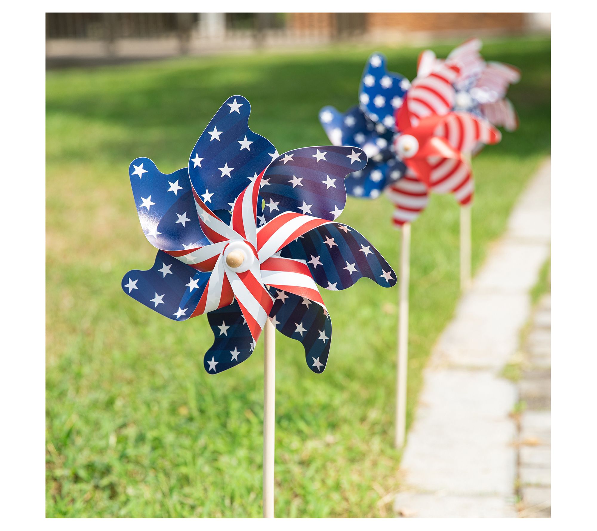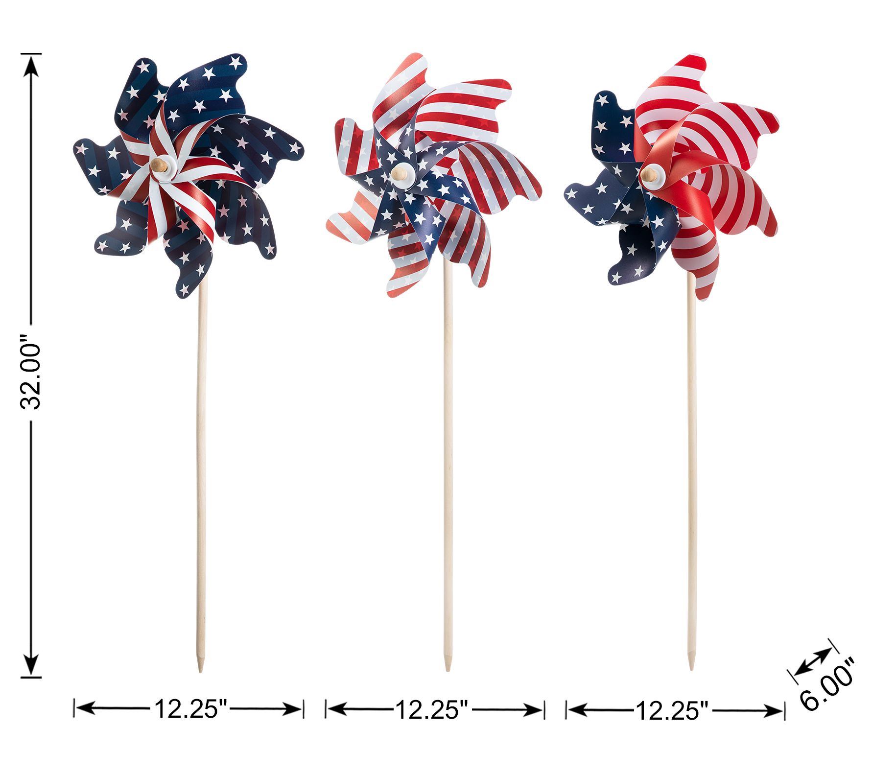 Glitzhome 32" USA Stars & Stripes Americana Yard Windmills S/3