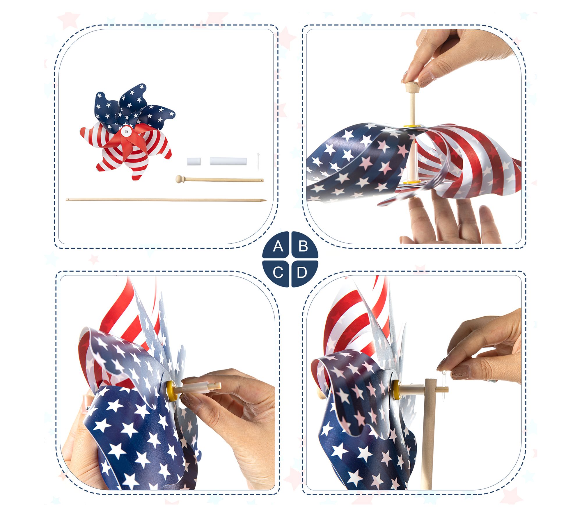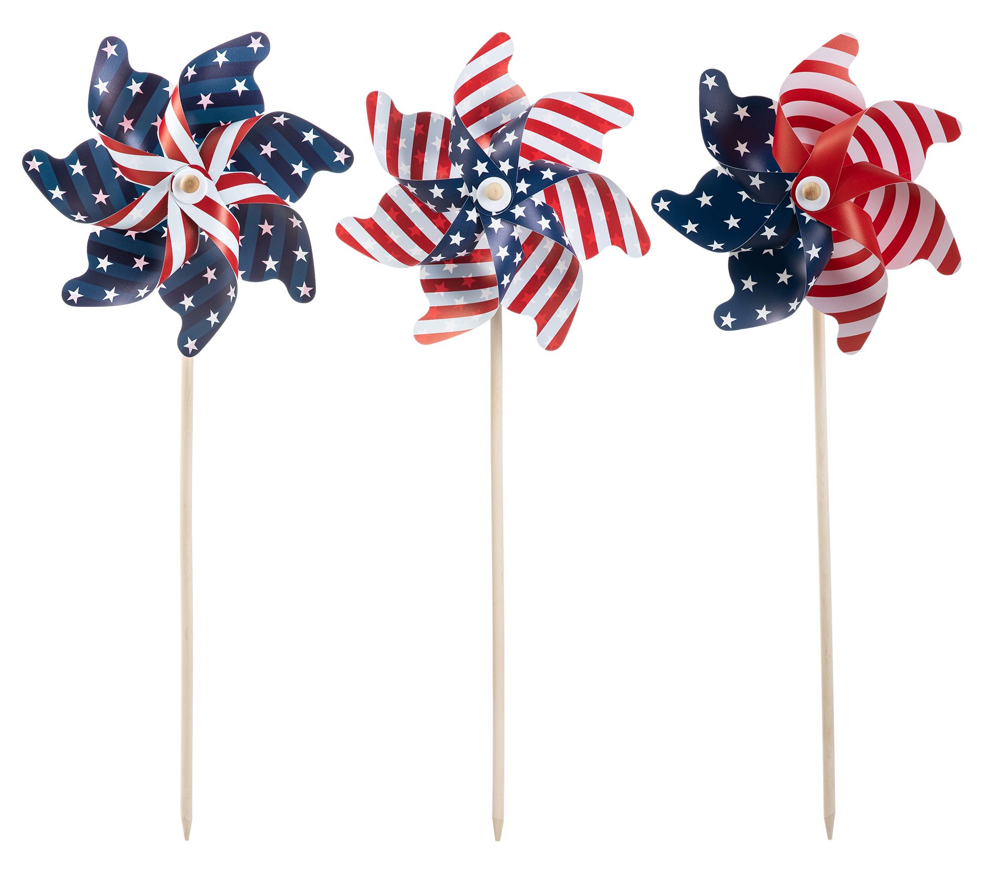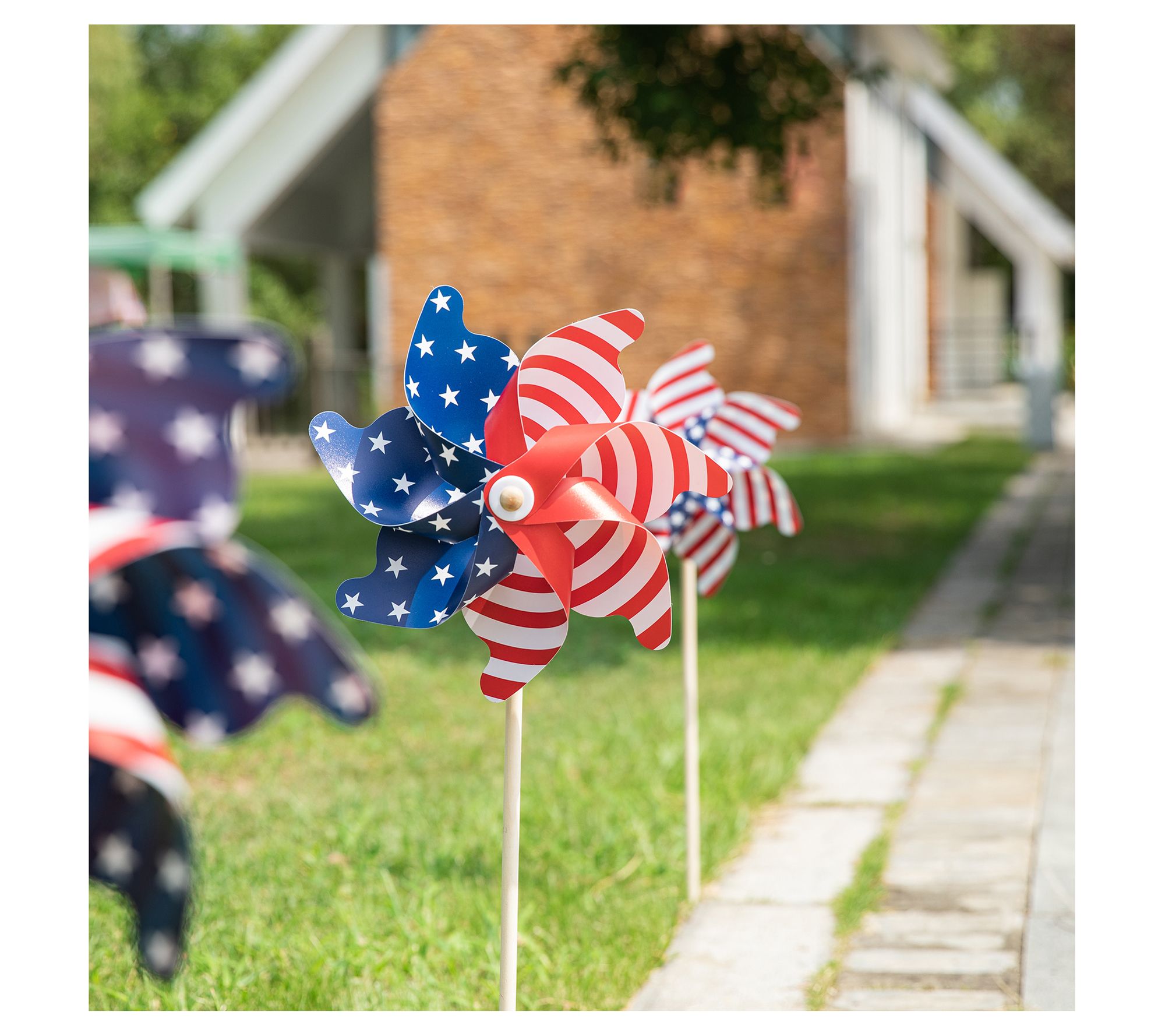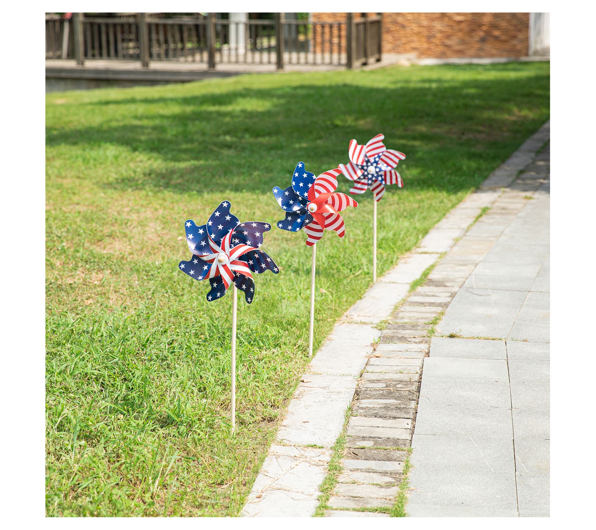 Glitzhome 32" USA Stars & Stripes Americana Yard Windmills S/3