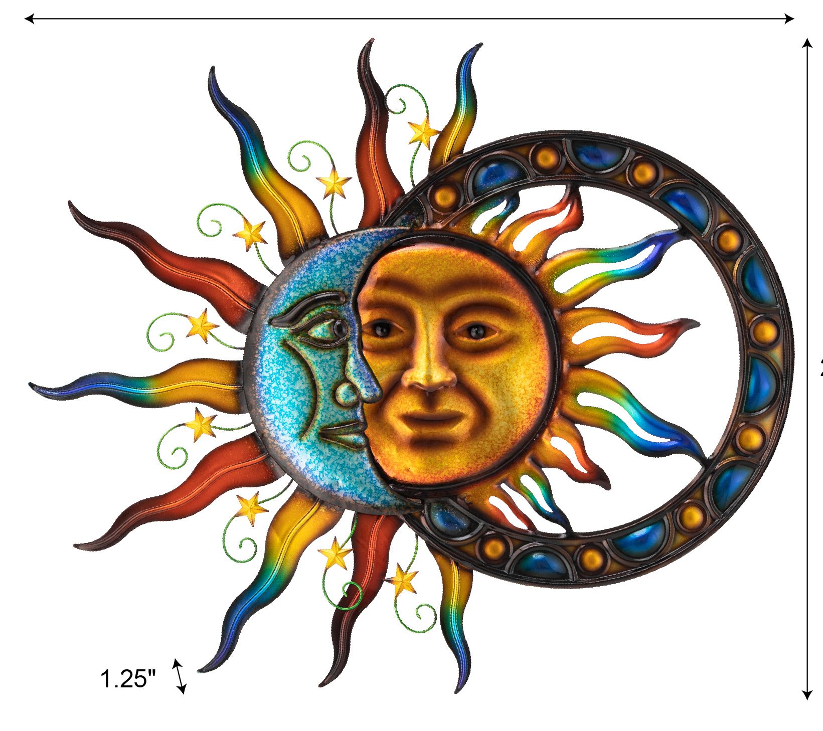 Greet your guests with the artistic flair of this sun and moon wall sign. Crafted from iron with a powder-coated finish in various vibrant colors, it brings natural charm to any garden, porch, deck, patio, or home space. From Glitzhome.