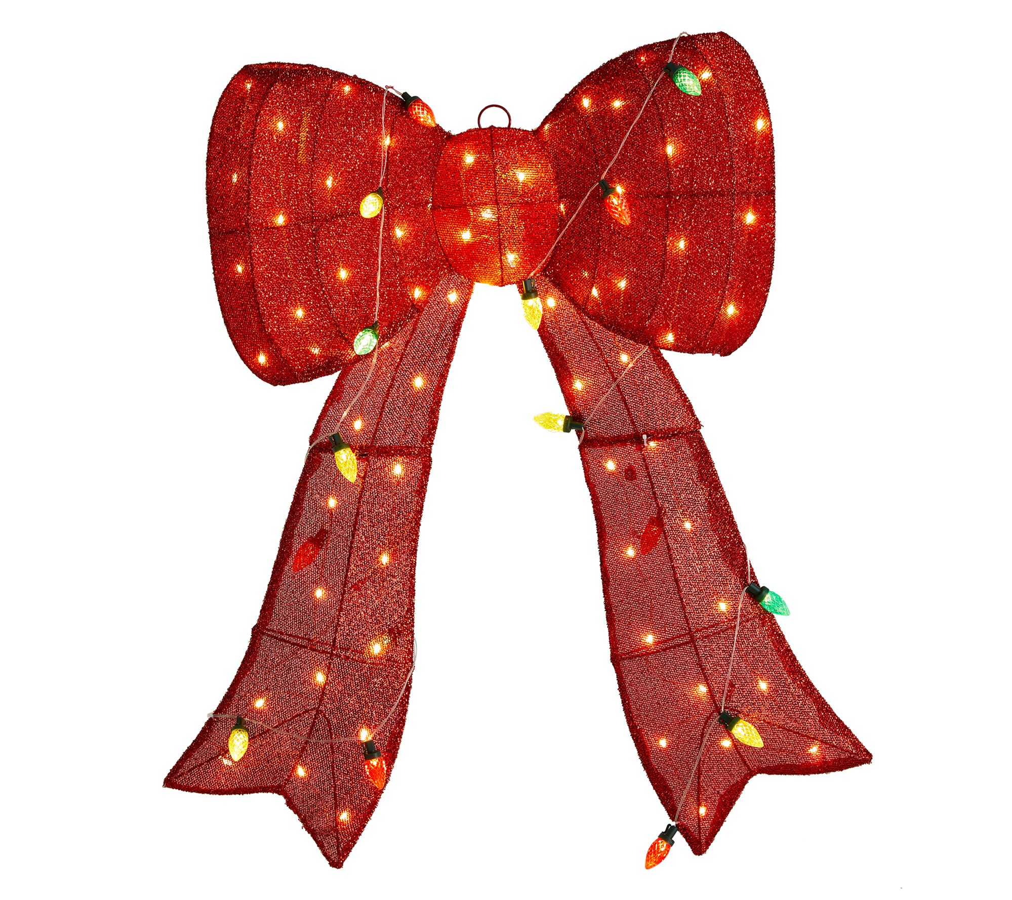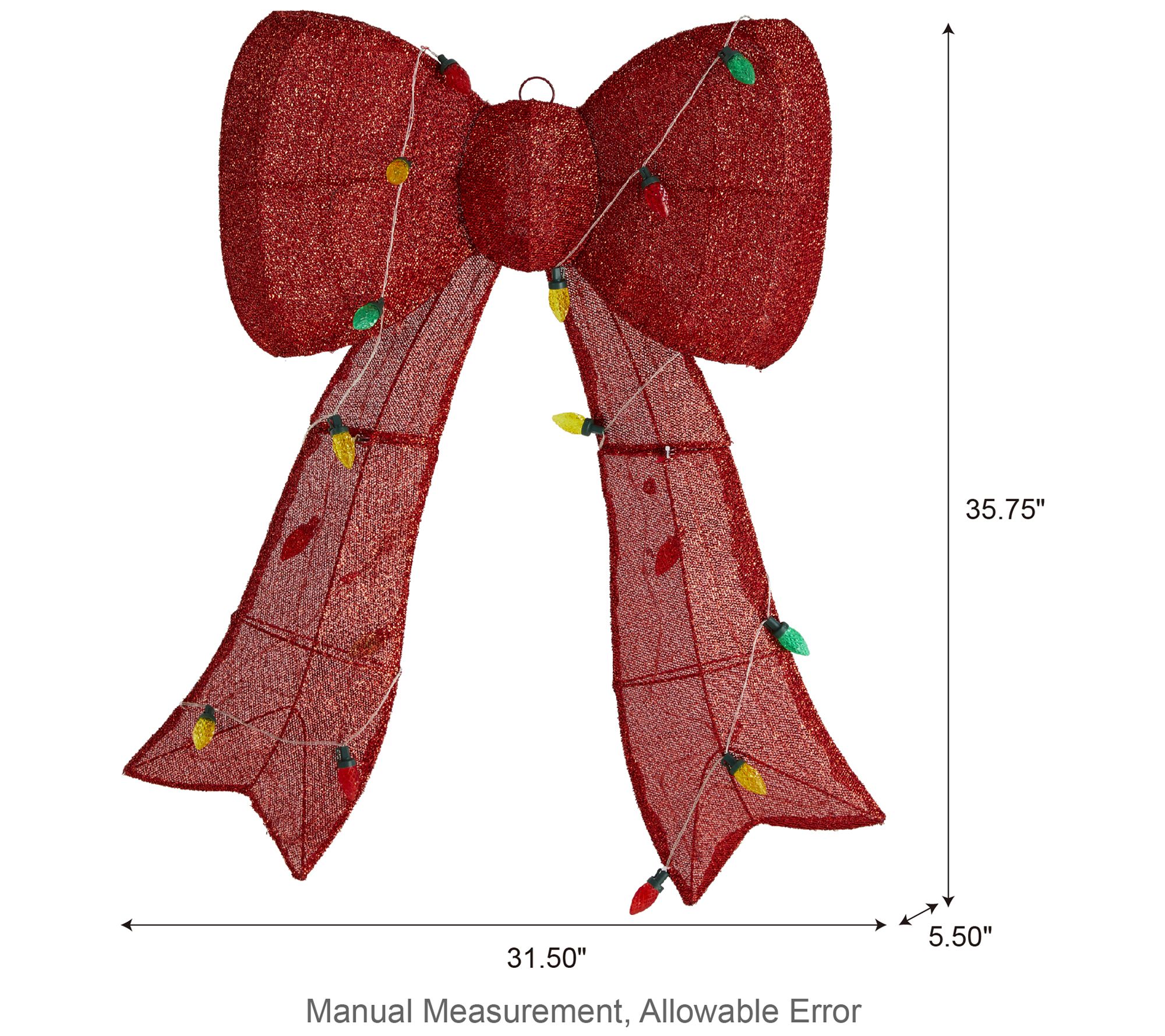 Glitzhome 35" Christmas Red Fabric Bow LightedOutdoor Decor
