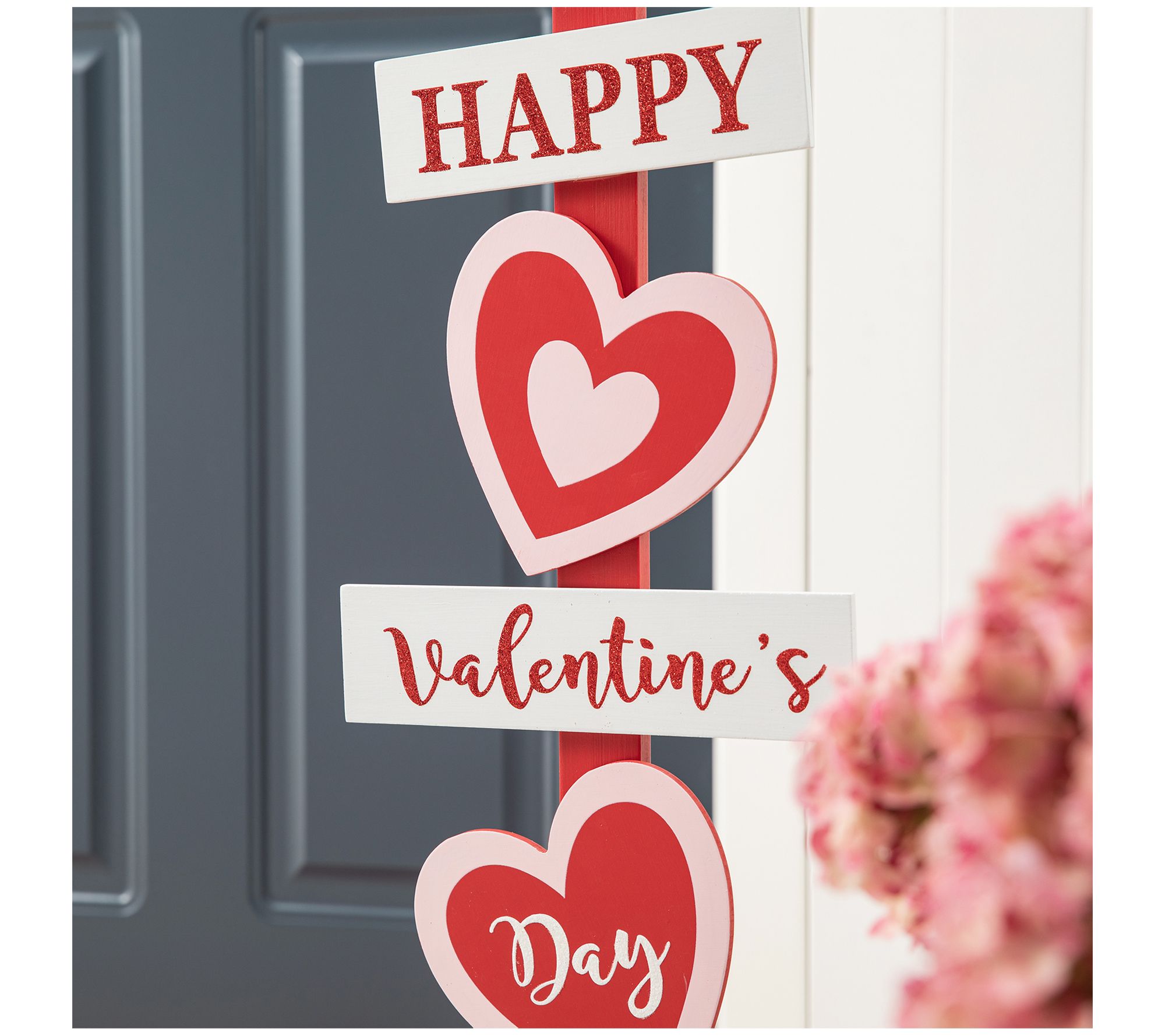 Glitzhome 35" Valentine's Heart & Love House Porch Sign Decor