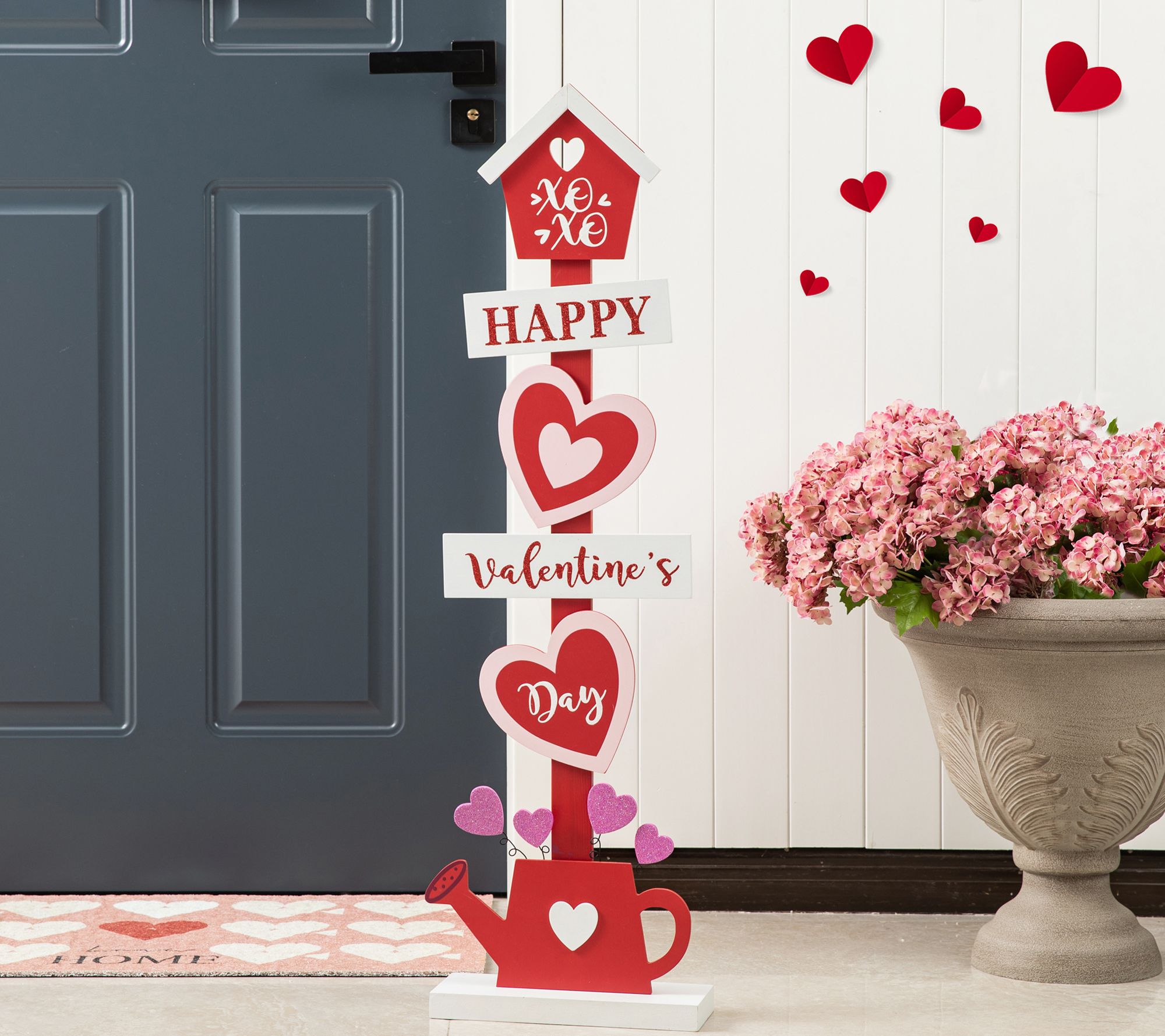 Let love blossom on your porch with this Valentine's Day sign that features loads of hearts, a sweet message, and a watering can base. From Glitzhome.
