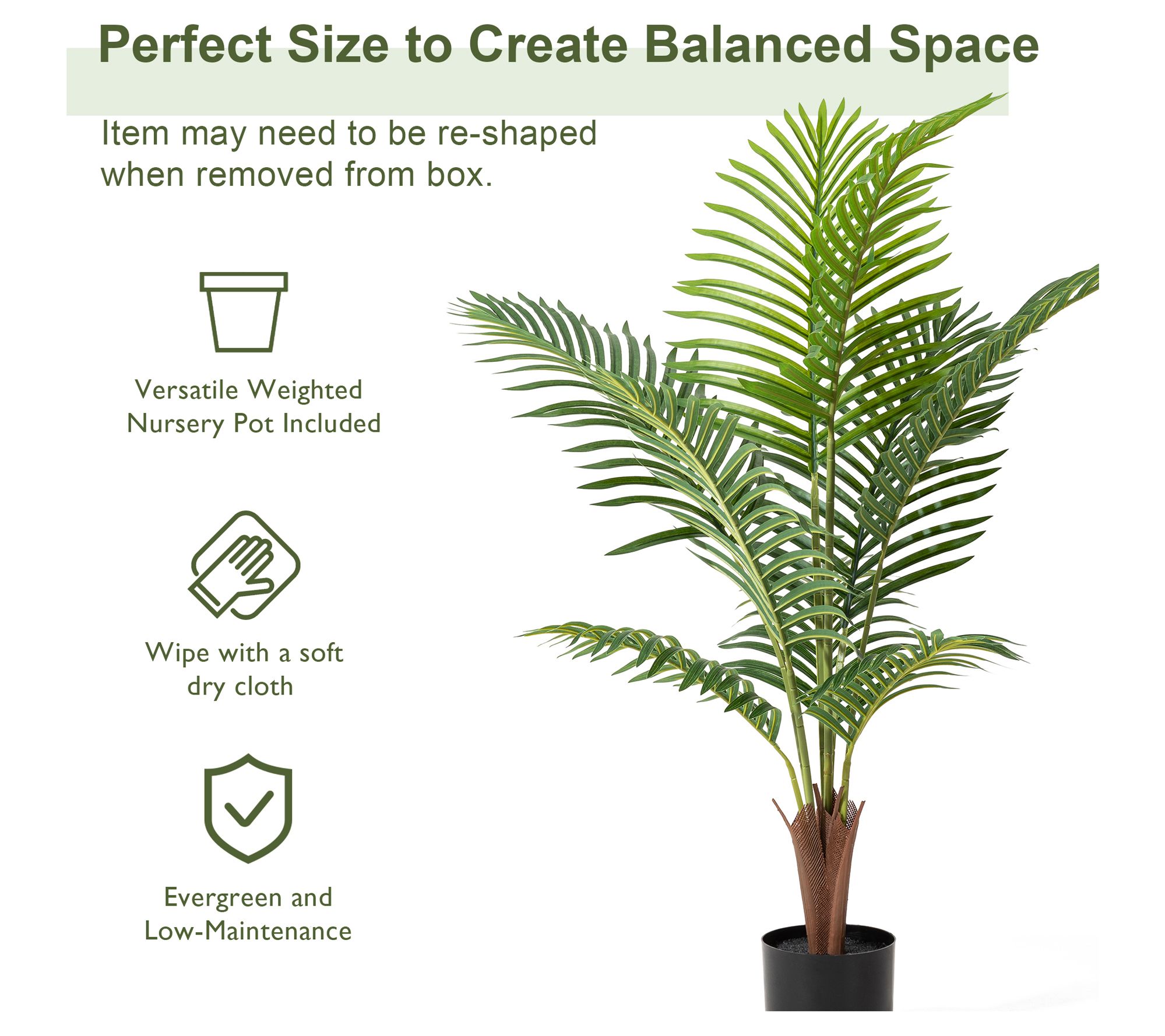 • Includes lifelike areca palm tree and weighted pot