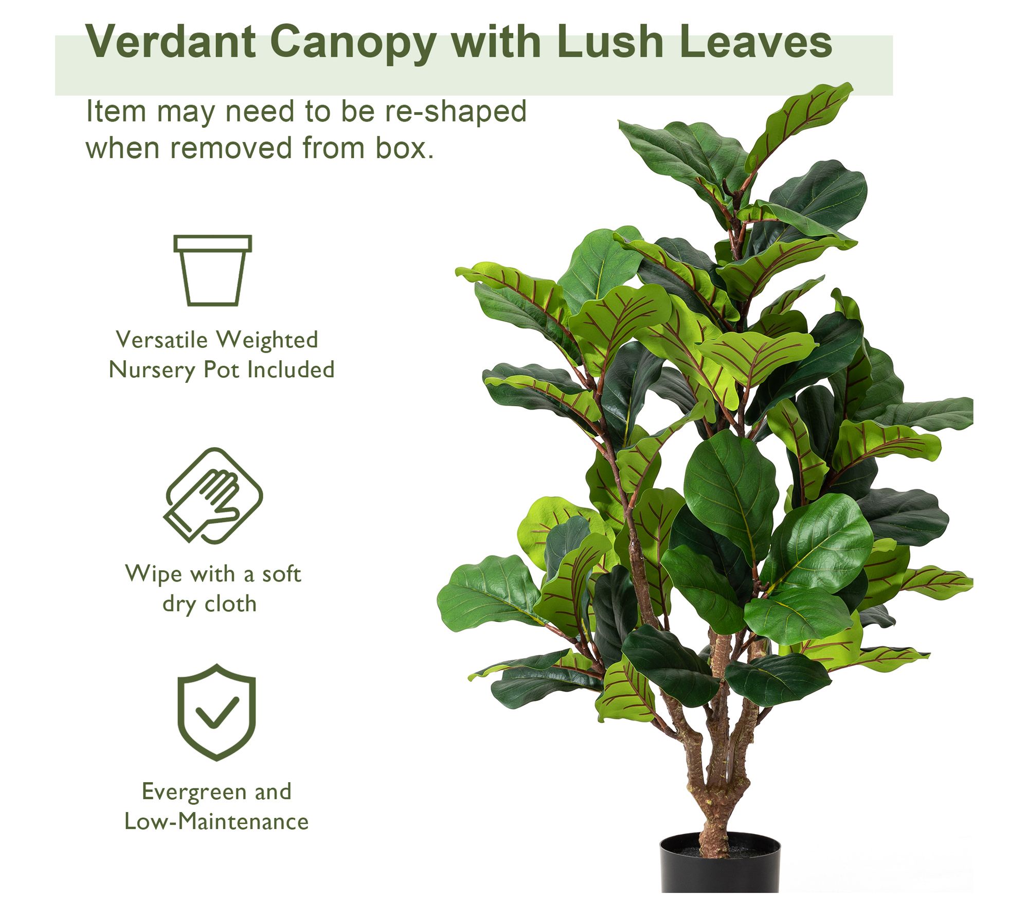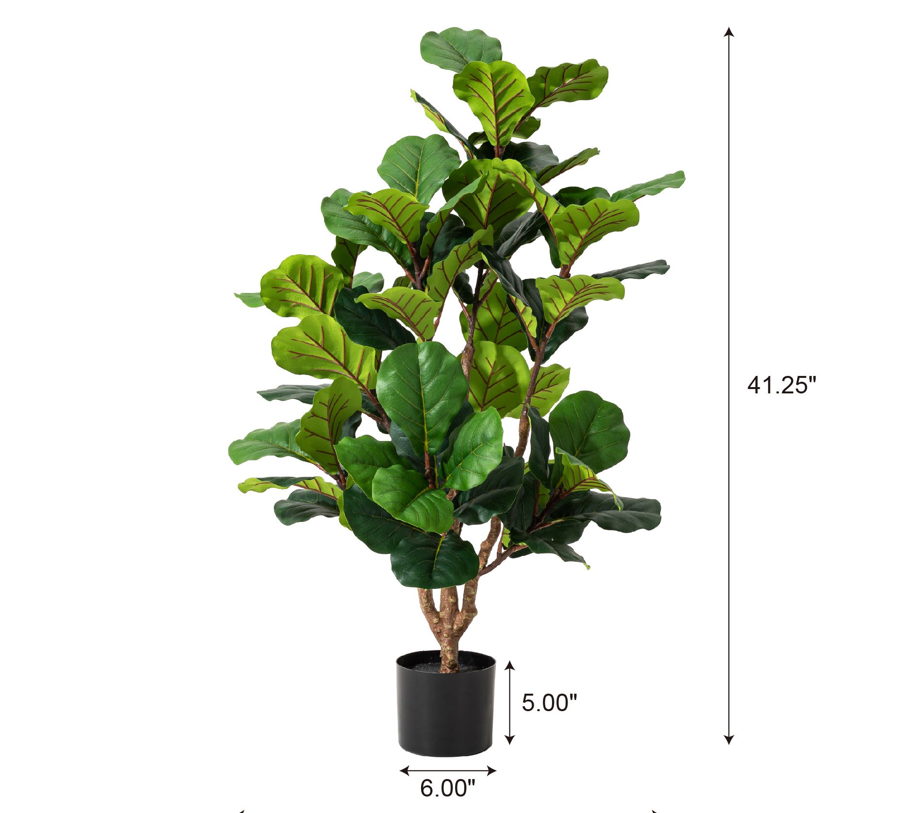 • Includes lifelike fiddle leaf fig tree and weighted pot