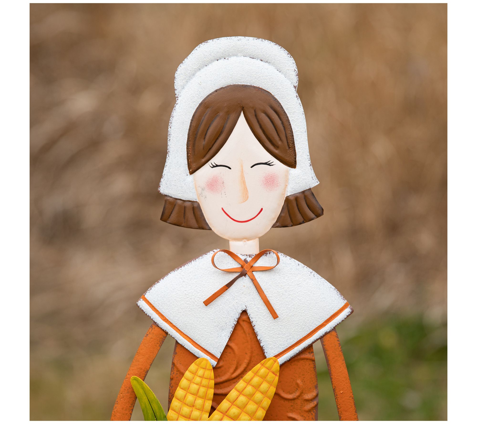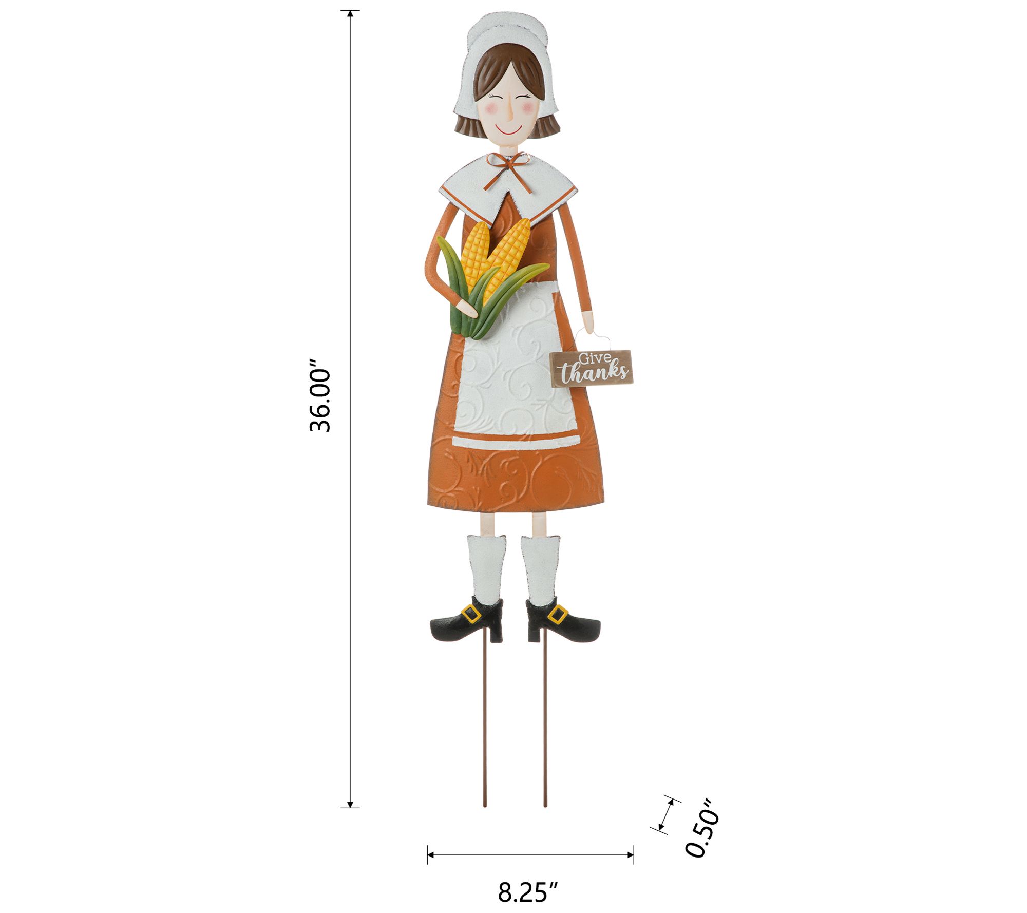 Glitzhome 36" Thanksgiving Pilgrim Girl Yard Stake