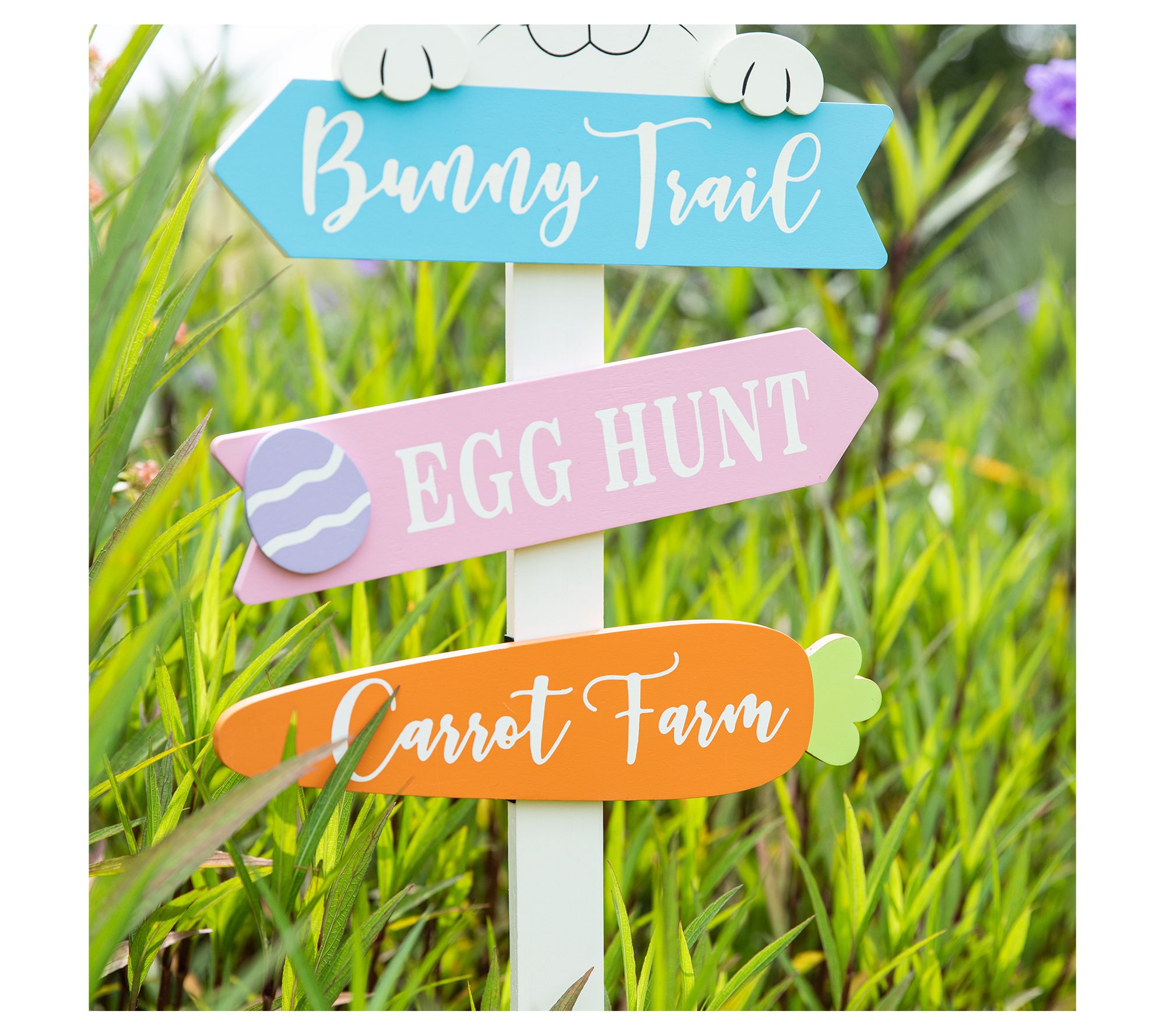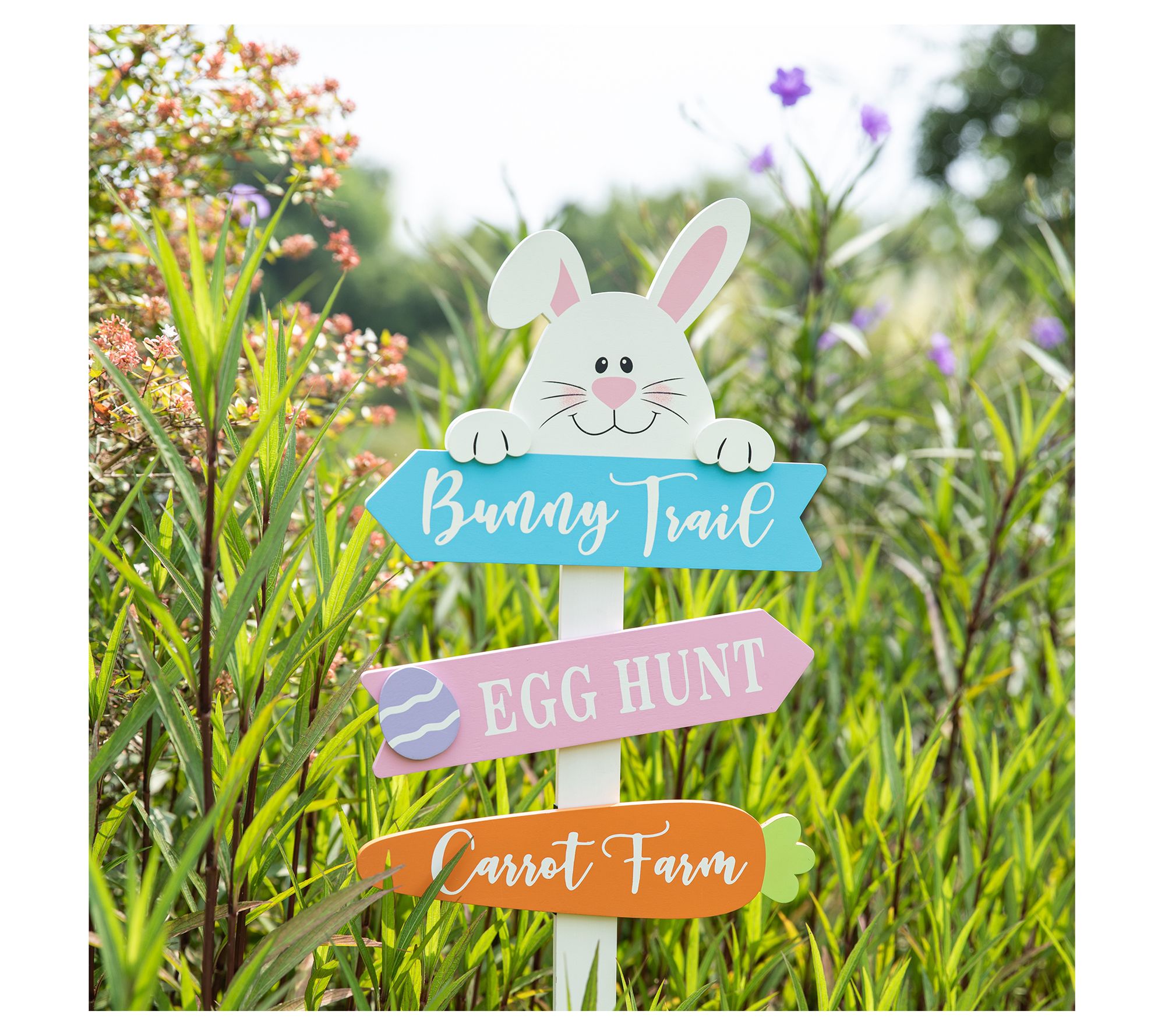Welcome spring and delight your guests with the Glitzhome 36" Wooden Easter Bunny Yard Stake. Featuring a charming bunny adorned with colorful welcome signs that read "Bunny Trail," "Egg Hunt," and "Carrot Farm," this stake adds a touch of whimsy and festive spirit to your outdoor space. Perfect for Easter gatherings, it's sure to bring joy and a welcoming atmosphere to your yard and home. From Glitzhome.