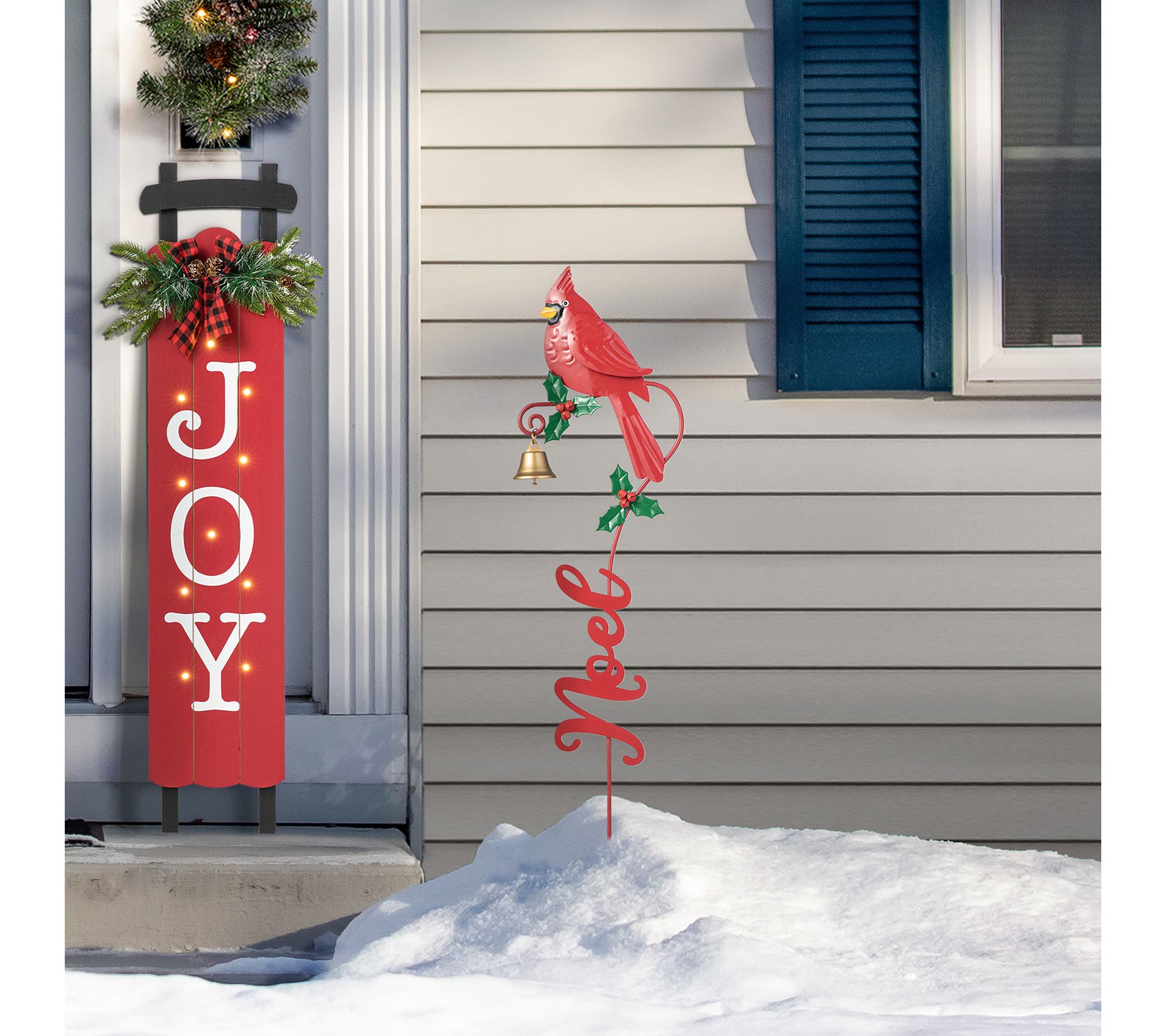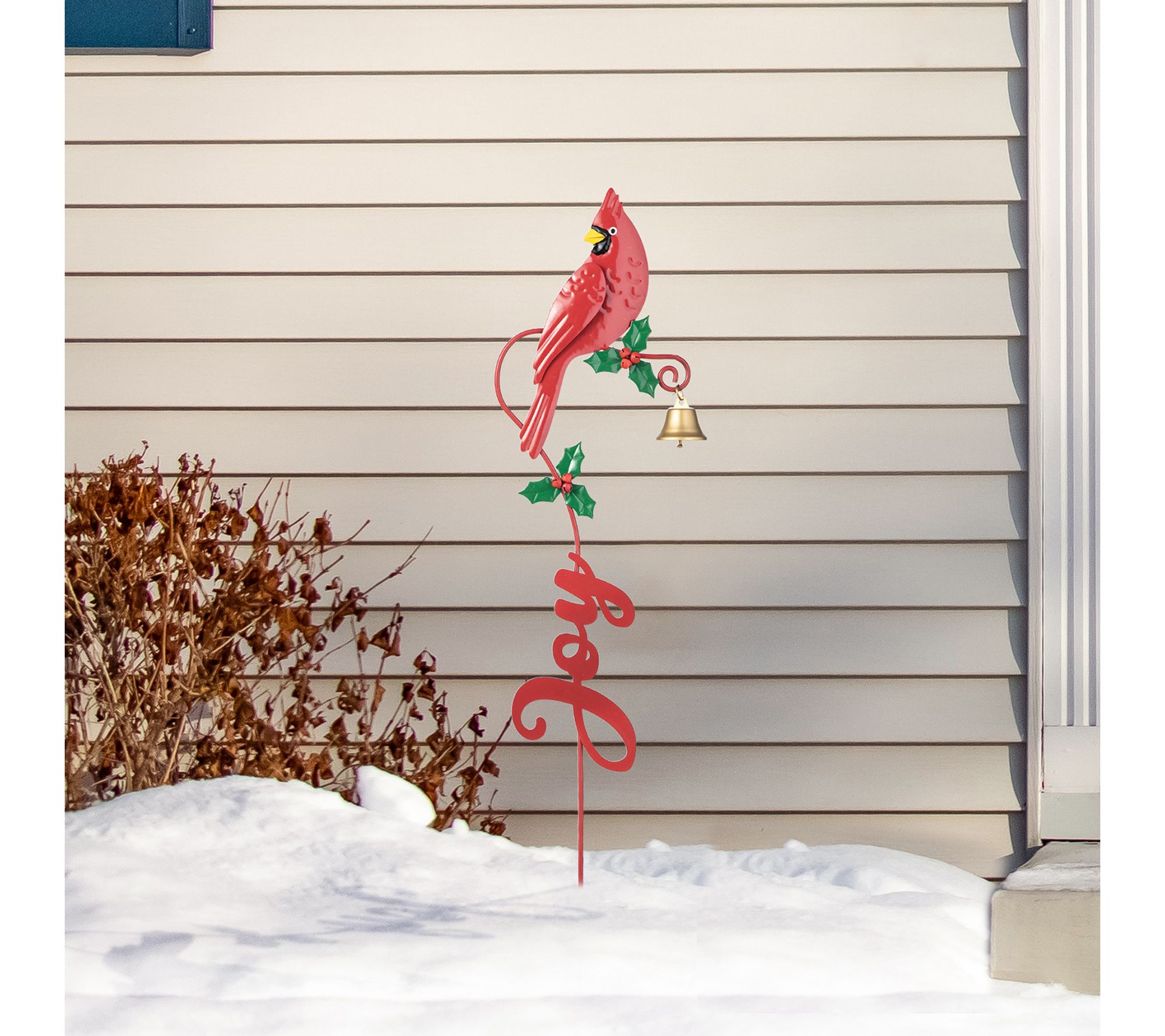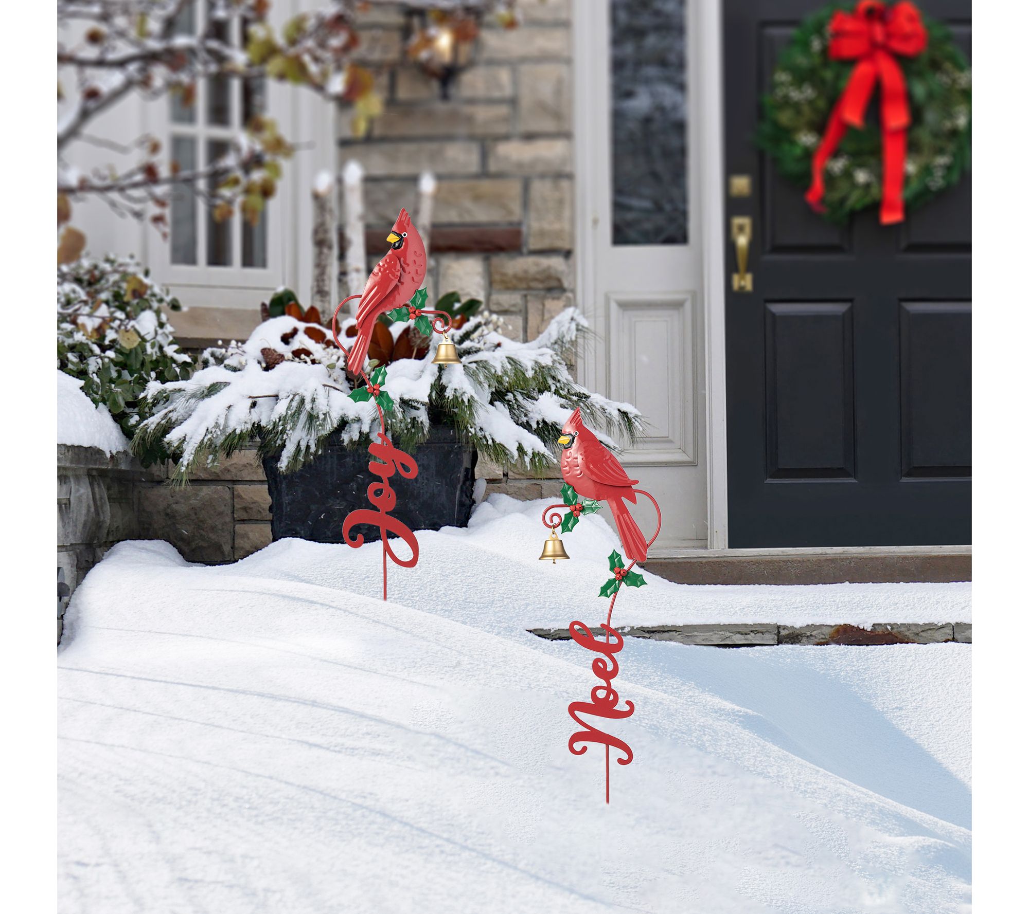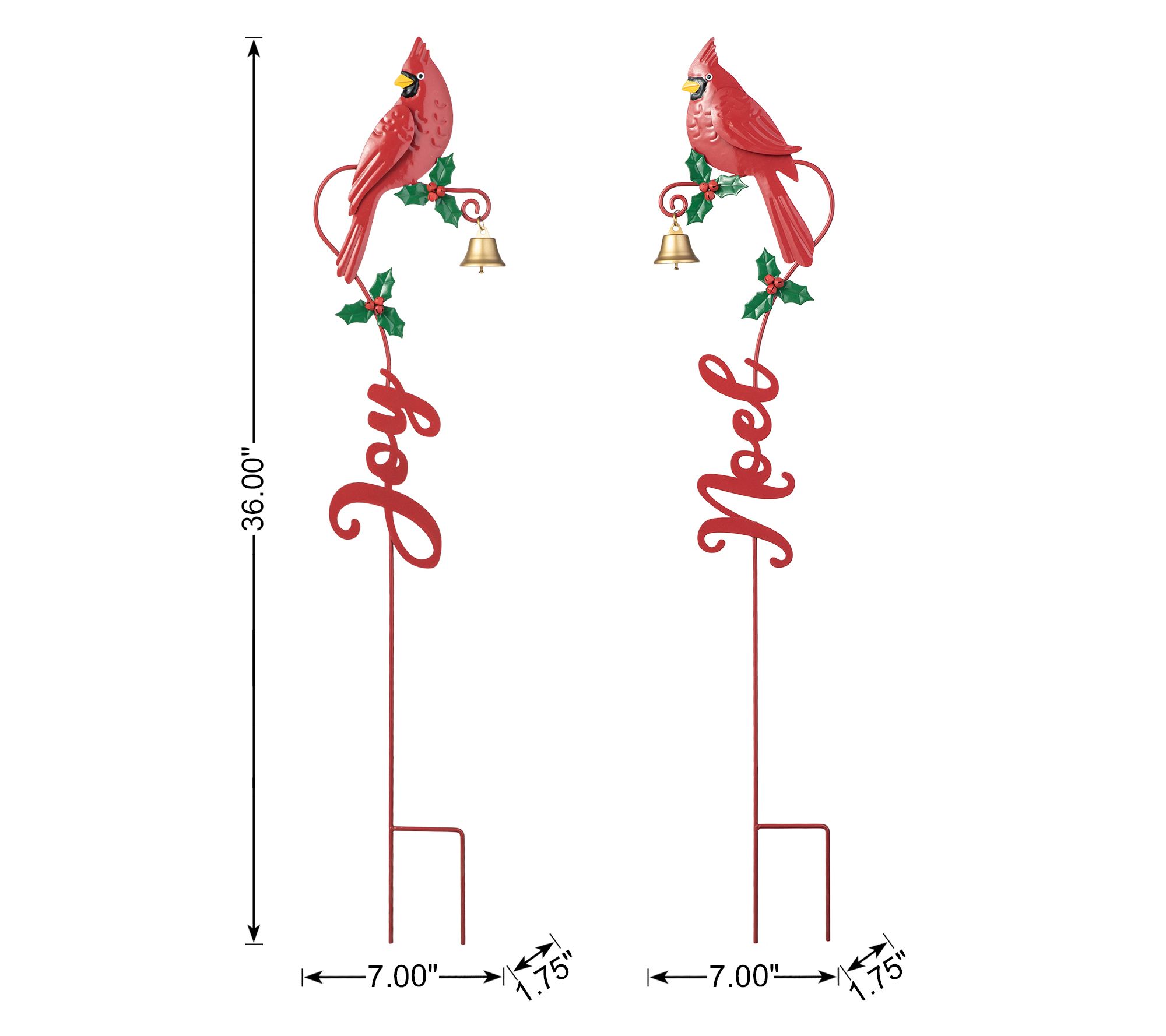 Add the perfect holiday accent to your lawn or doorway with this set of two Christmas metal cardinal Joy and Noel yard stakes. Crafted from metal, these stakes feature cardinals sitting on a holly branch, perfectly capturing the joyful atmosphere of the holidays. From Glitzhome.