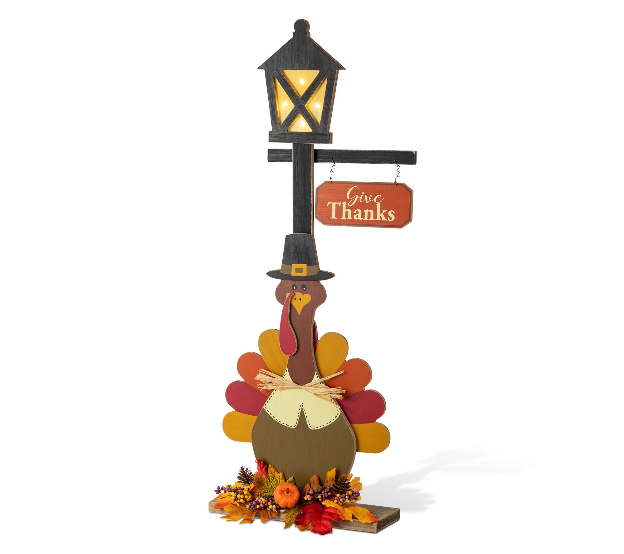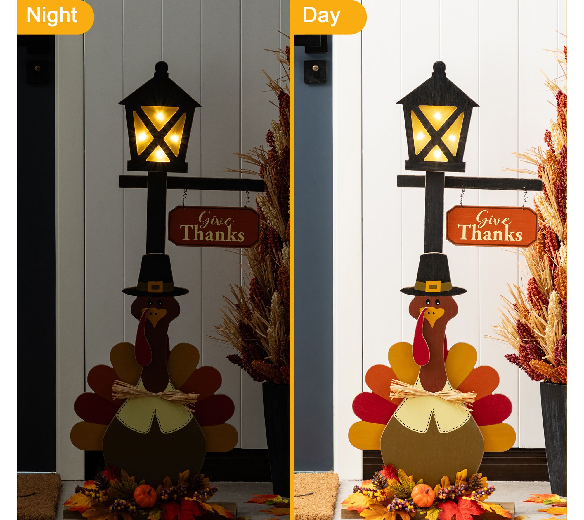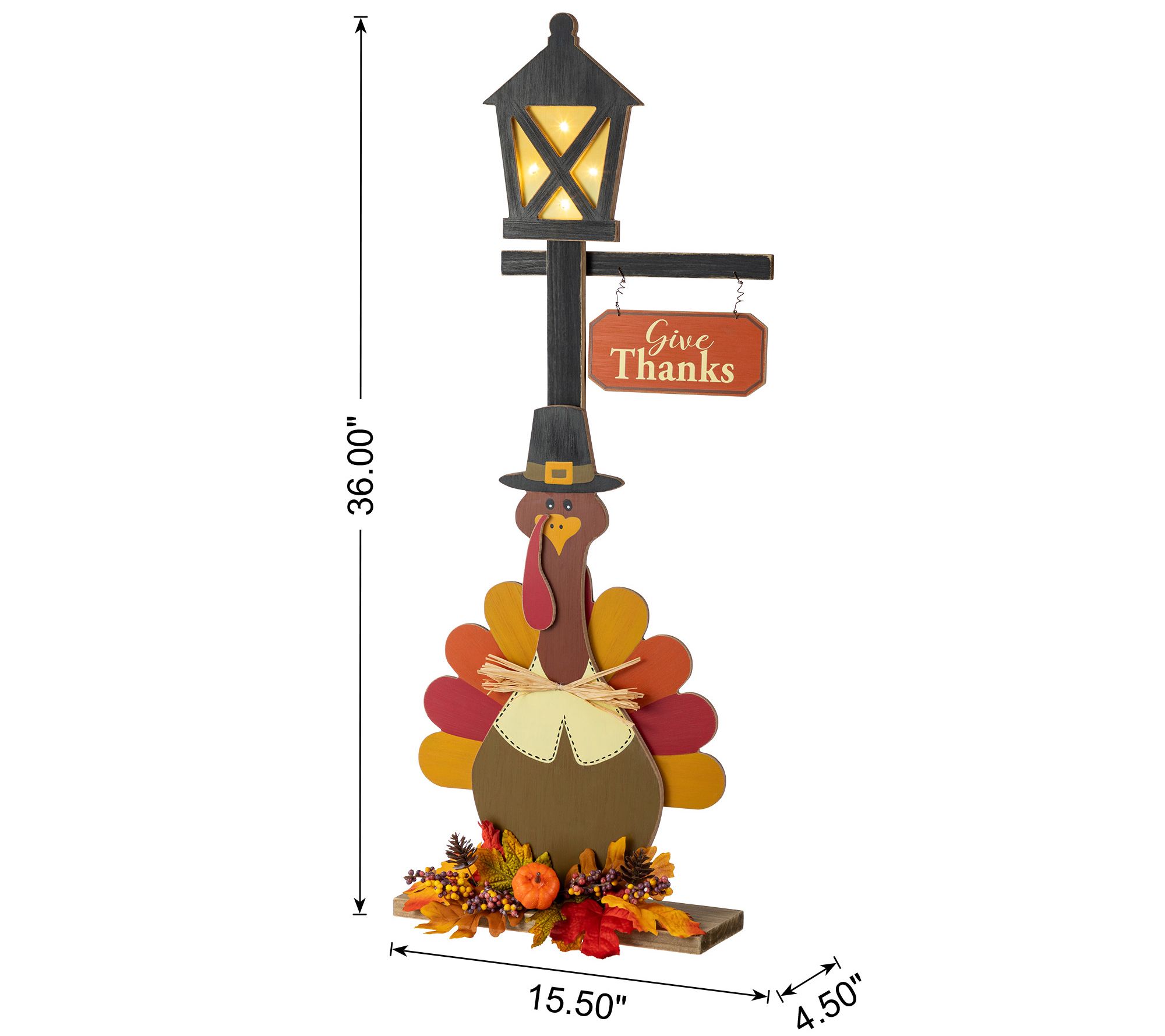 Glitzhome 36"H Thanksgiving LED Turkey Lamp Post Porch Decor