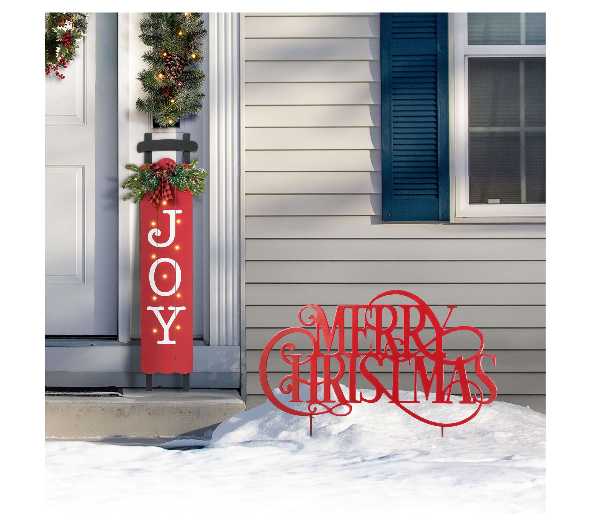 Spruce up your outdoor space this holiday season with a bold statement piece that welcomes warmth and cheer. This garden stake, with its elegant "MERRY CHRISTMAS" lettering, is crafted from high-quality metal, adding a touch of festive flair wherever it's placed. Whether used in the yard or as wall decor, it's a versatile way to spread joy. Celebrate the spirit of Christmas by showcasing this charming decor and delight neighbors and guests alike. From Glitzhome.