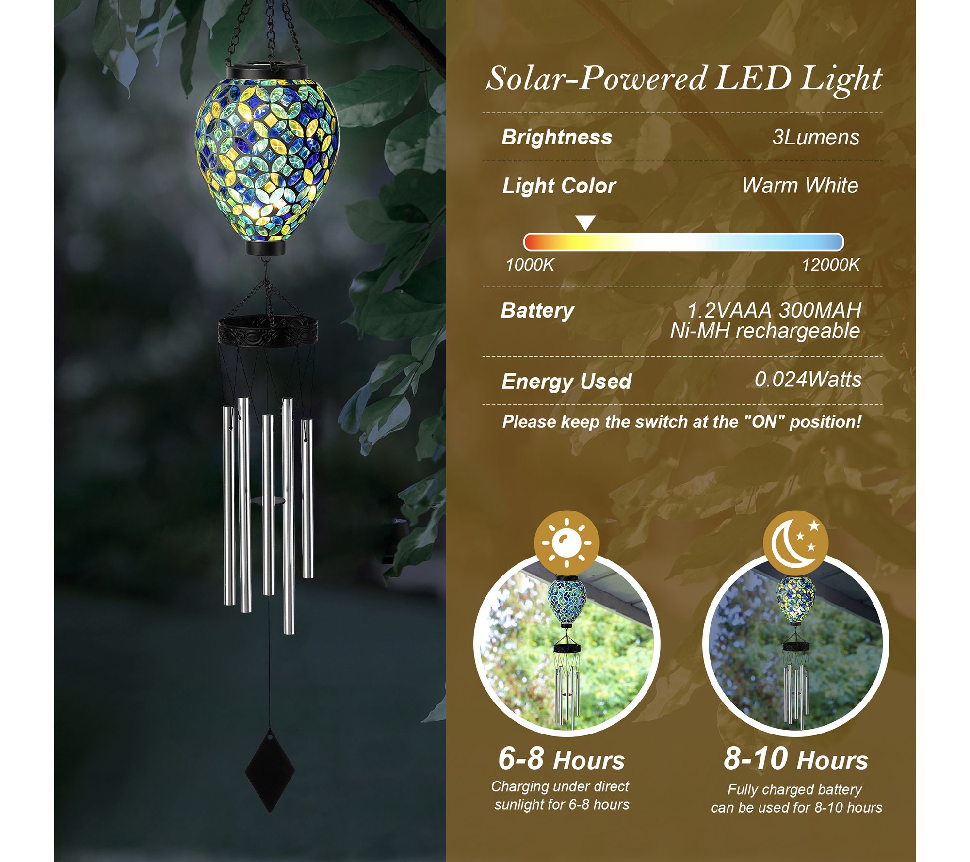 • Includes solar-powered windchime and AA 300mAh Ni-MH rechargeable battery