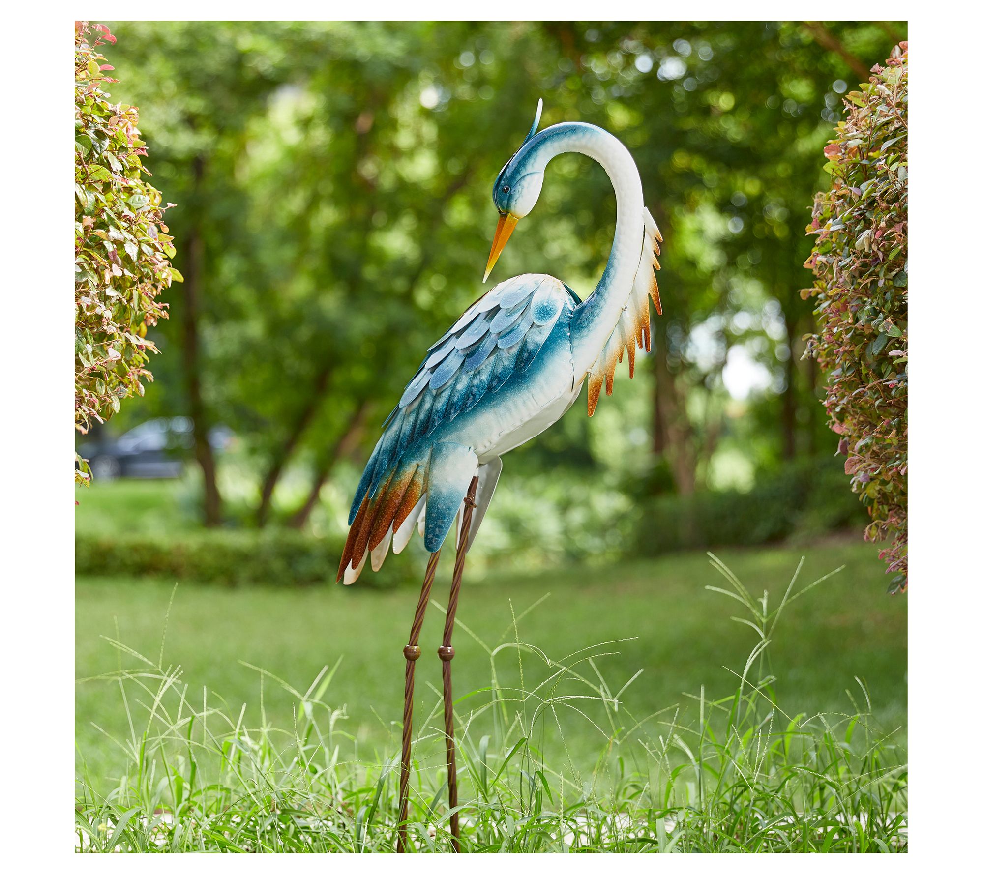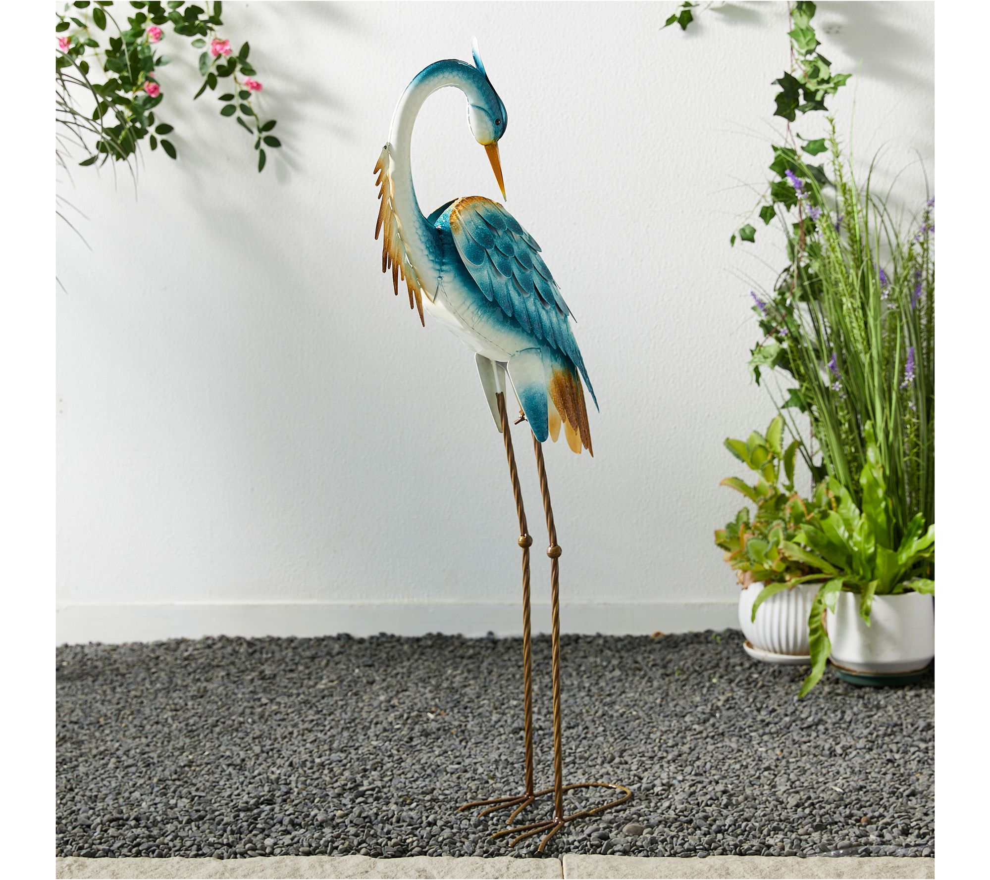 Glitzhome 39" Metal Standing Crane Garden Statue with Stakes