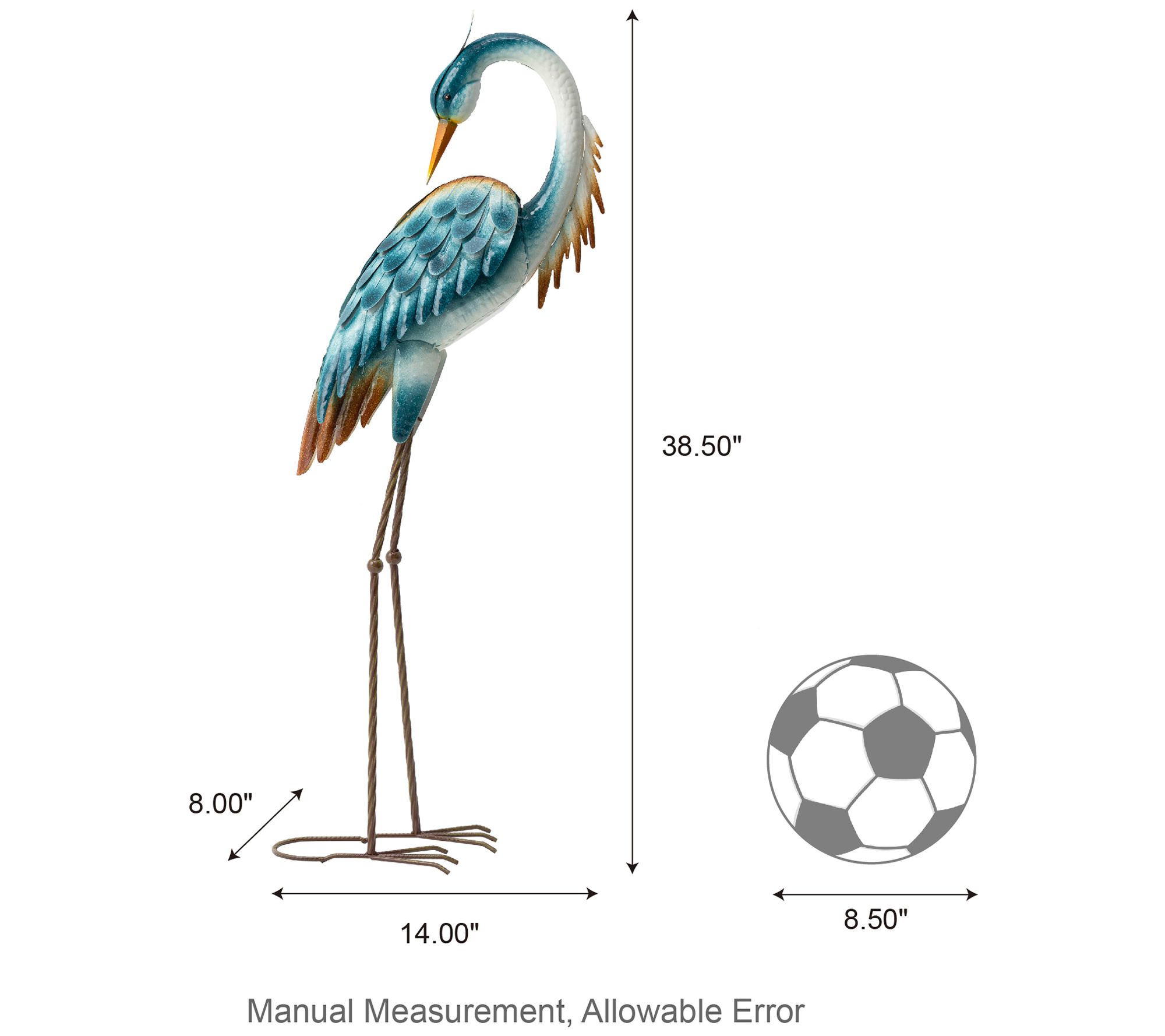 Elevate your garden or patio with this stylish 39" metal standing crane statue. Carefully crafted with vibrant colors and lifelike 3D details, it adds a touch of whimsy and natural charm to any outdoor space. Perfect for diverse decors, this crane statue promises to be a delightful centerpiece. From Glitzhome.