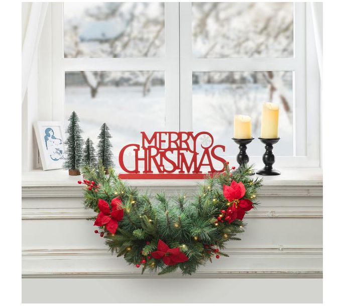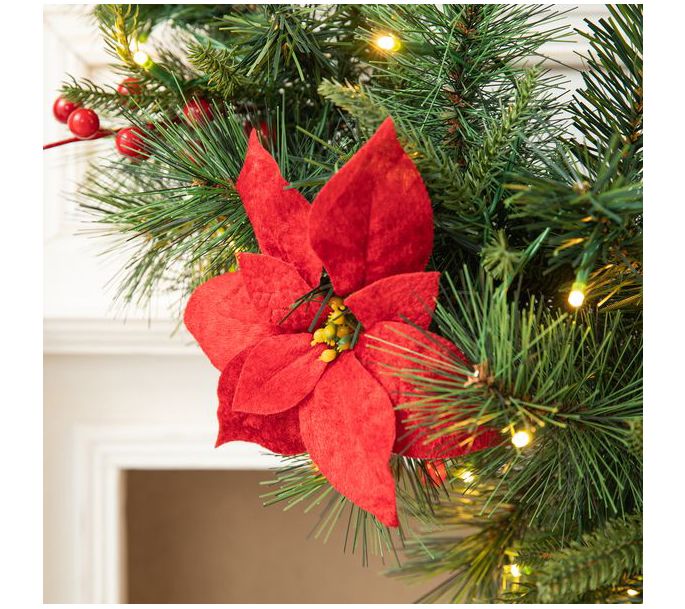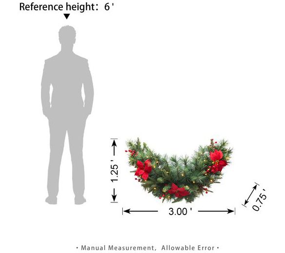 Glitzhome 3ft Pre-Lit Poinsettia Christmas Swag, with Timer