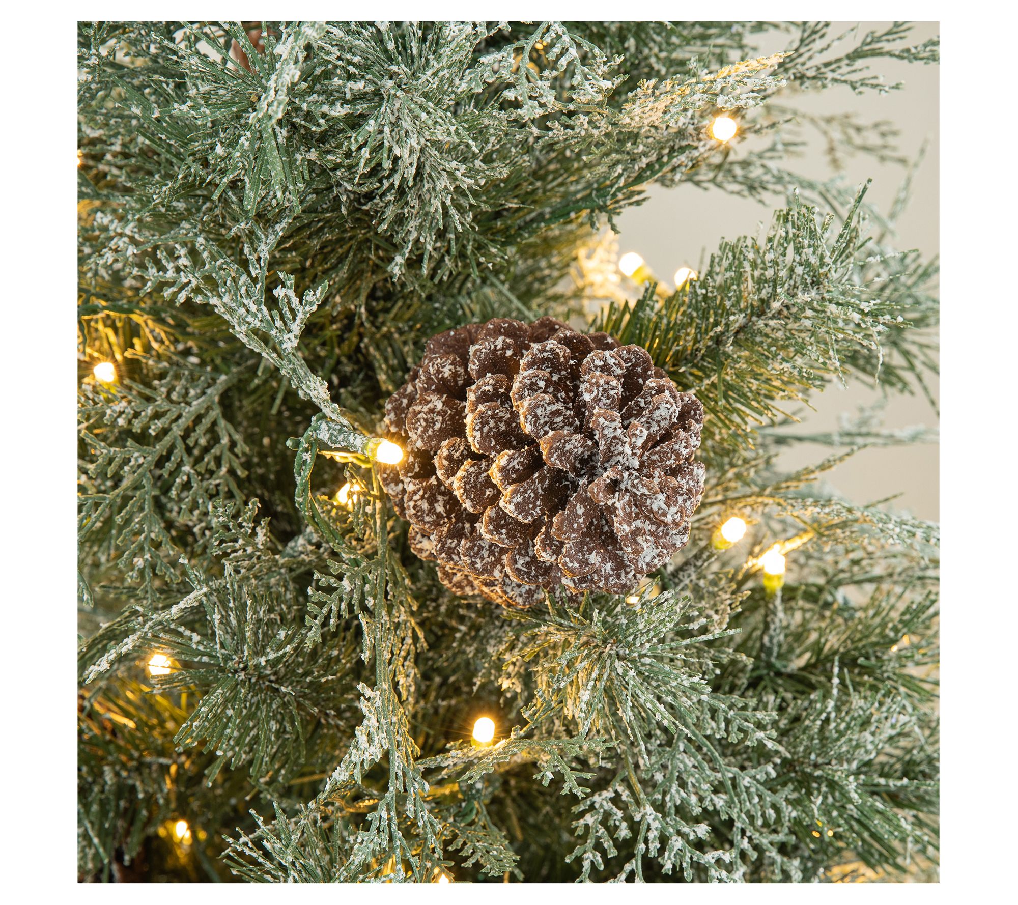 Embrace the beauty of winter with this artificial tree, showcasing snow-kissed branches, pinecones, poinsettias, and warm white lights that add a cozy glow to your holidays. From Glitzhome.