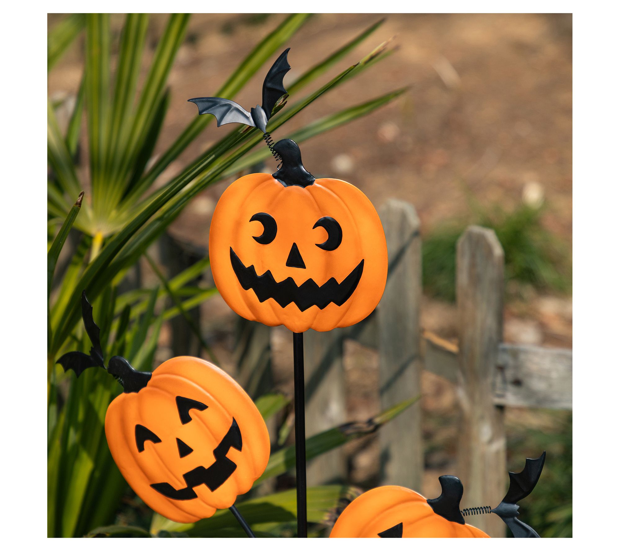 Brighten up your walkway or garden beds with a playful nod to Halloween -- this festive metal stake brings the spirit of the season right to your yard. With every breeze, whimsical spring bats seem to flutter around three grinning pumpkins, creating a lively scene that invites smiles from trick-or-treaters and guests alike. Installation is simple, so decorating for your holiday gatherings is a breeze. From Glitzhome.