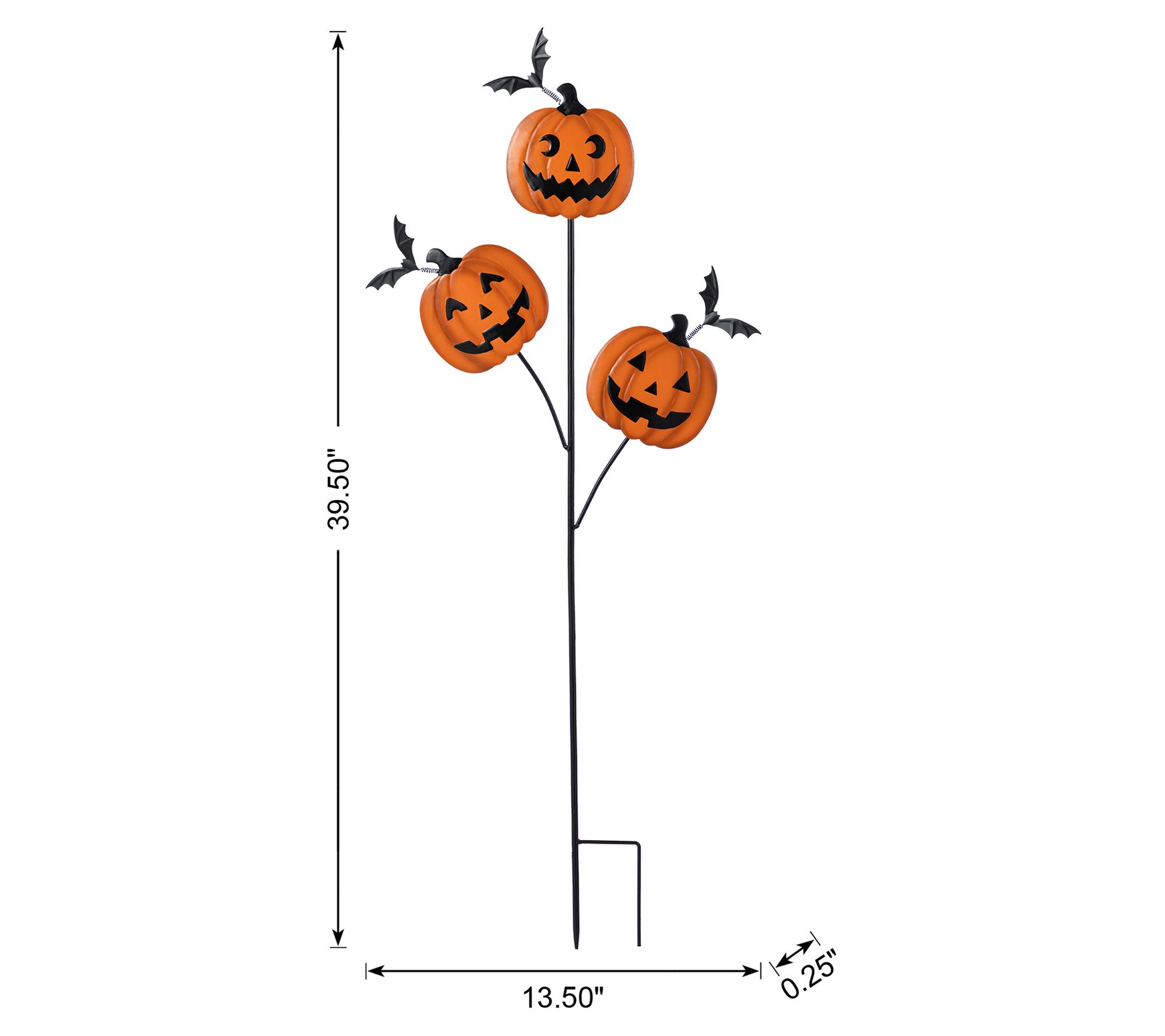 • Features three pumpkins with carved faces and spring bats
