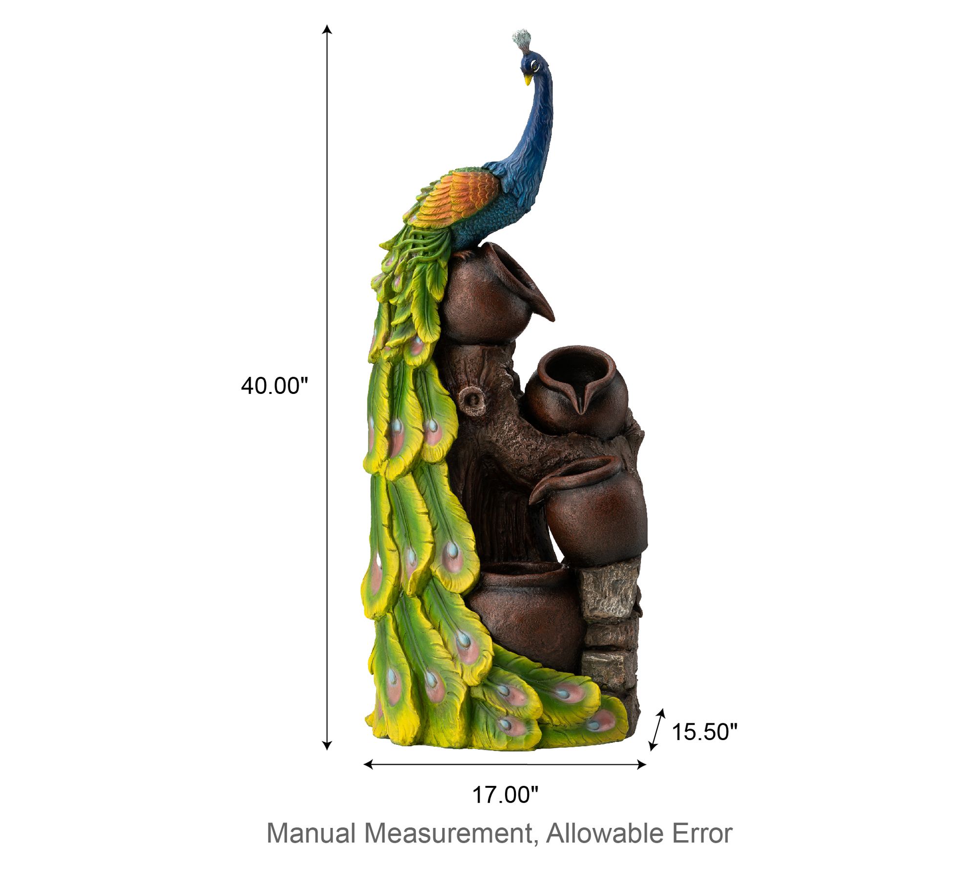 Glitzhome 40"H LED Lit 4-Tiered Peacock OutdoorFountain