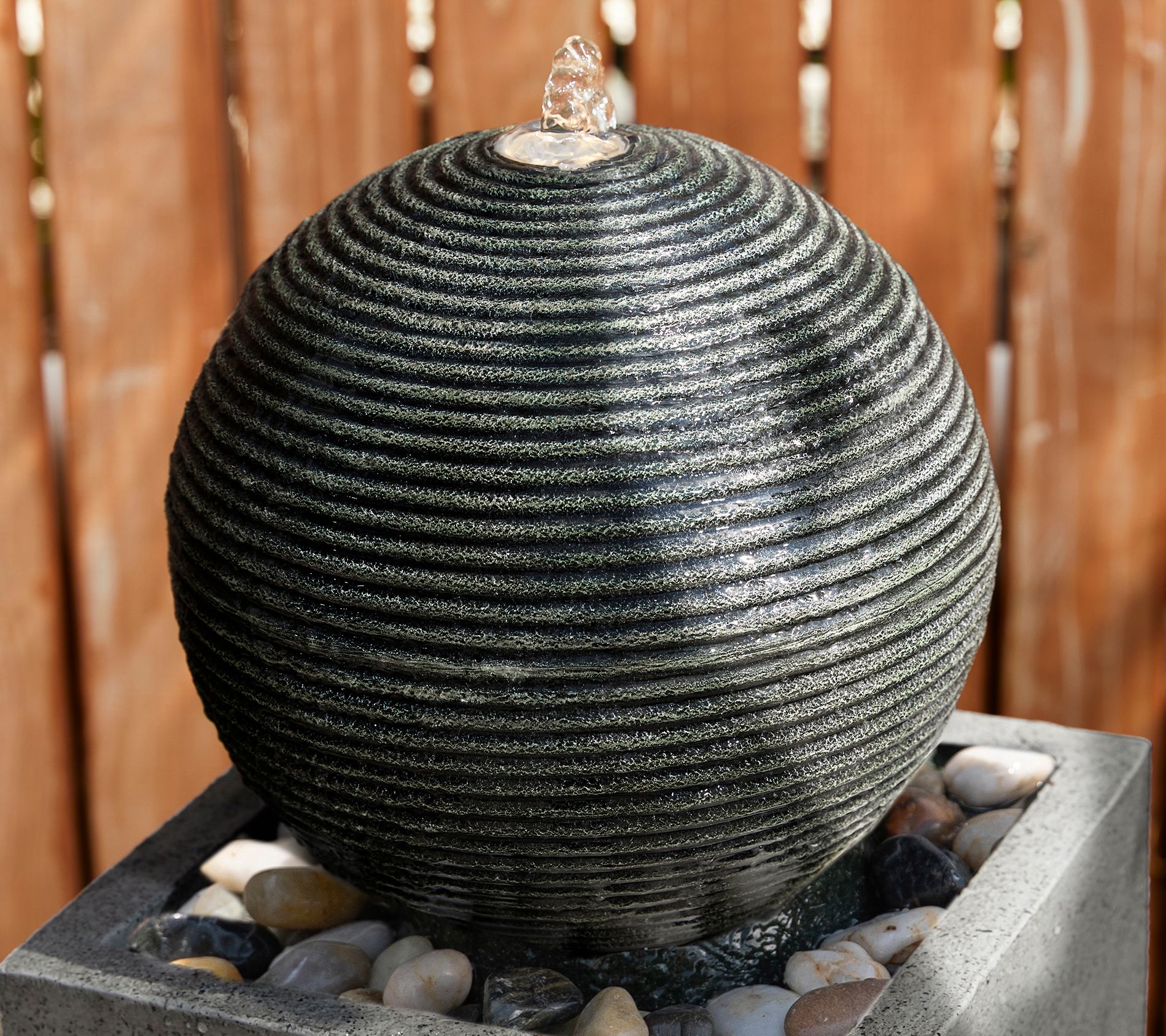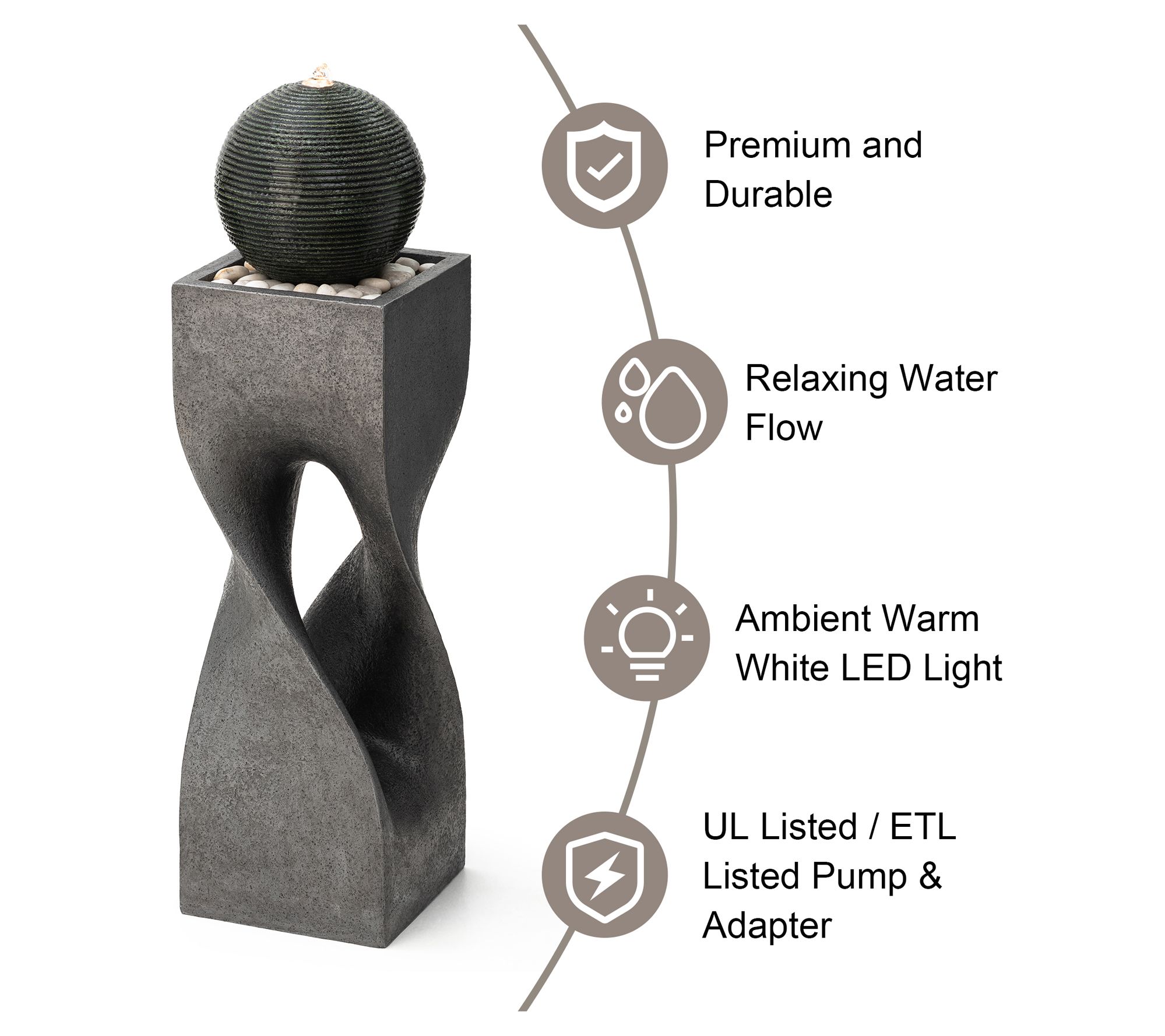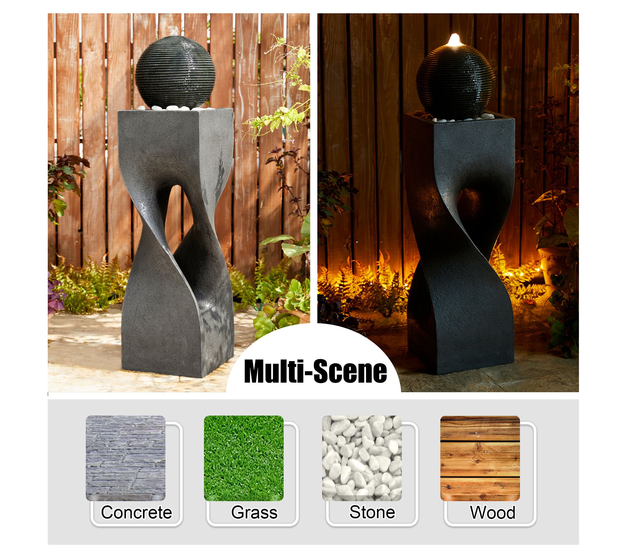 Transform your outdoor space into a tranquil retreat with this modern geometric fountain. The sculptural design creates an artistic landscape, while the soothing sound of cascading water offers a relaxing atmosphere. The LED light highlights the rippling water, adding a warm glow to your garden or patio. Simply add water, plug it in, and enjoy the serene ambiance. From Glitzhome.