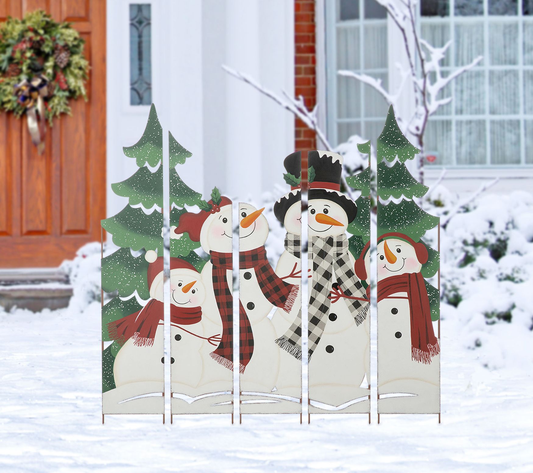 From your family to theirs, this snowman family combo yard stake welcomes guests to your home with lots of holiday cheer! From Glitzhome.