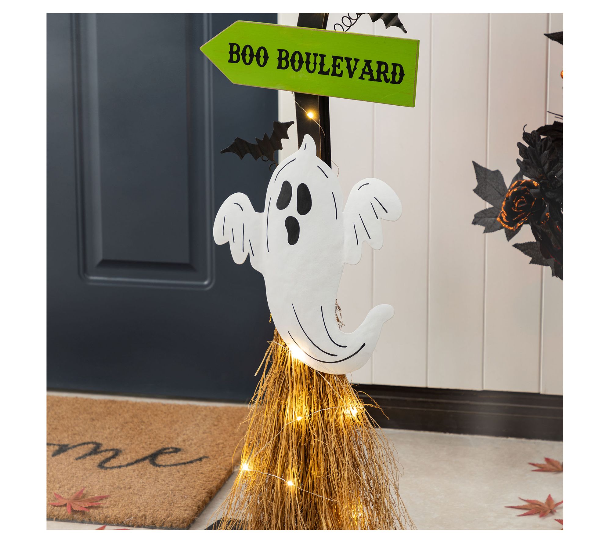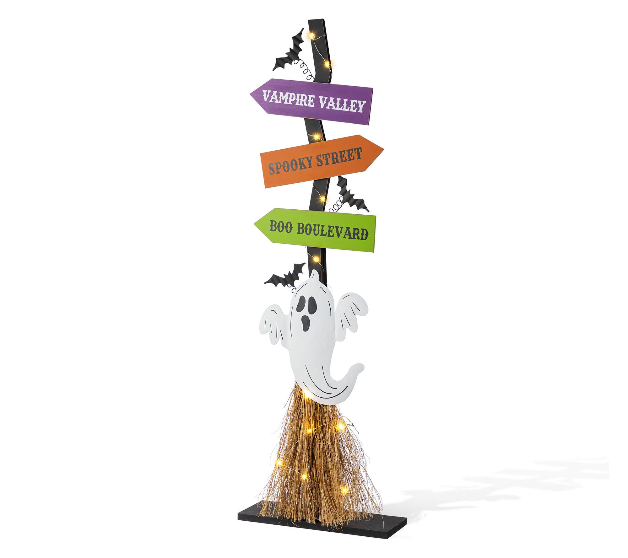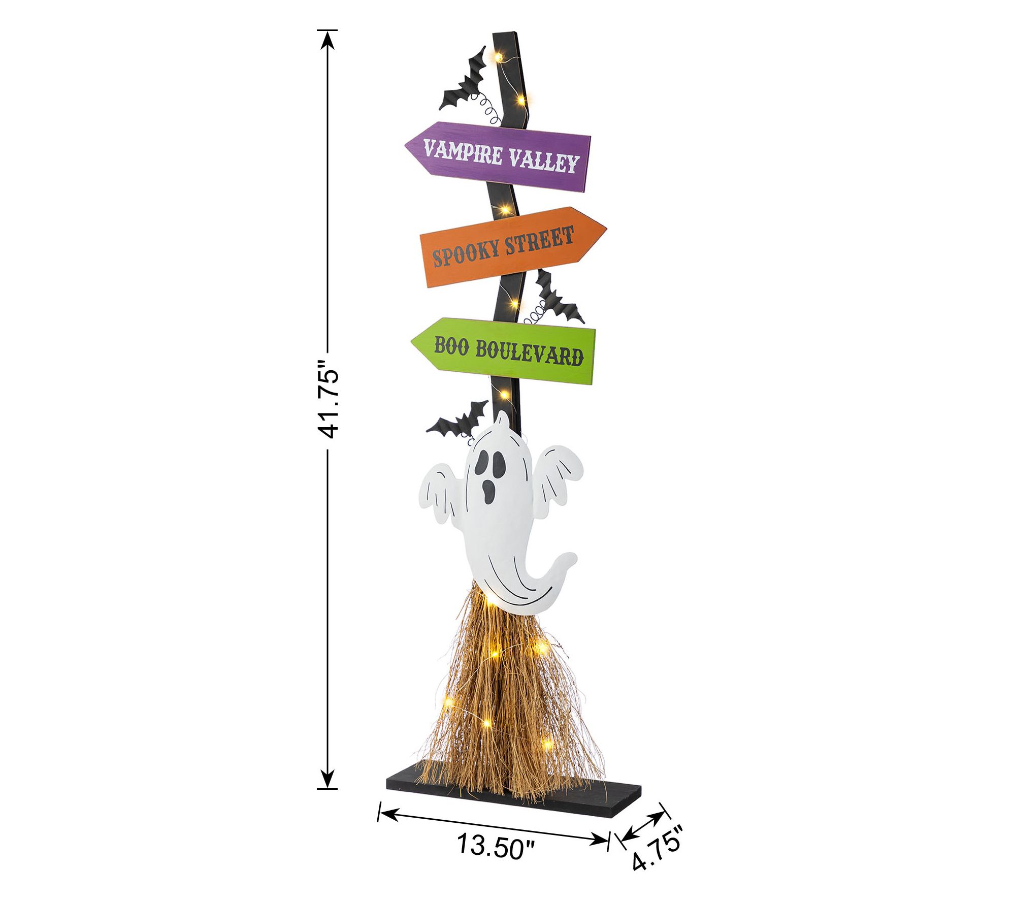 Glitzhome 42" LED Lighted Ghosts Broom Porch Sign w/ Timer