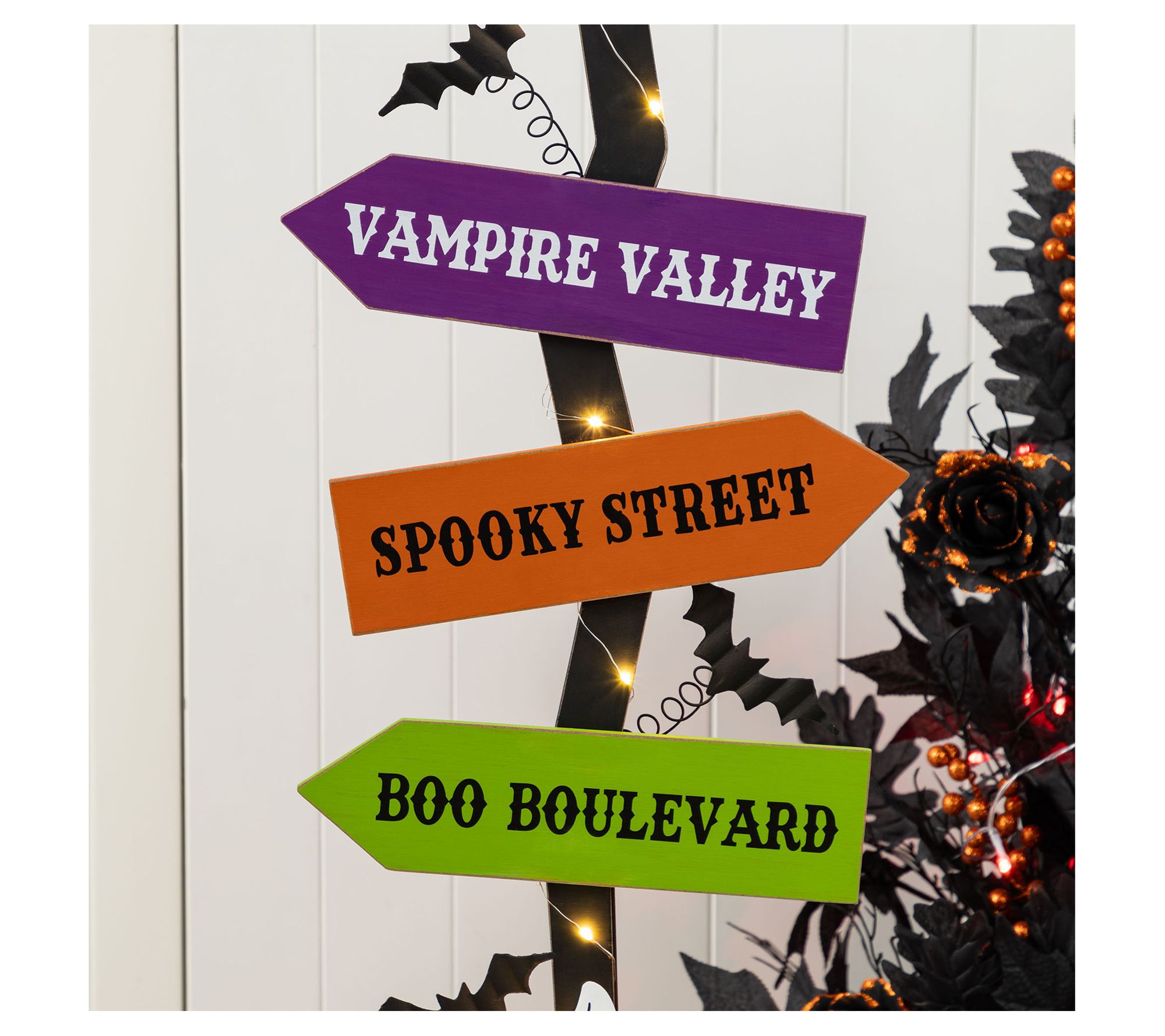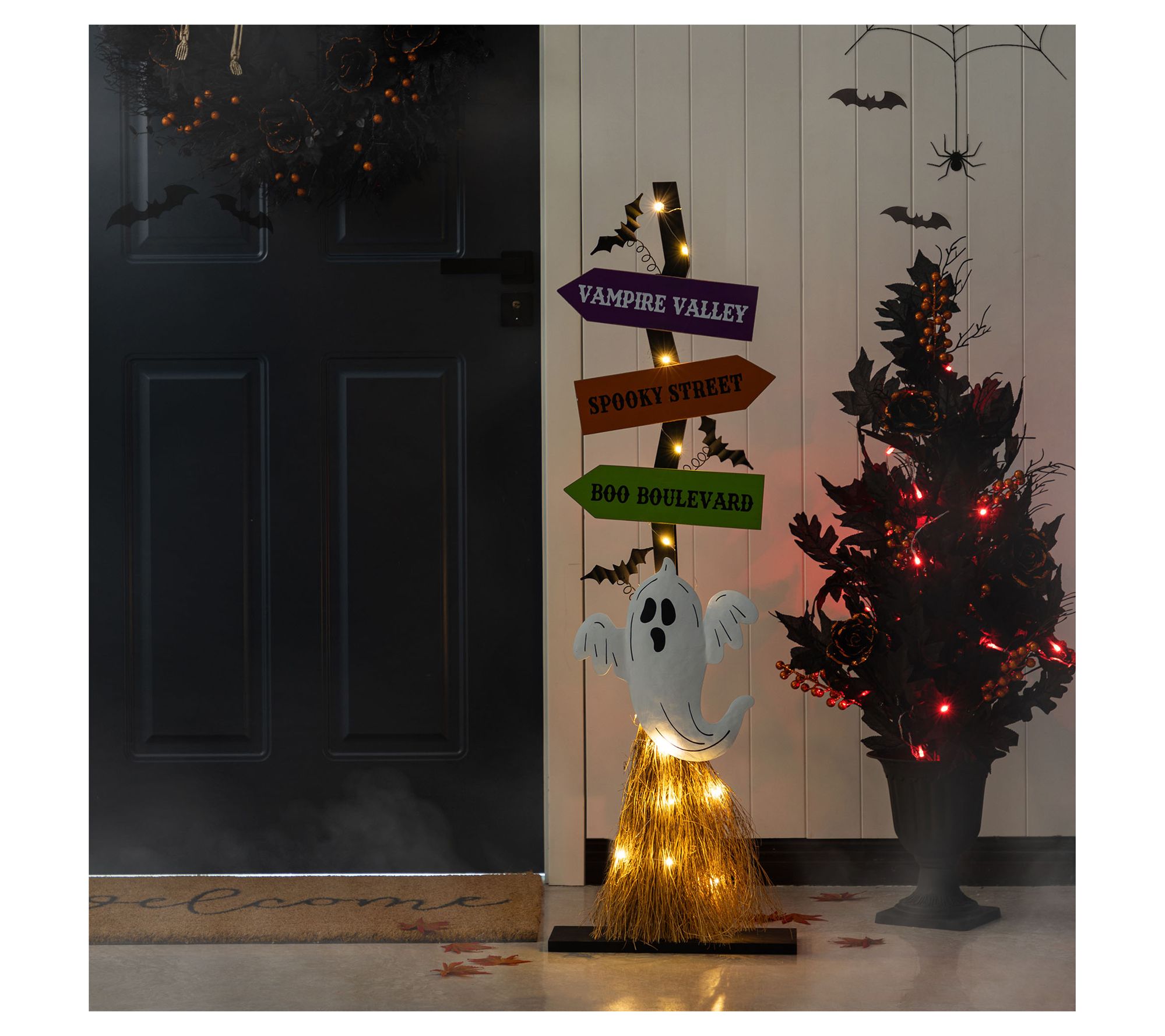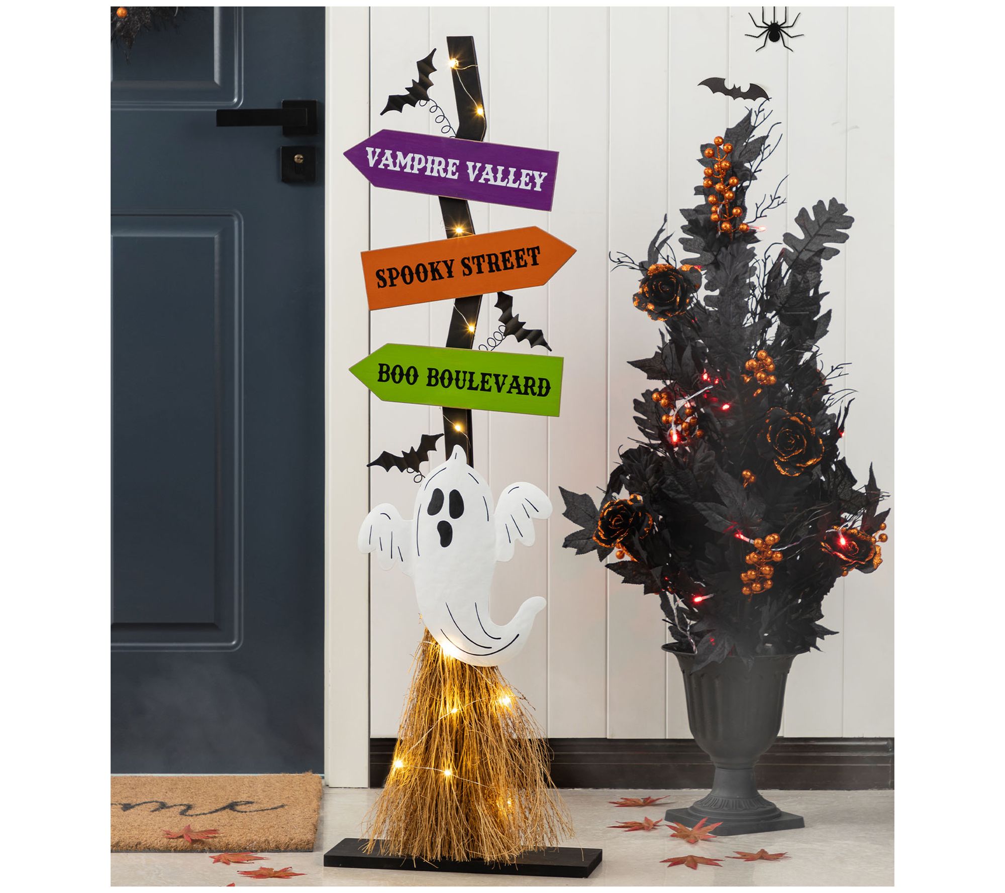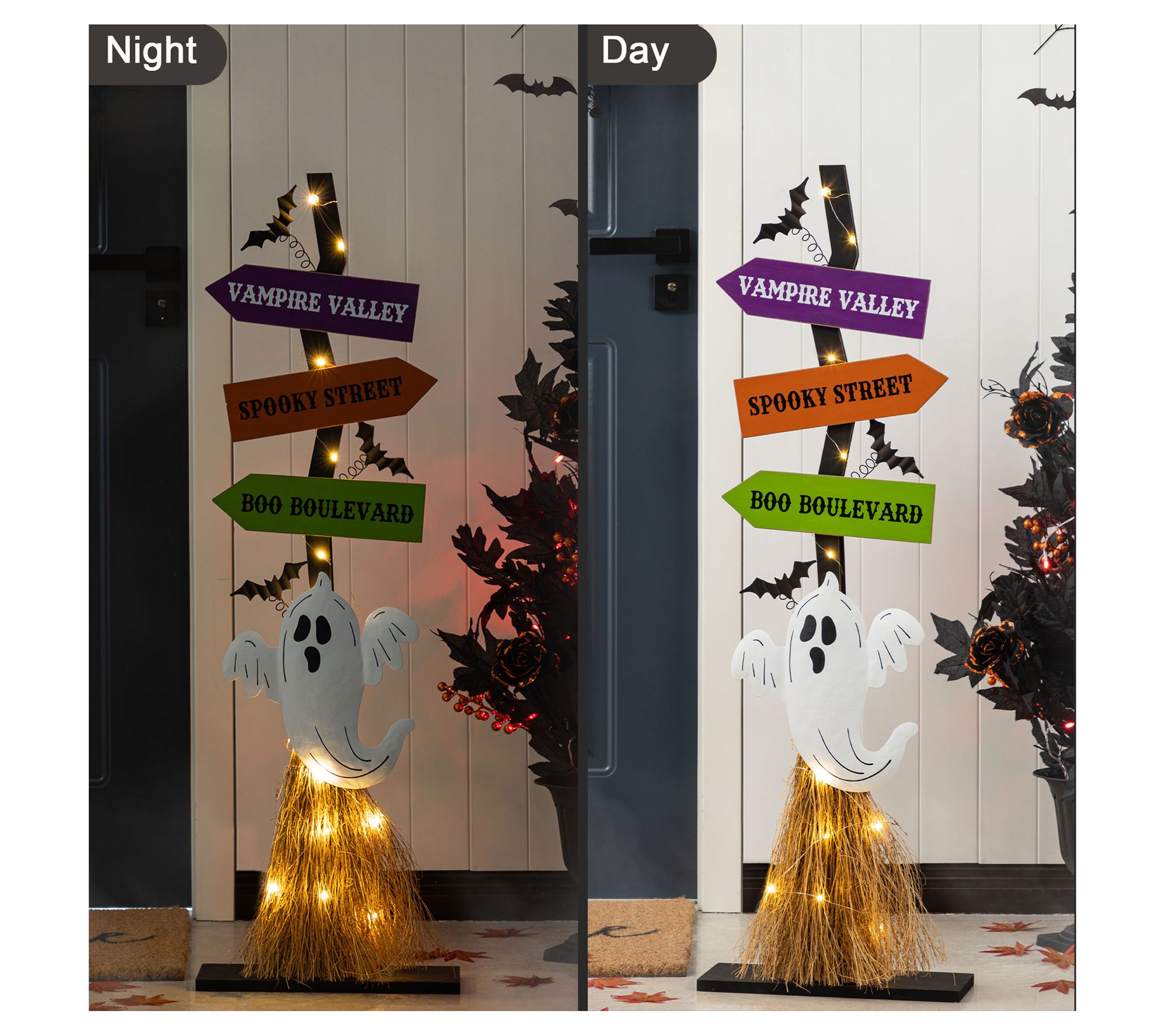 Glitzhome 42" LED Lighted Ghosts Broom Porch Sign w/ Timer