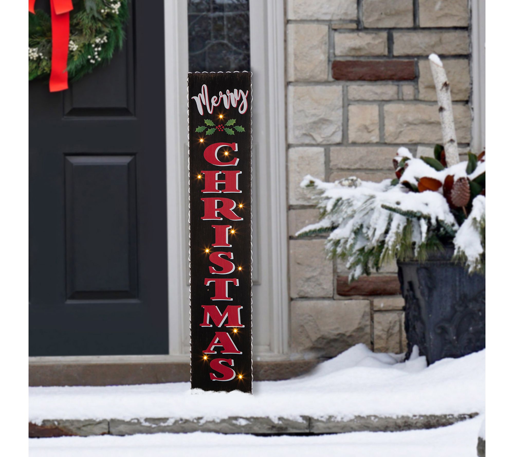 Send warm, holiday wishes to your neighbors and guests with this brightly-lit Merry Christmas porch sign. From Glitzhome.