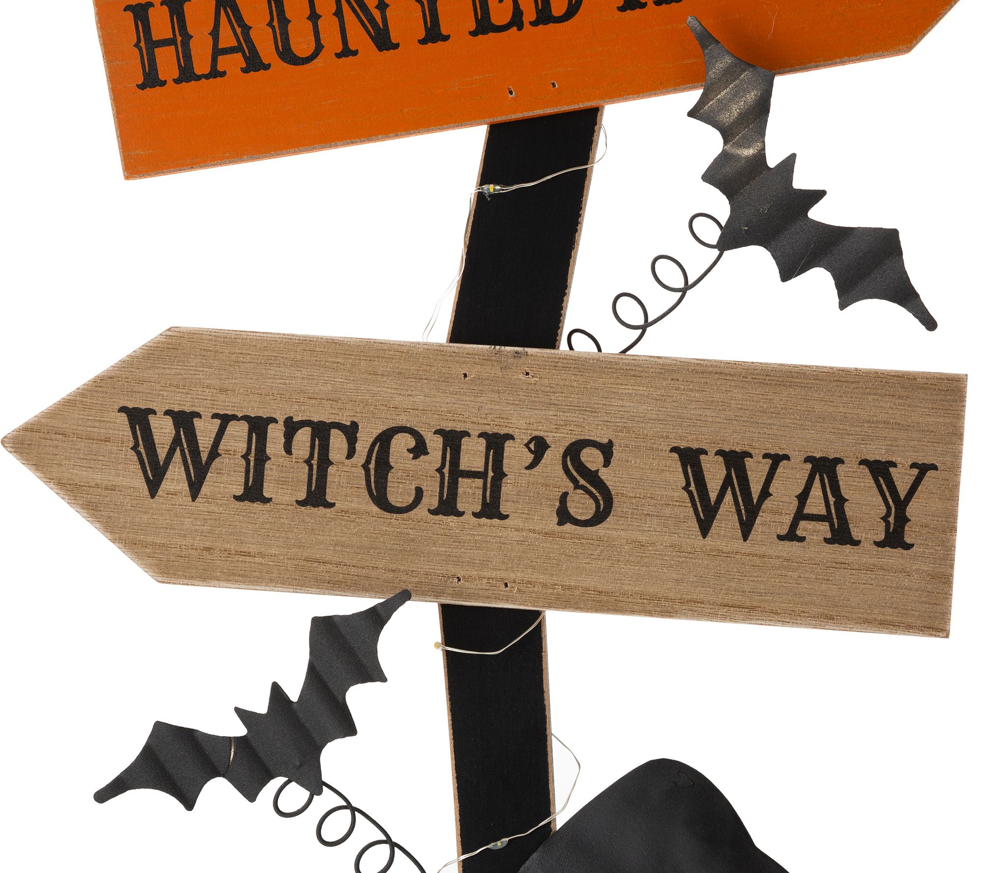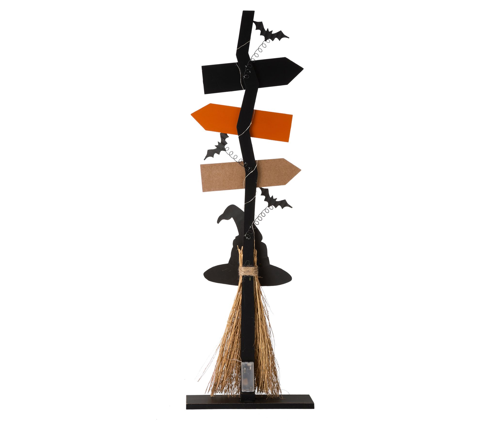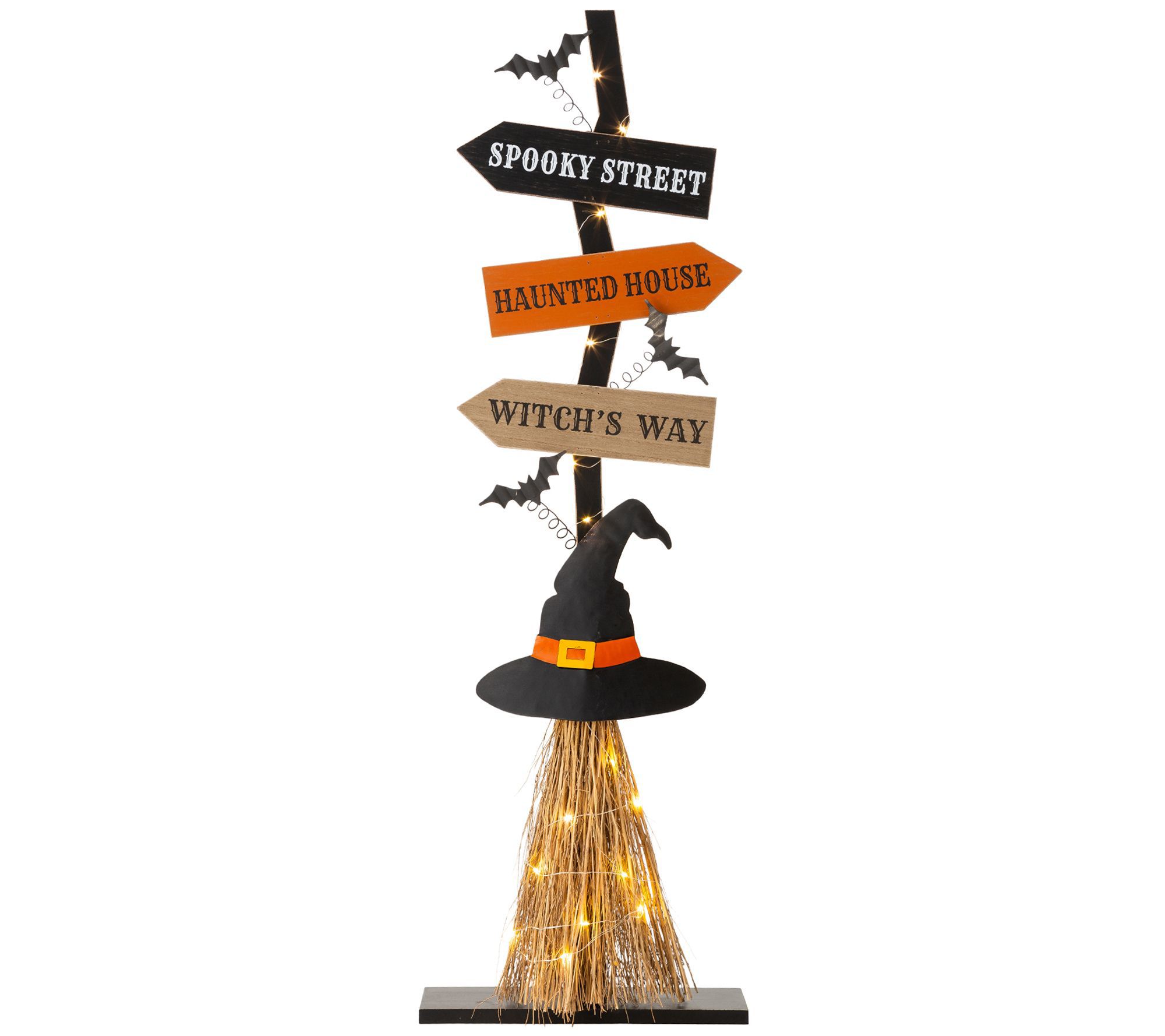 Which way did all those trick or treaters go? This clever witch broom sign will be sure to lead the way, complete with warm LEDs to light it up at night for added enjoyment. From Glitzhome.