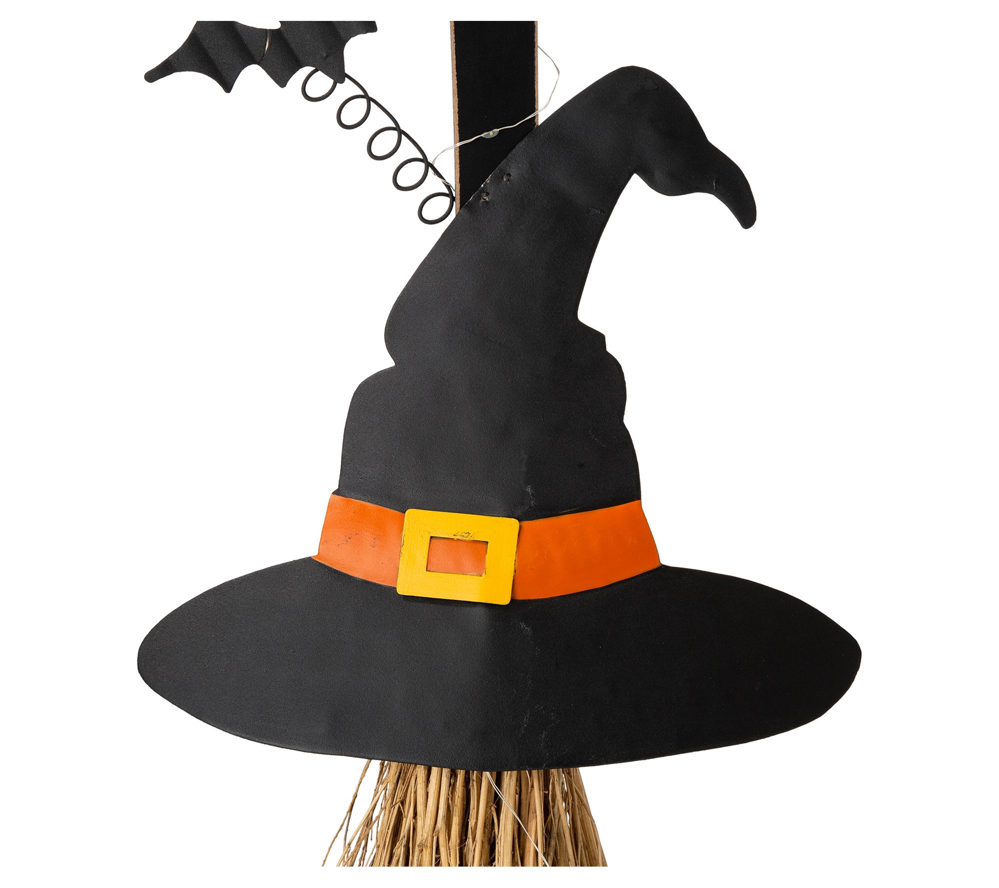 Glitzhome 42"H Lighted Wooden Witch's Broom Porch Decor