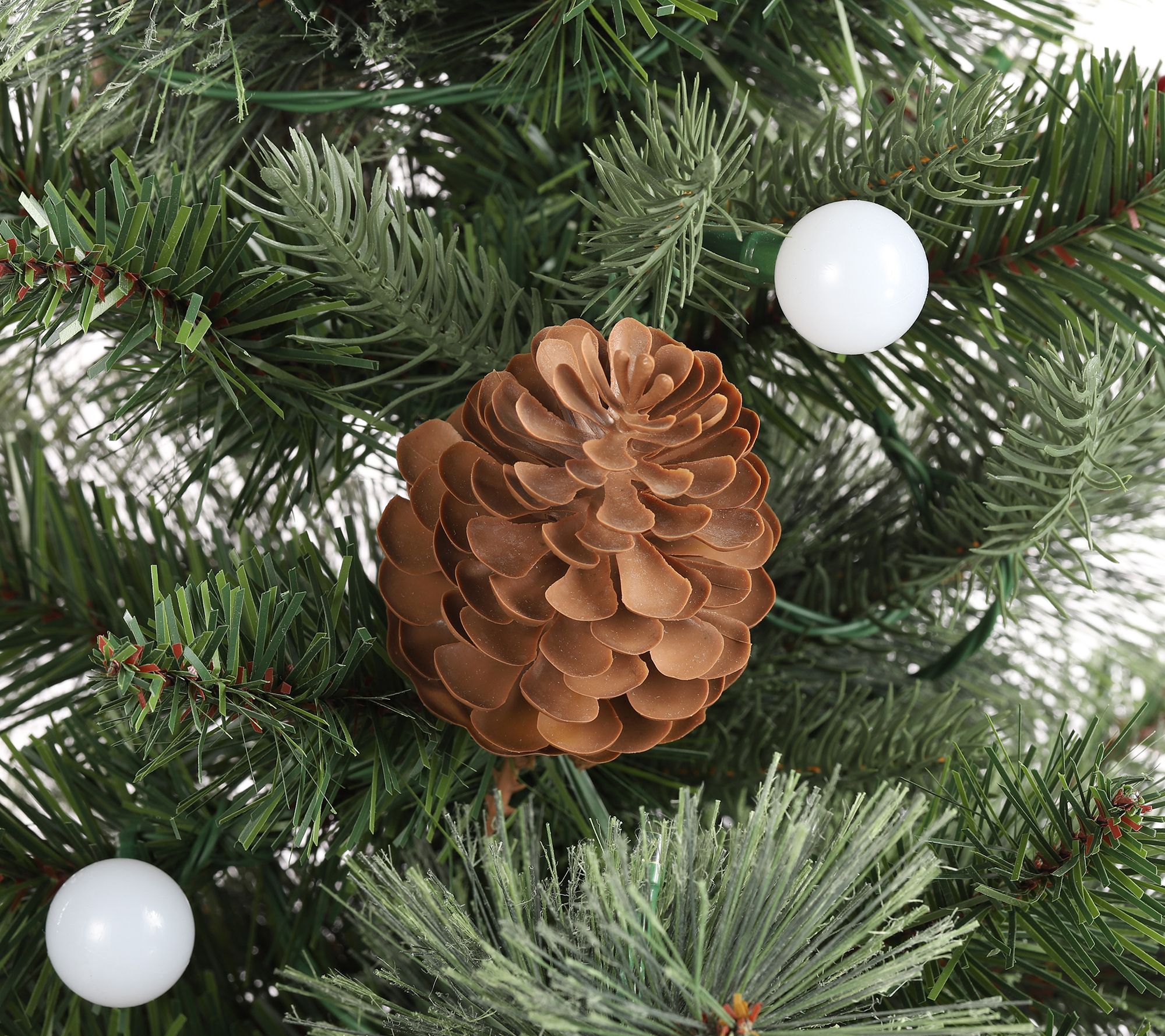 • Prelit with 75 warm white LED lights, including 18 globe LEDs