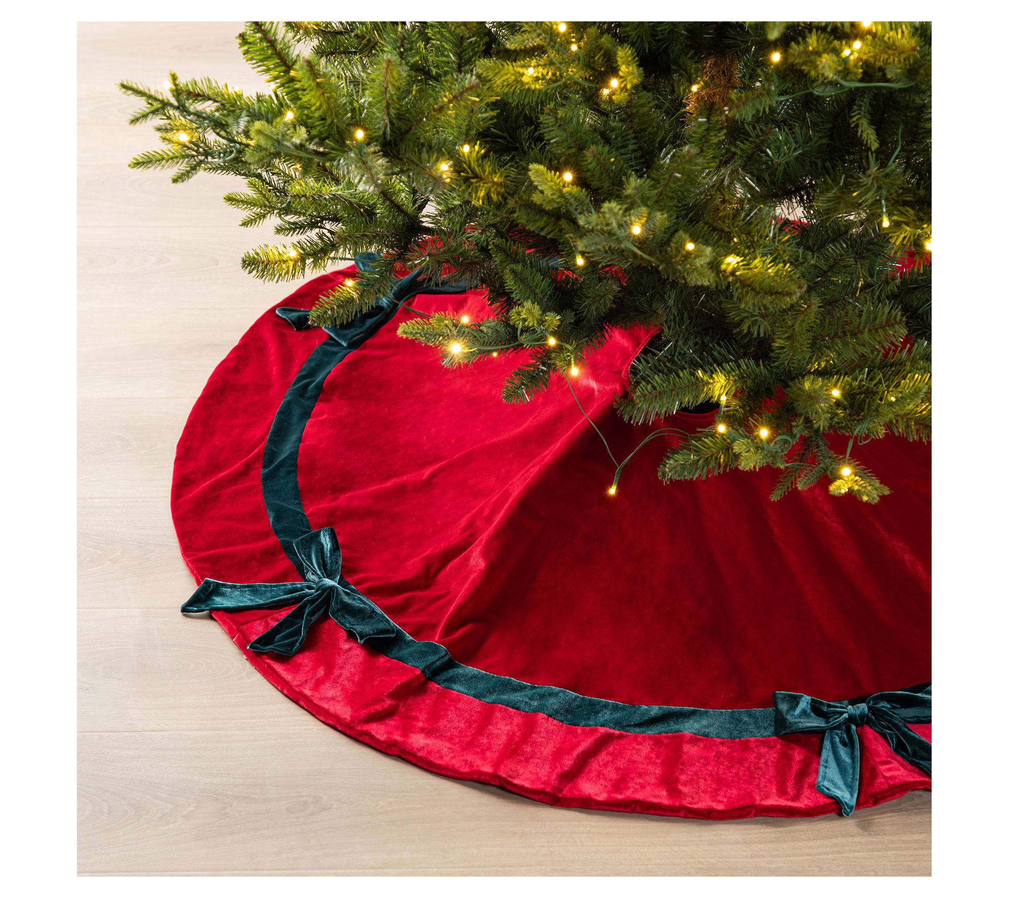 A Christmas tree skirt with plush red velvet and crisp satin bows sets the scene for cozy gatherings and festive moments. Style your tree with this classic accent, soft to the touch and thoughtfully detailed for those favorite traditions and presents piled high. From Glitzhome.