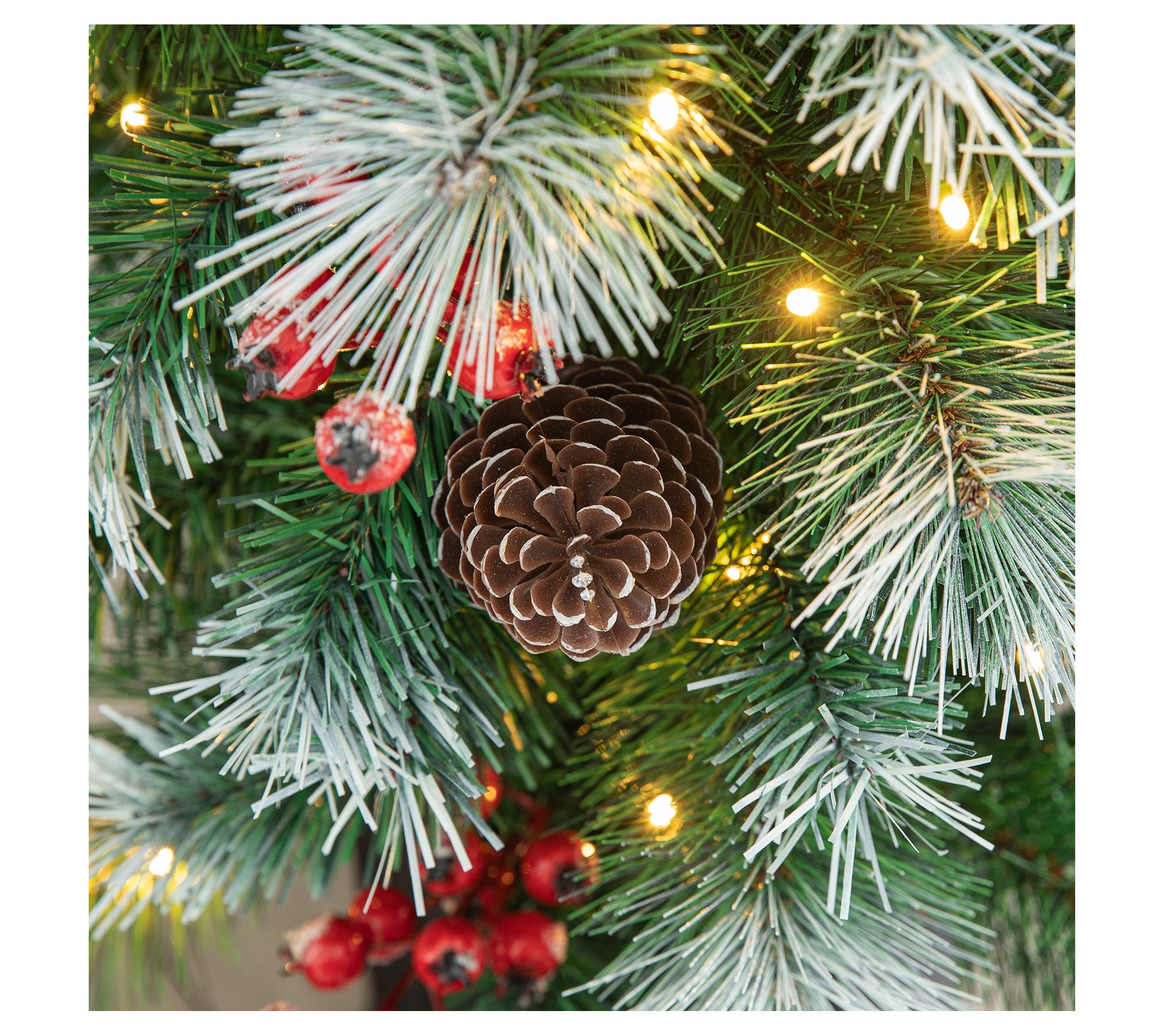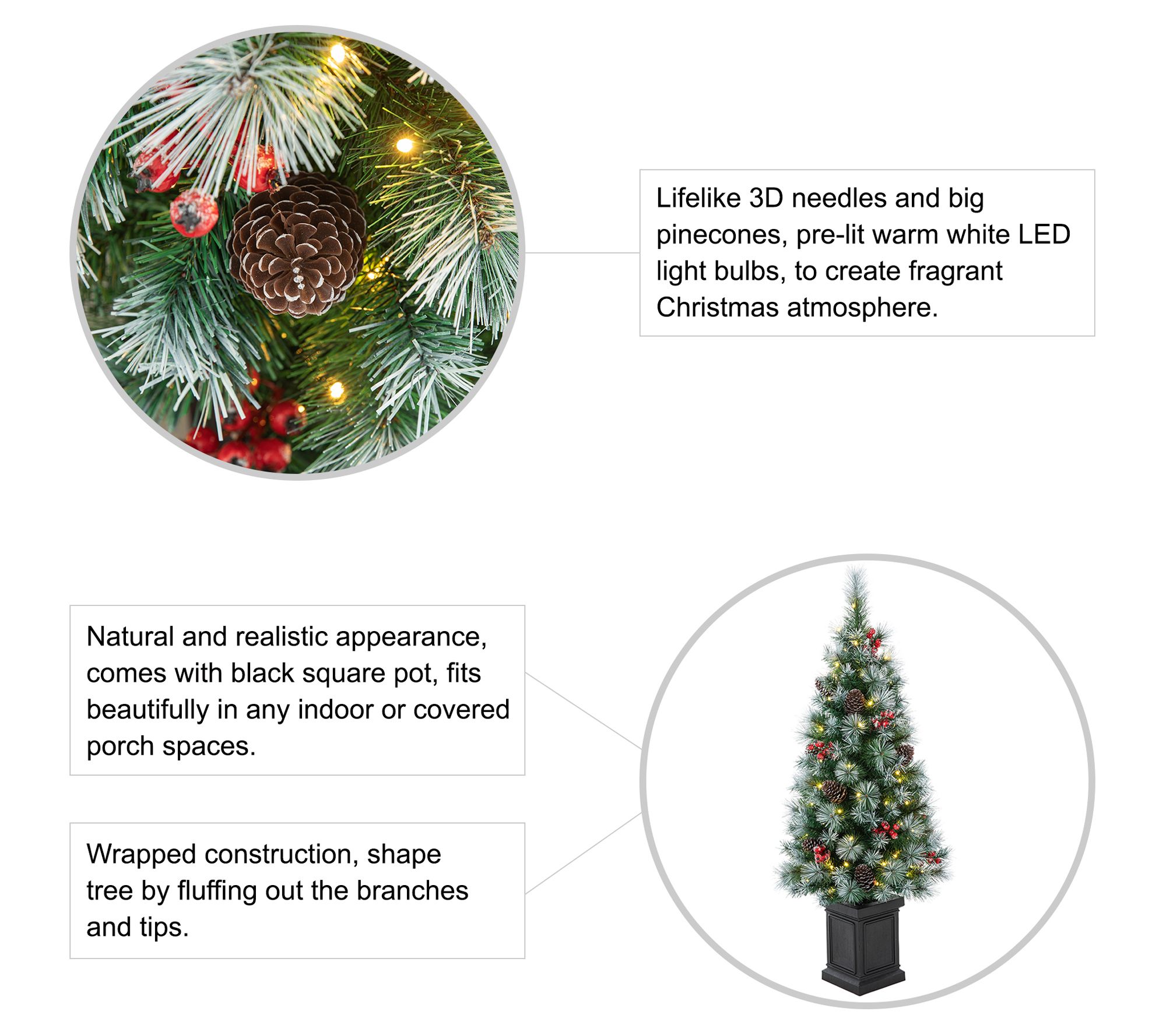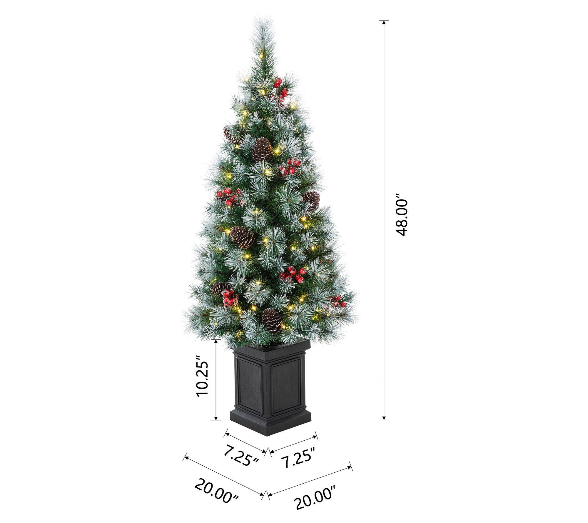 A welcoming addition to your doorway, deck, porch, or patio, this 4'H artificial Christmas porch tree features faux snow-sprinkled branches trimmed with red berries and pinecones. From Glitzhome.