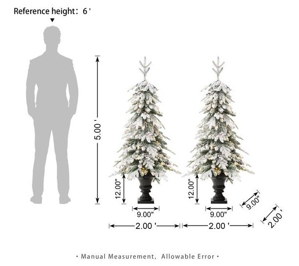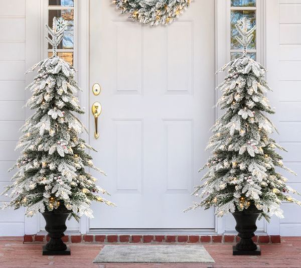 Glitzhome 5' Pre-Lit Flocked Faux Christmas Porch Tree S/2