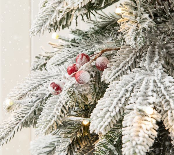 Give your guests a festive greeting with these enchanting artificial porch trees. Each one is covered with glittery flocking and comes pre-lit with warm white LED bulbs. From Glitzhome.