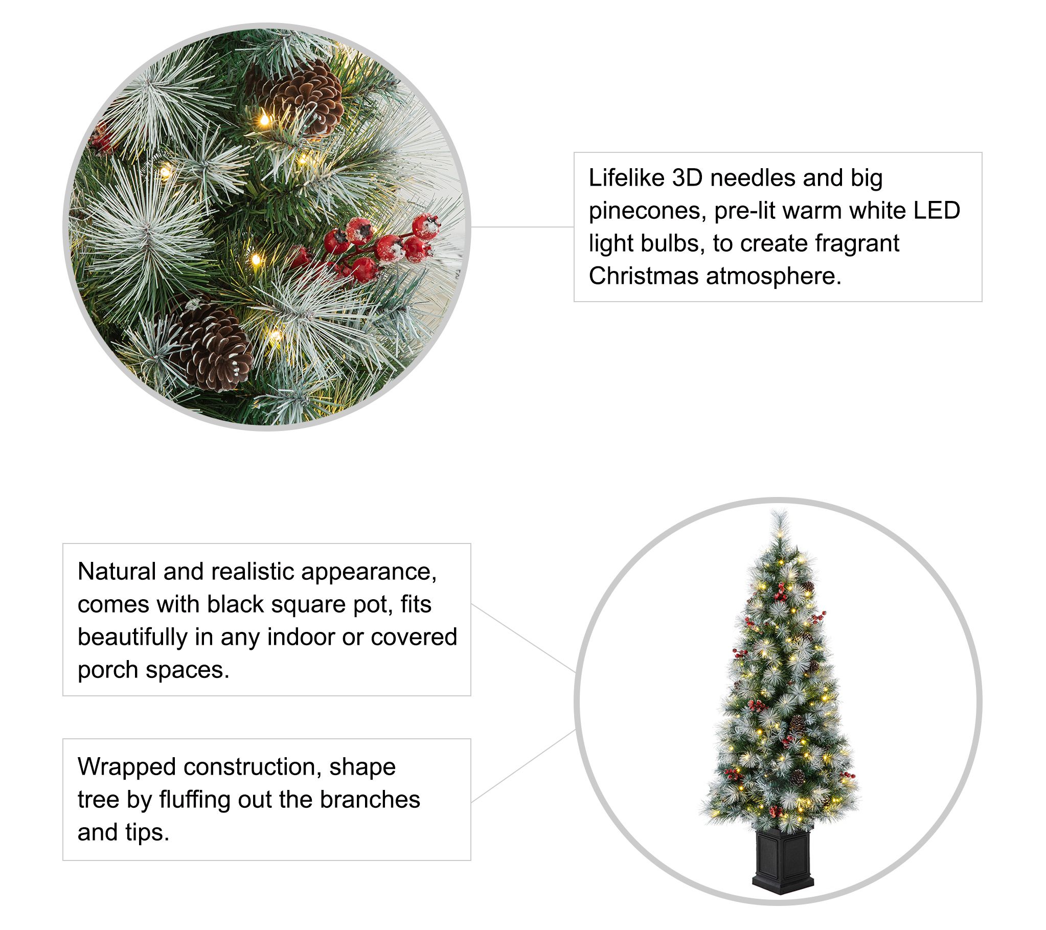 • Lifelike 3D needles and poinsettias