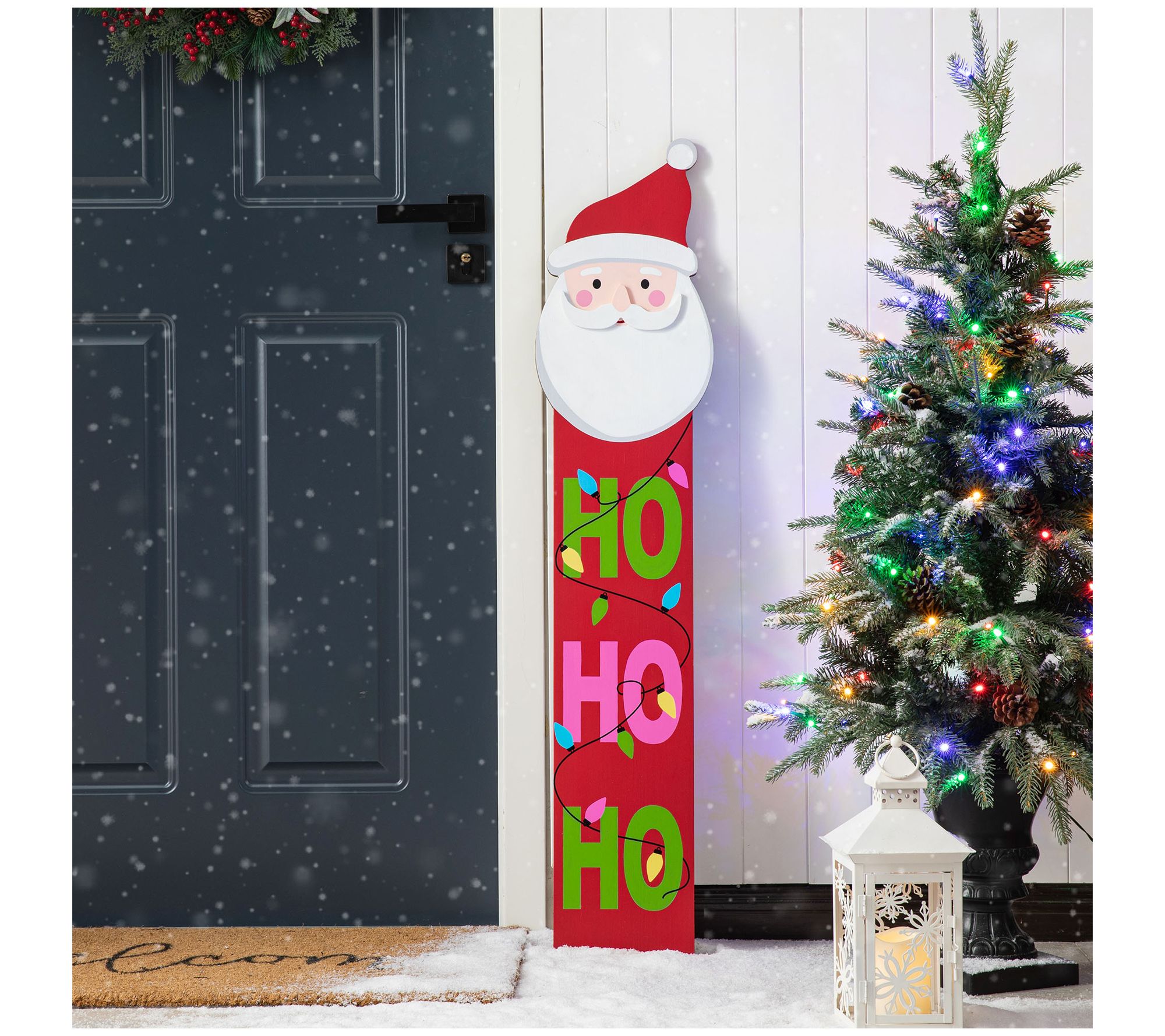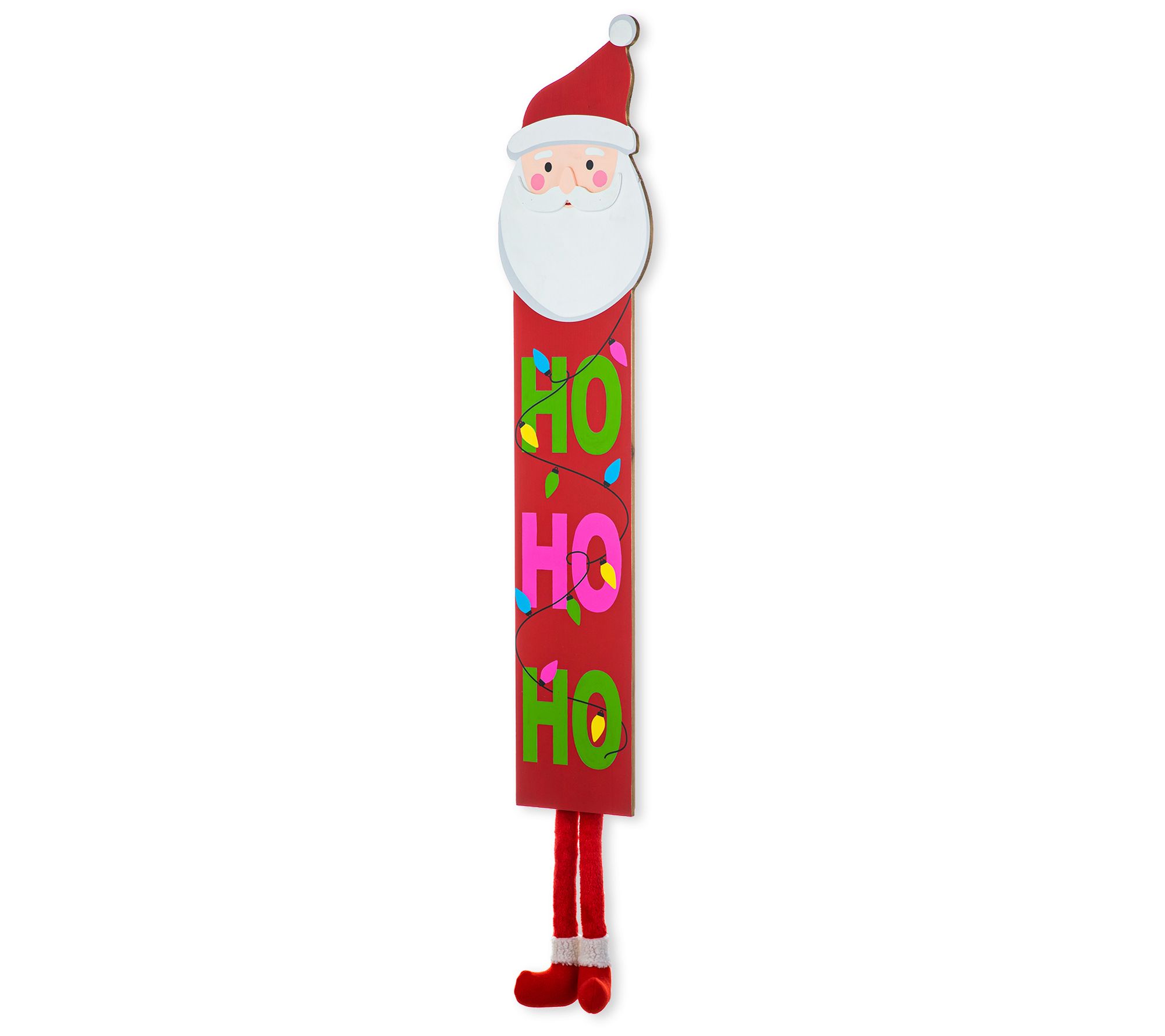 Experience the whimsical charm of this wooden porch sign. It showcases an adorable seasonal character with delicately detachable fabric legs, creating a warm and fairytale-like holiday atmosphere for your family to enjoy. From Glitzhome.