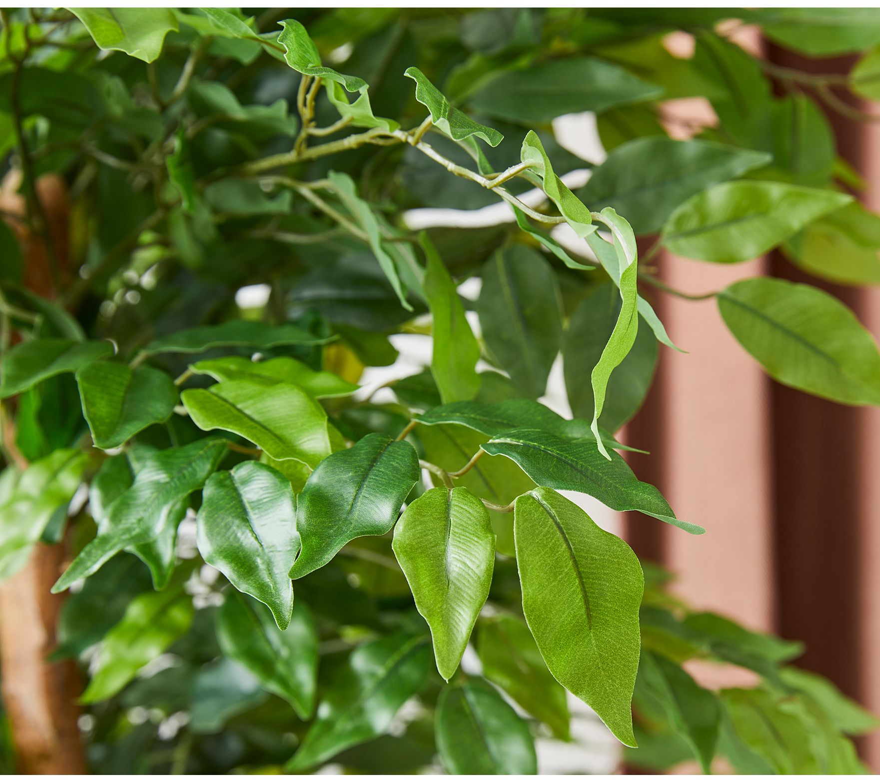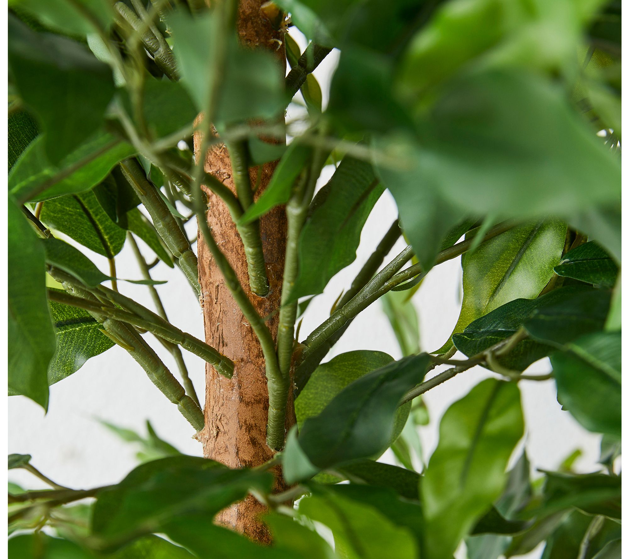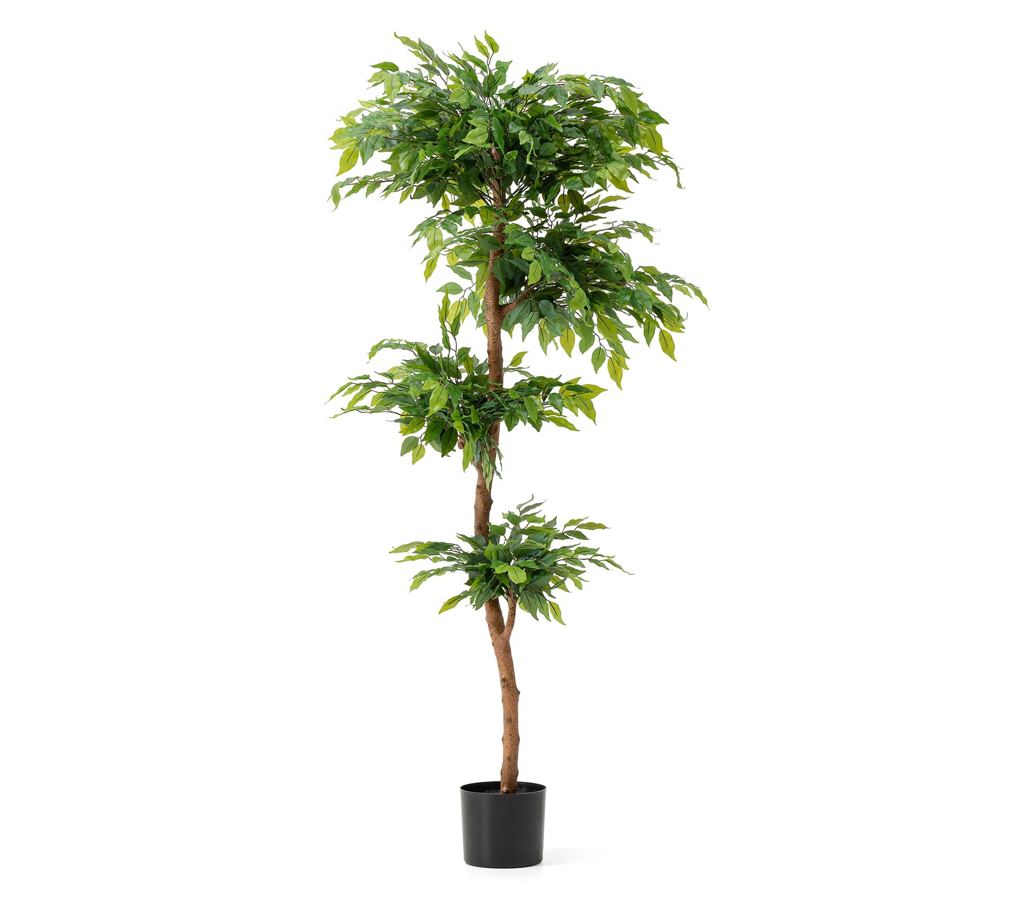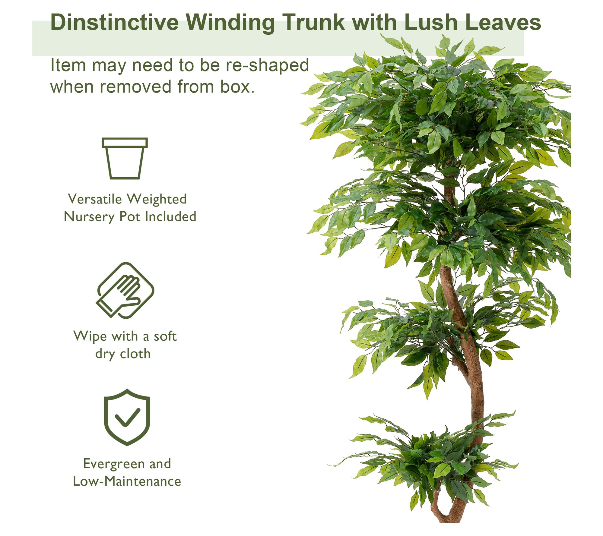 Elevate your indoor space with this vibrant, lifelike ficus tree, adding a touch of natural beauty and green vibes. With a unique winding trunk and lush leaves, it stands ready to enhance any room without the upkeep of a real plant. Whether for your home or office, this faux ficus tree offers a refreshing look year round. From Glitzhome.