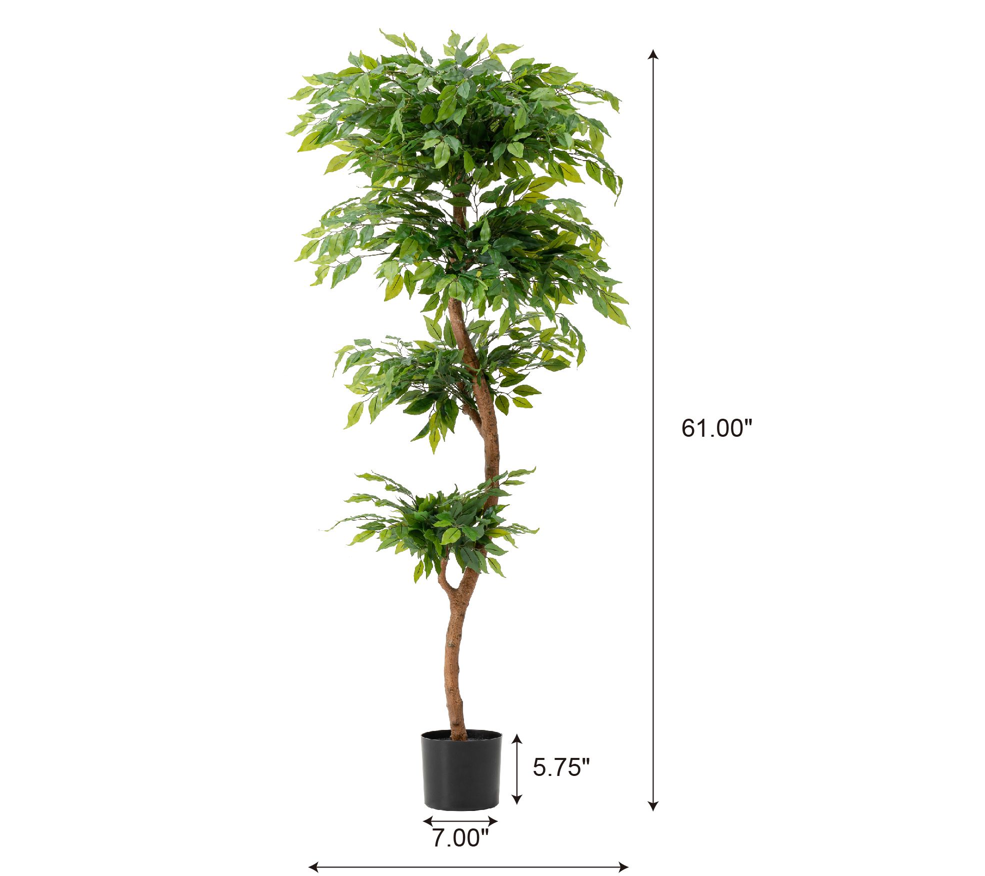 Glitzhome 5ft Creative Shaped Faux Ficus Tree In Pot